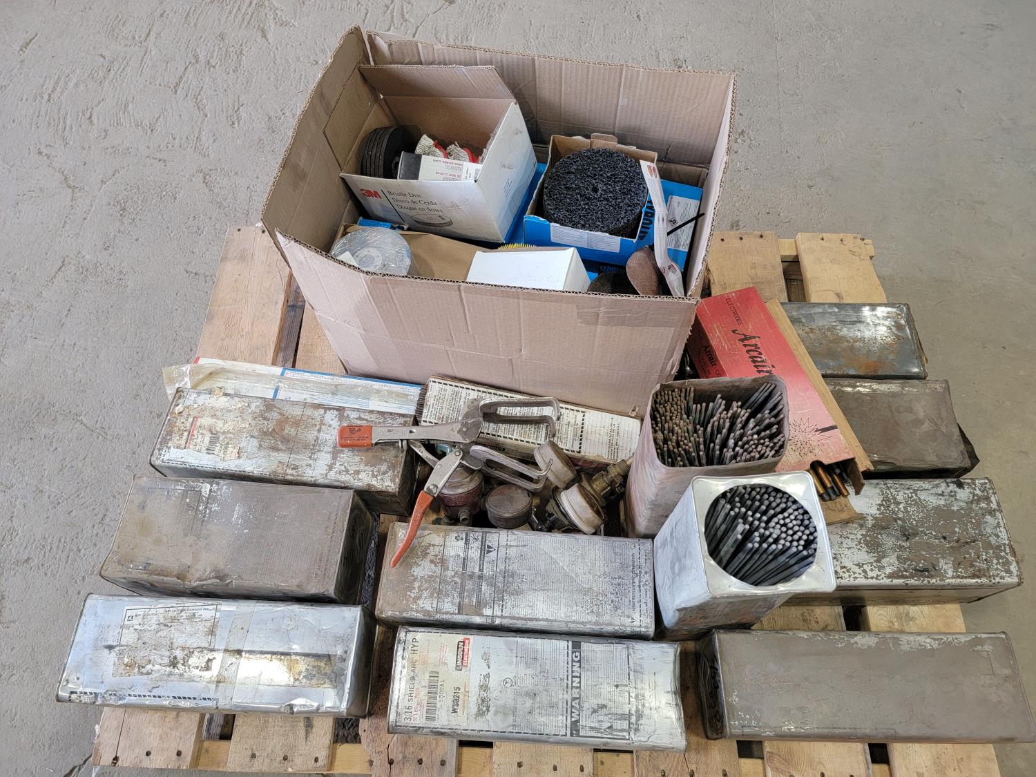 Welding rods, grinding discs, gas regulators, vise grips