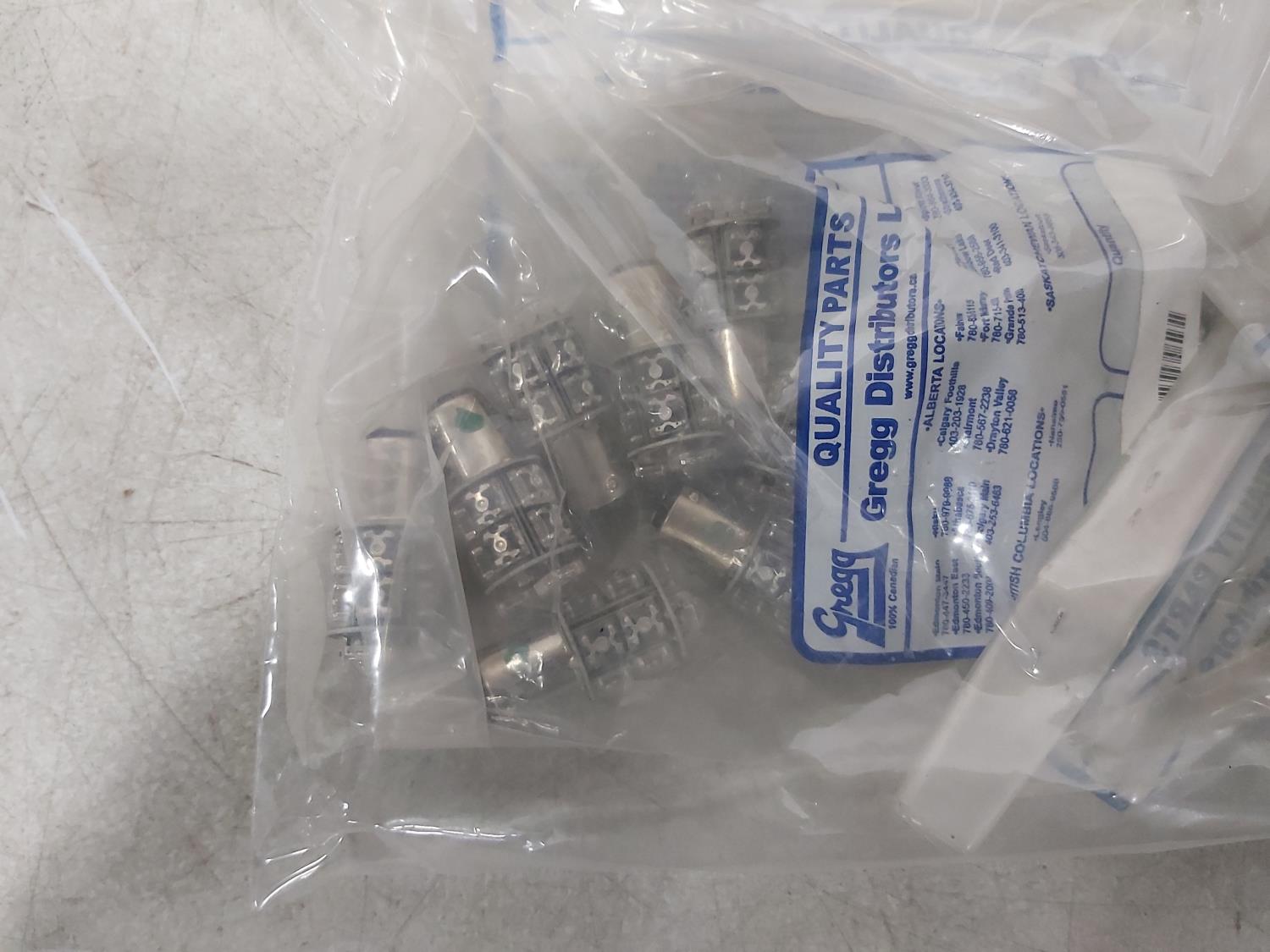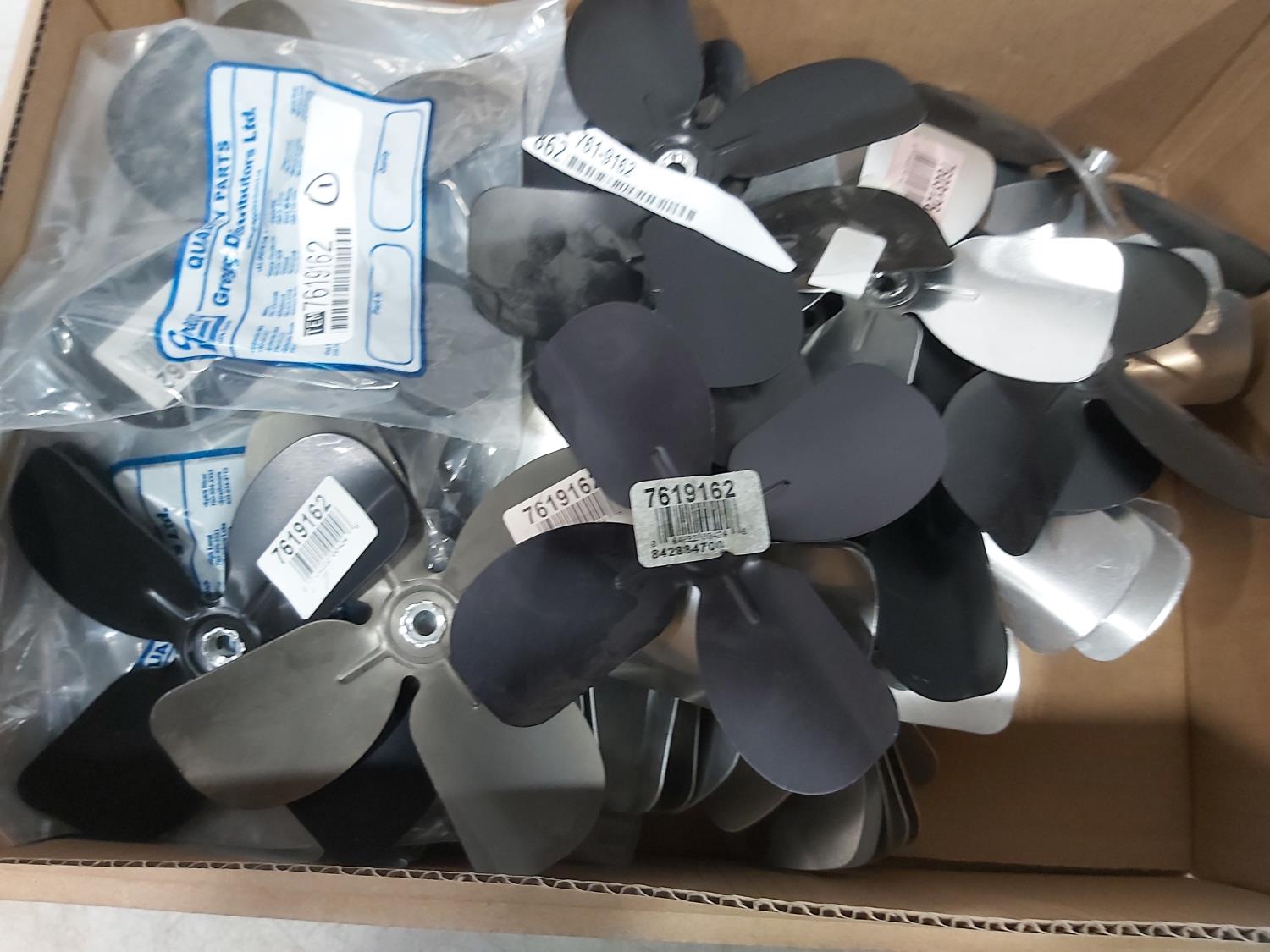 (23) boxes of Makita eye shields, qty of 6-1/2 inch diameter fan blades, qty of colored LED bulbs, aluminum lamp housing, 8 inch amber dome light covers