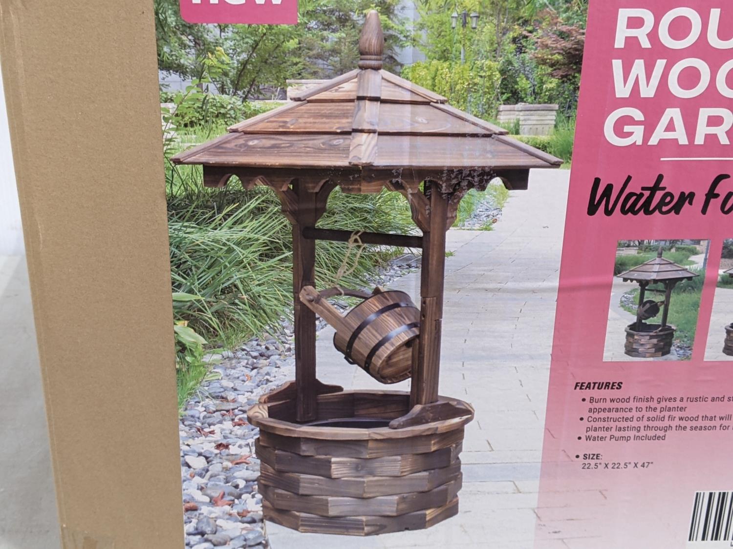 1361 Round Wooden Garden Water Fountain (Unused)