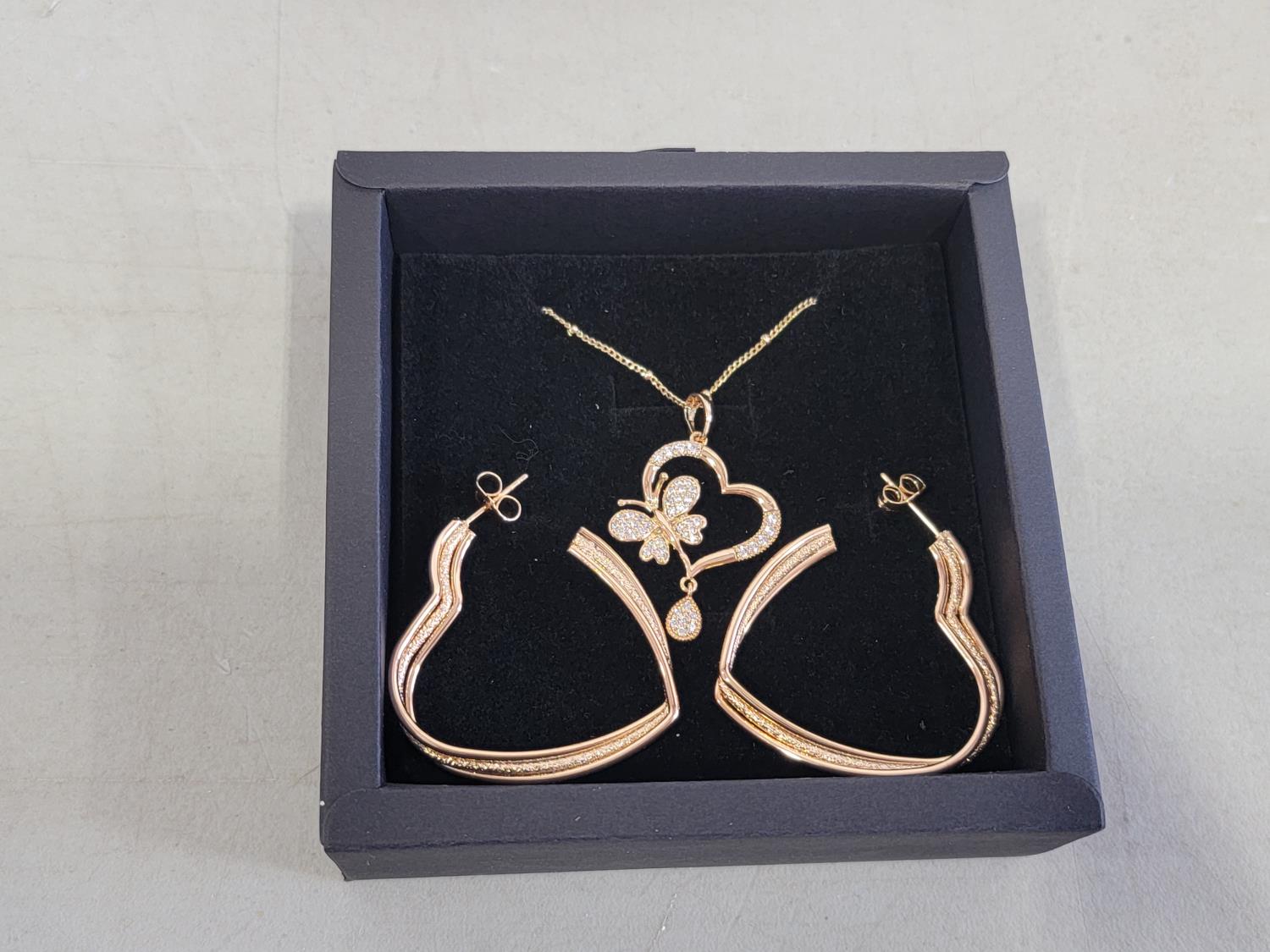 1874 Smartlife 18K Gold Plated 2 Piece Butterfly Heart Set (Unused)