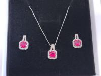 1885 Smartlife 925S Red Ruby Square Halo 2 Piece Set (Unused)