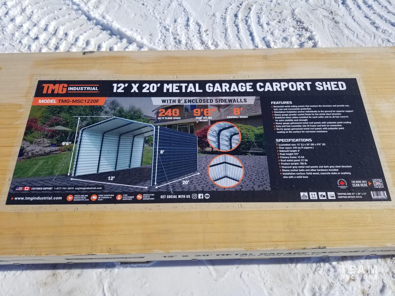 421 TMG Industrial MSC1220F 12 Ft X 20 Ft Metal Garage Carport Shed (Unused)
