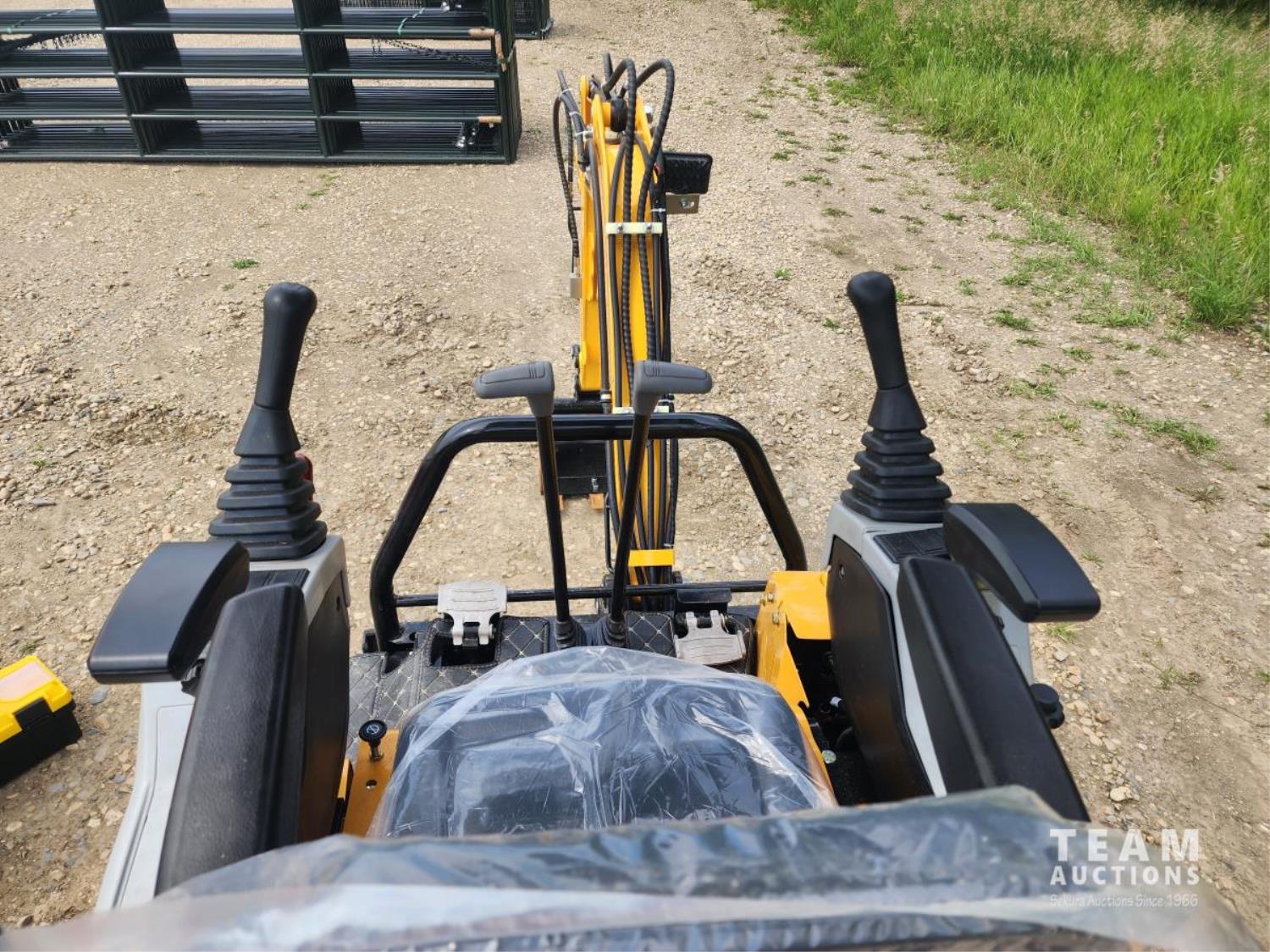 Open station, pilot controls, 420 CC gas engine, 420 cc engine, LED work lights, 14 inch Dig bucket, manual coupler, 1 auxiliary hydraulics, 2 Ft 7 inch stick, swing boom, backfill blade, thumb mount, 7 inch rubber tracks