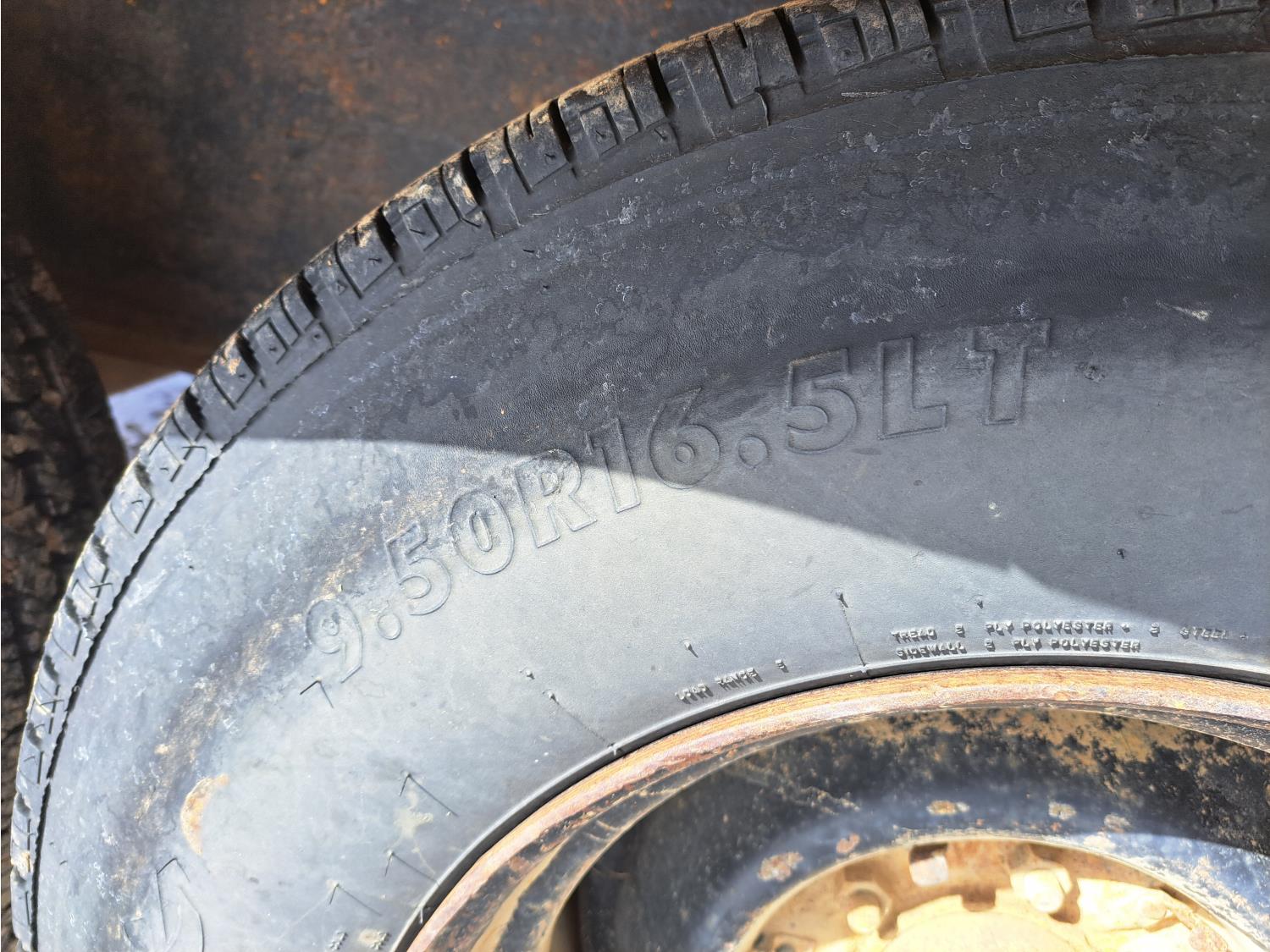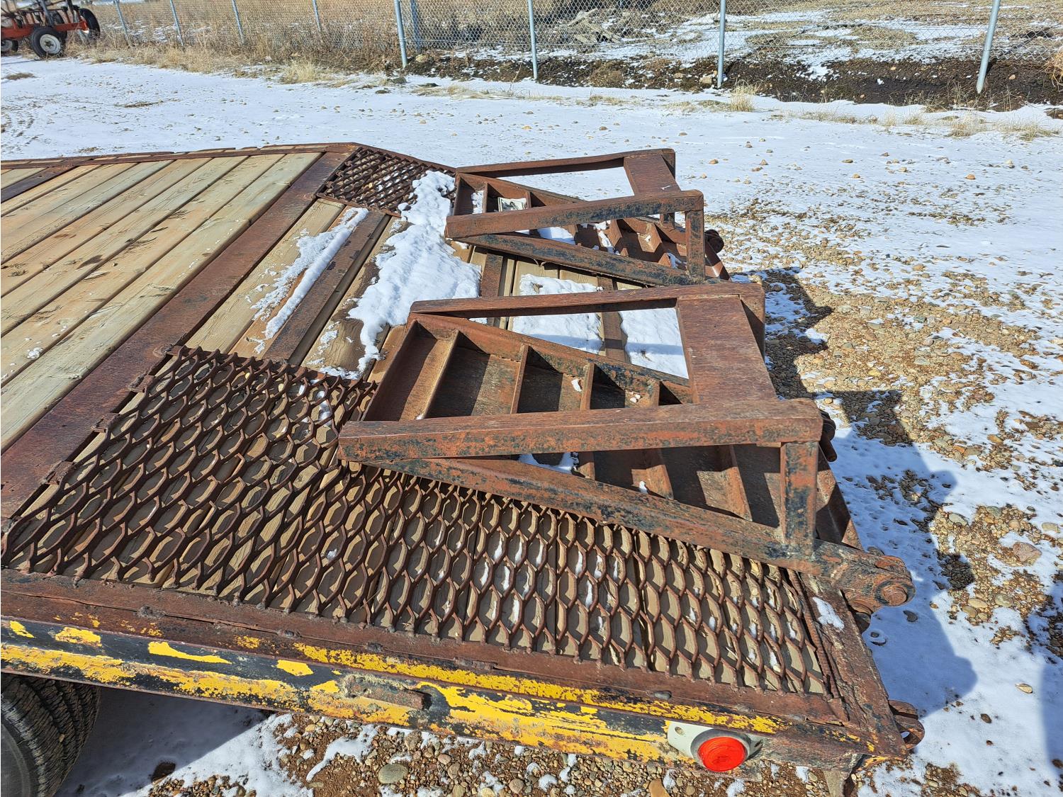 102 inch wide deck, 48 inch beaver tails, wood deck, flip over ramps, spring suspension, rub rails, stake pockets, 5000 lb axles, 9.50R16.5LT tires