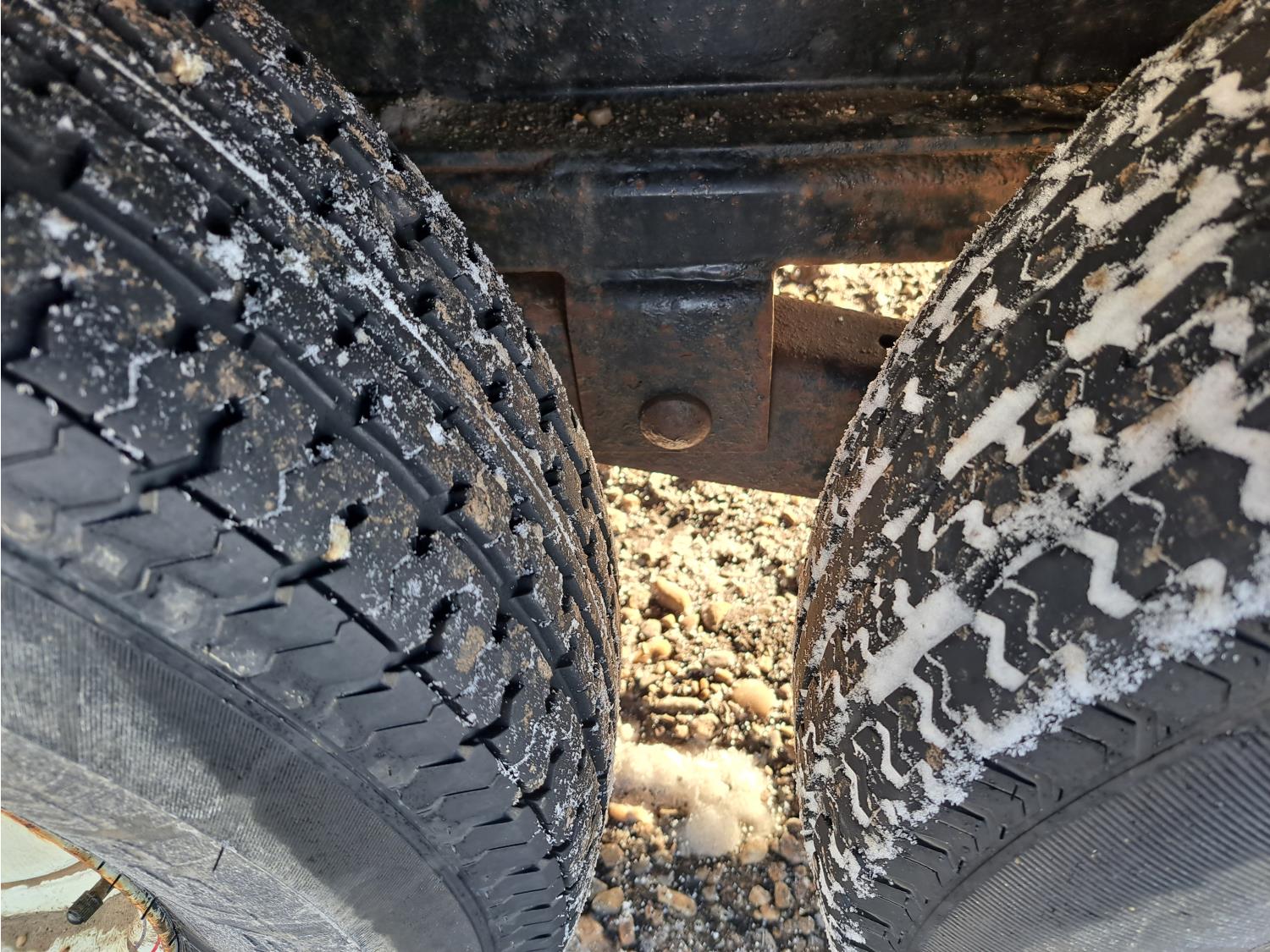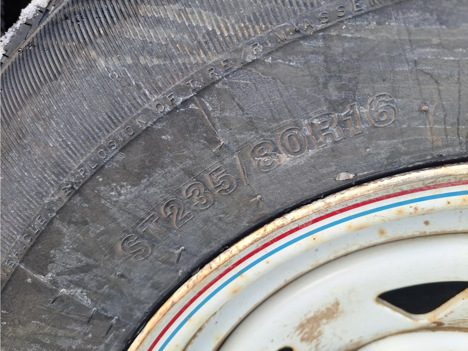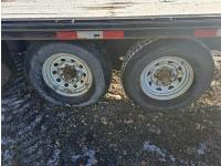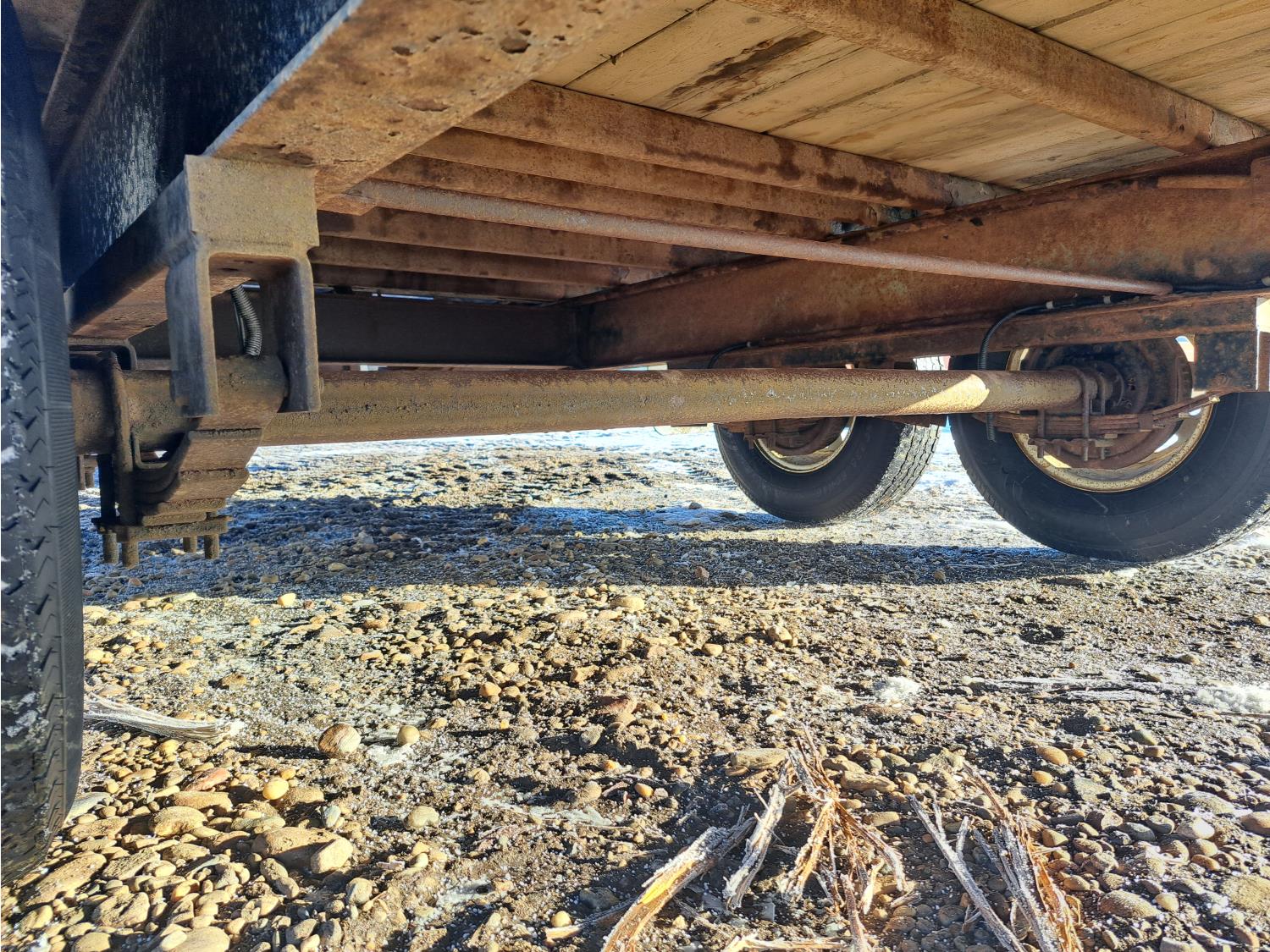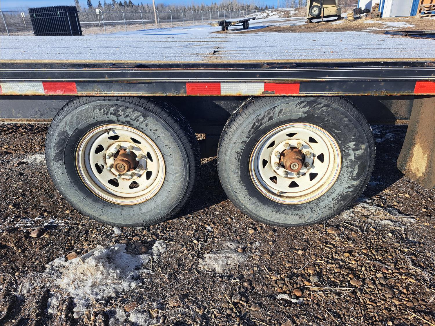 100 inch wide deck, wood deck, stake pockets, 20 ft deck, 5 ft beaver tails, spring suspension, 235/80R16 tires