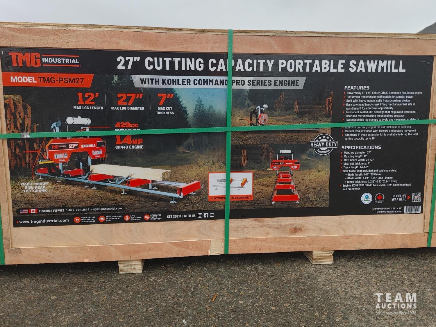 348 TMG Industrial PSM27 27 Inch Portable Sawmill (Unused)