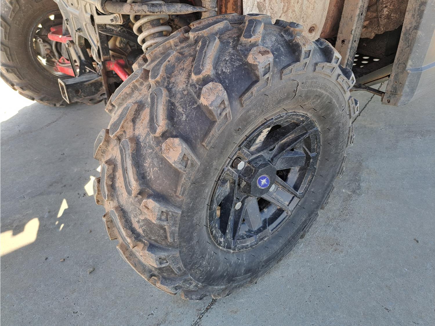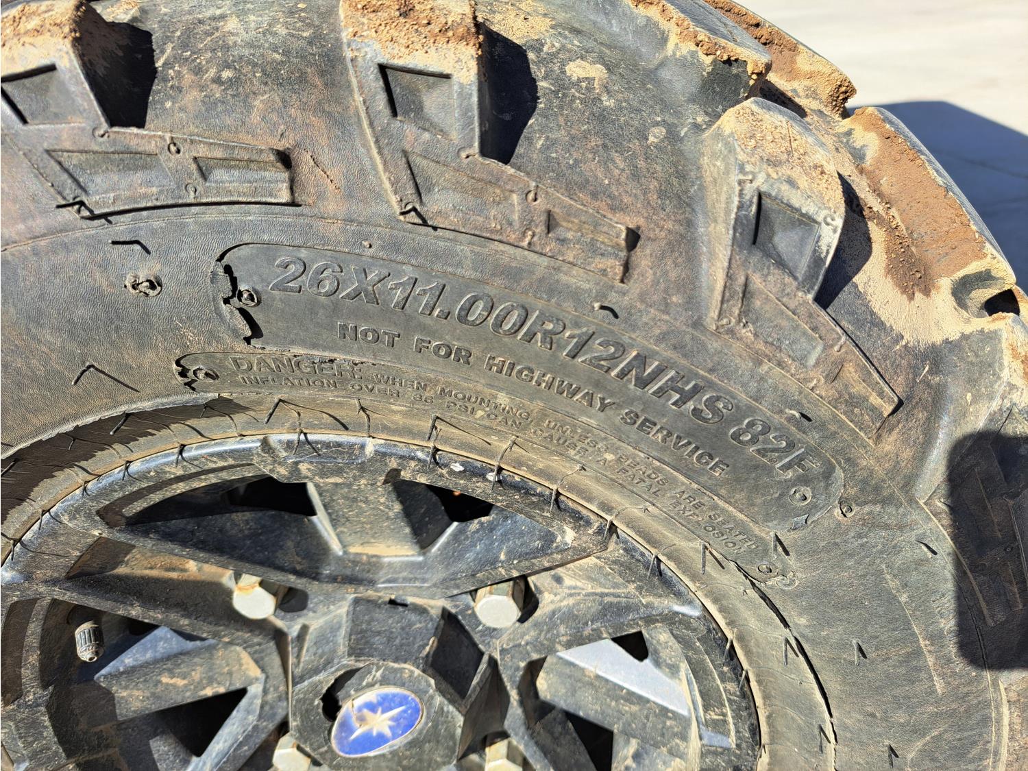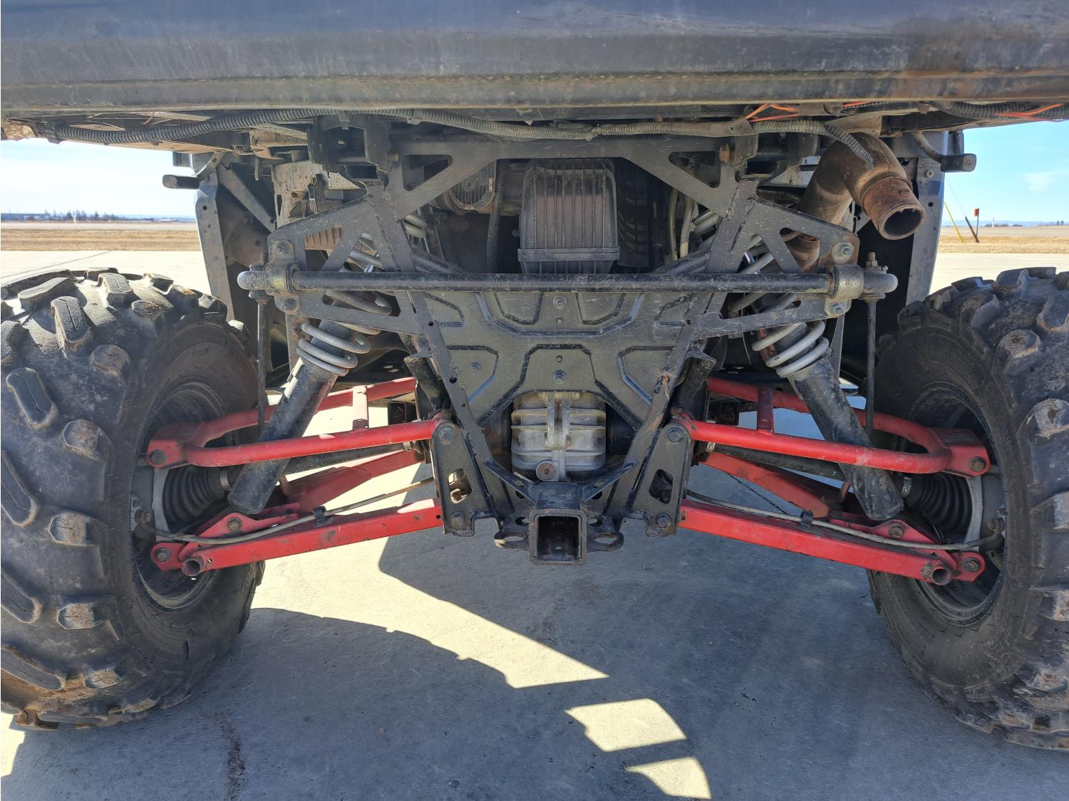900 cc engine, automatic transmission, enclosed cab, A/C, heater, windshield, power steering, front winch, manual dump box, receiver hitch, independent suspension, 26X9.00R12 front tires, 26X11.00R12 rear tires