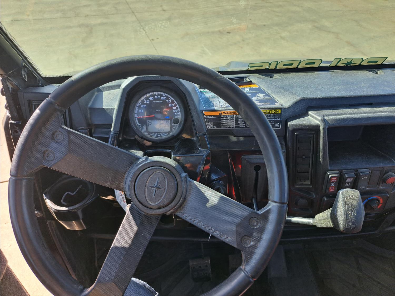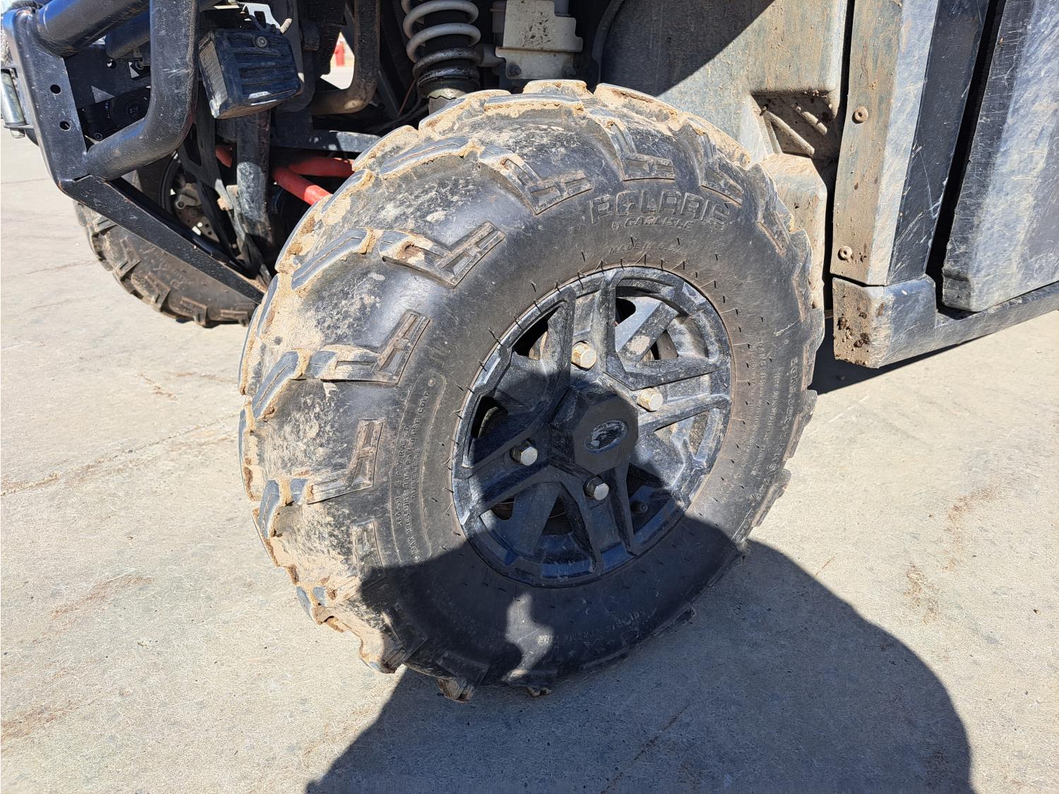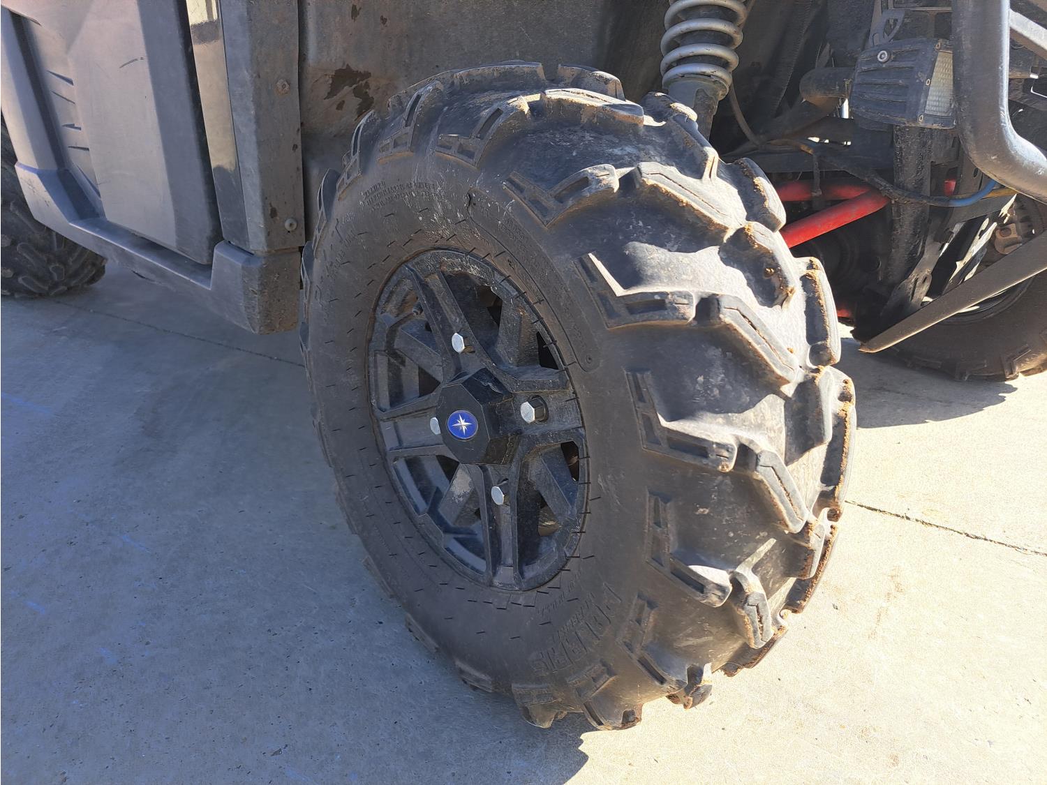 900 cc engine, automatic transmission, enclosed cab, A/C, heater, windshield, power steering, front winch, manual dump box, receiver hitch, independent suspension, 26X9.00R12 front tires, 26X11.00R12 rear tires