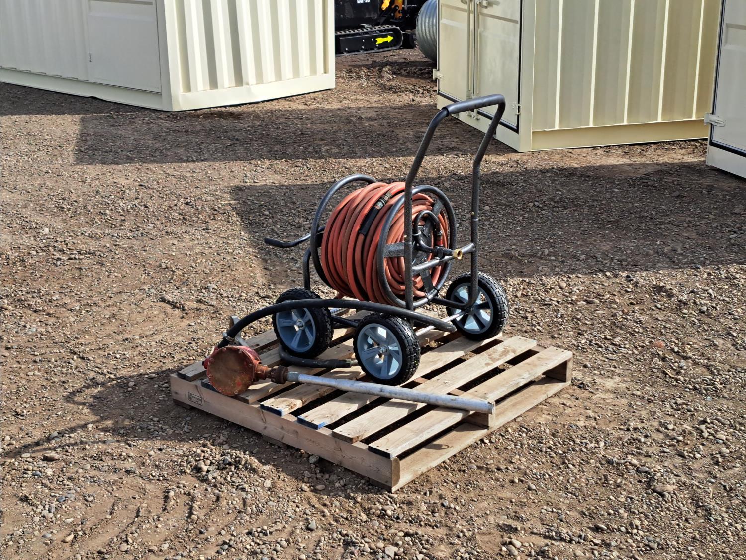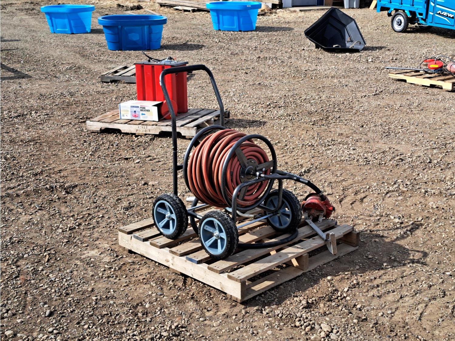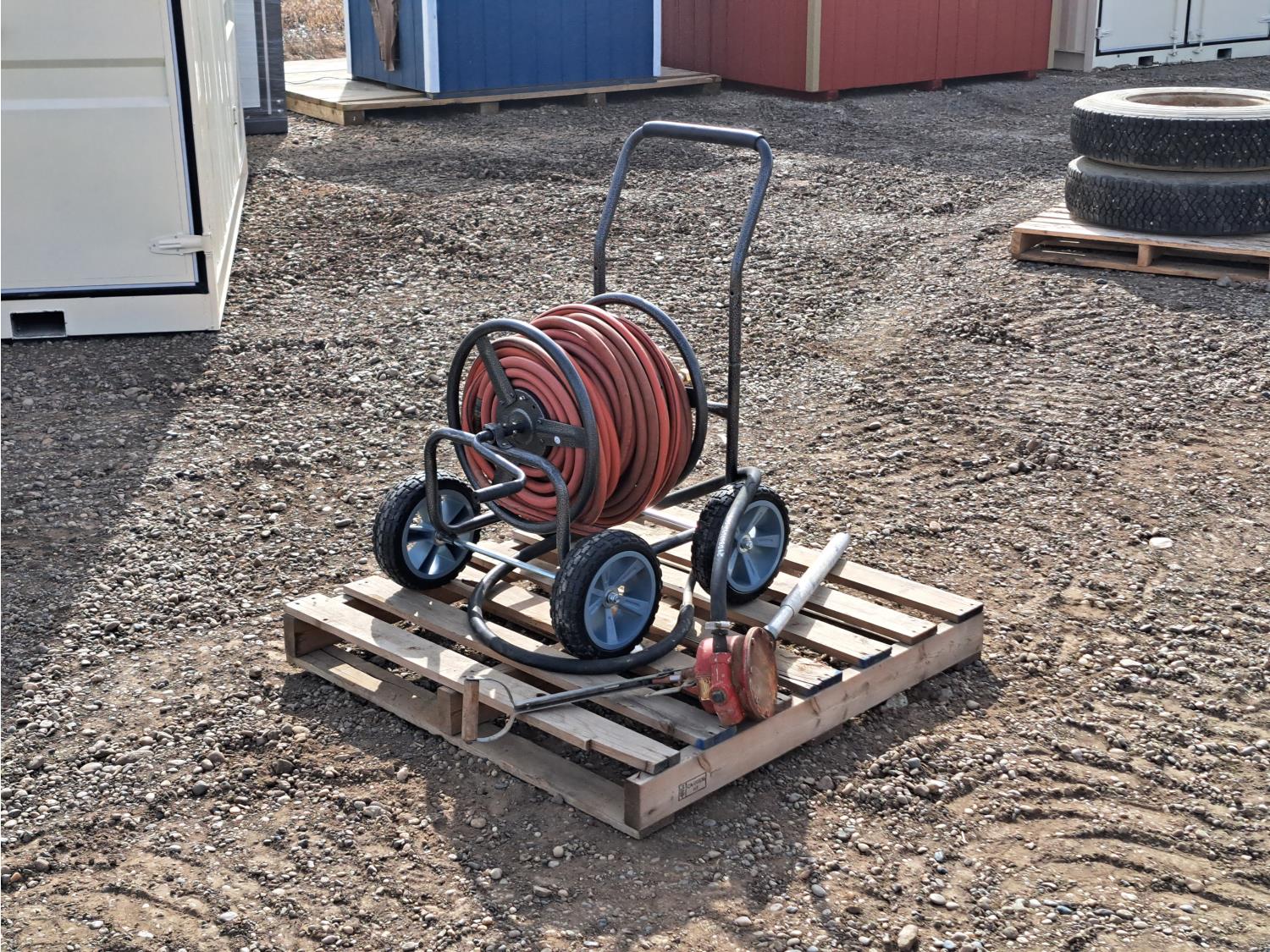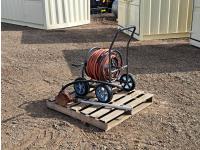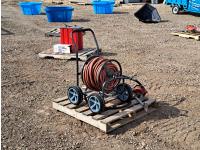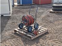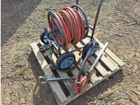 676 High Capacity Hand Fuel Pump and Garden Hose Caddy with Approximately 100 Ft of Hose