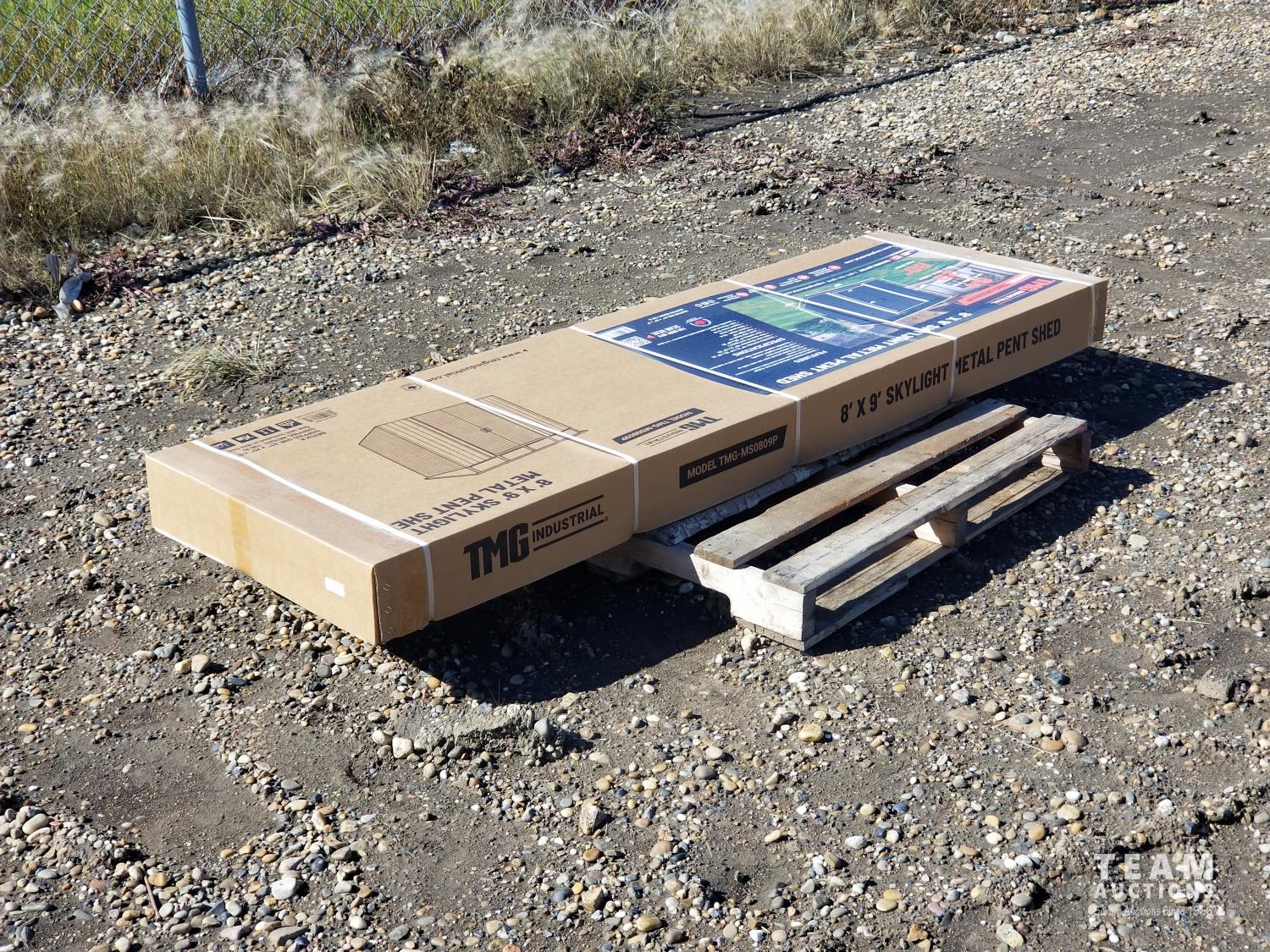 425 TMG Industrial MS0809P 8 Ft X 9 Ft Galvanized Metal Pent Shed (Unused)