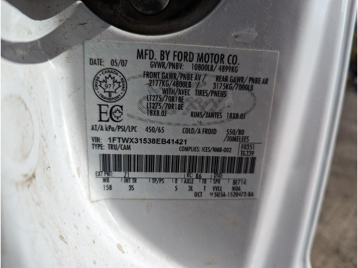- 1FTWX31538EB41421