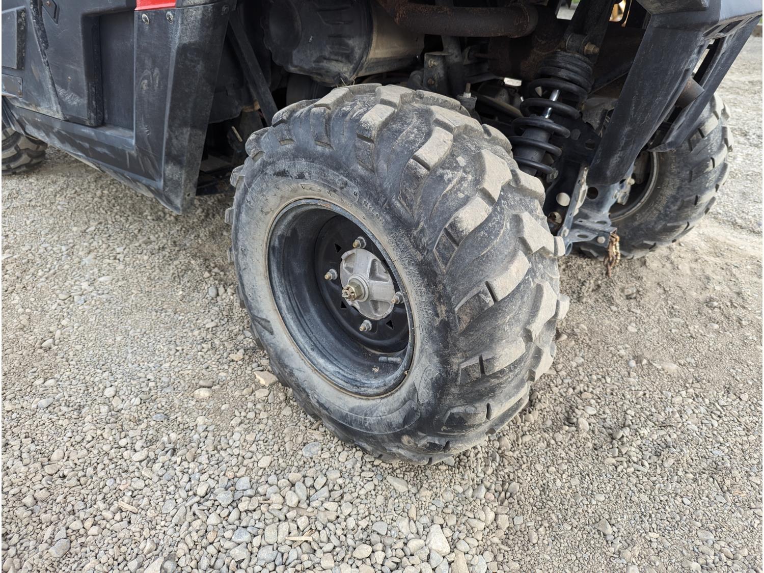 800 cc fuel injected water cooled engine, CVT transmission, Hi/Lo range, reverse, open canopy, windshield, front winch, independent suspension, 25X8.00-12NHS front tires, 25X10.00-12NHS rear tires