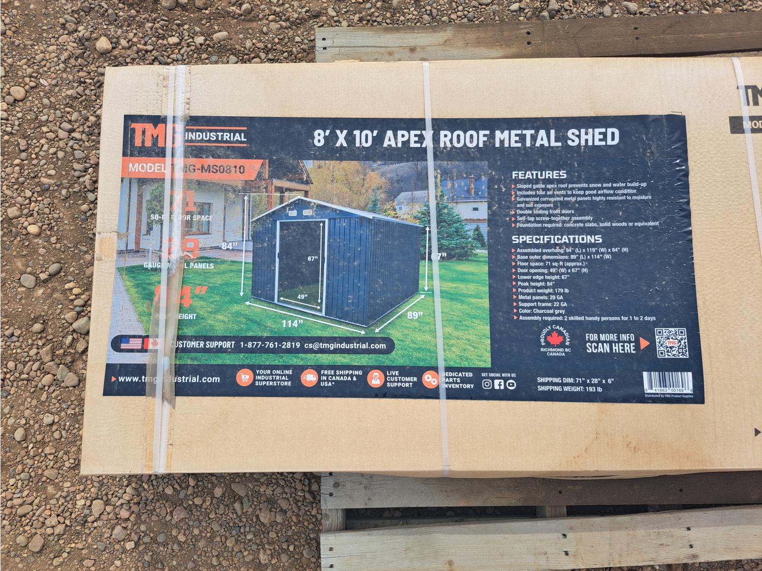 164 TMG Industrial TMG-MS0810 8 X 10 Ft Metal Shed (Unused)