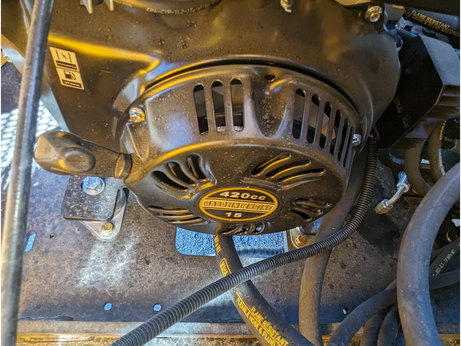 Open station, 13.5hp gas engine, 16 inch bucket, manual thumb, backfill blade, rubber tracks