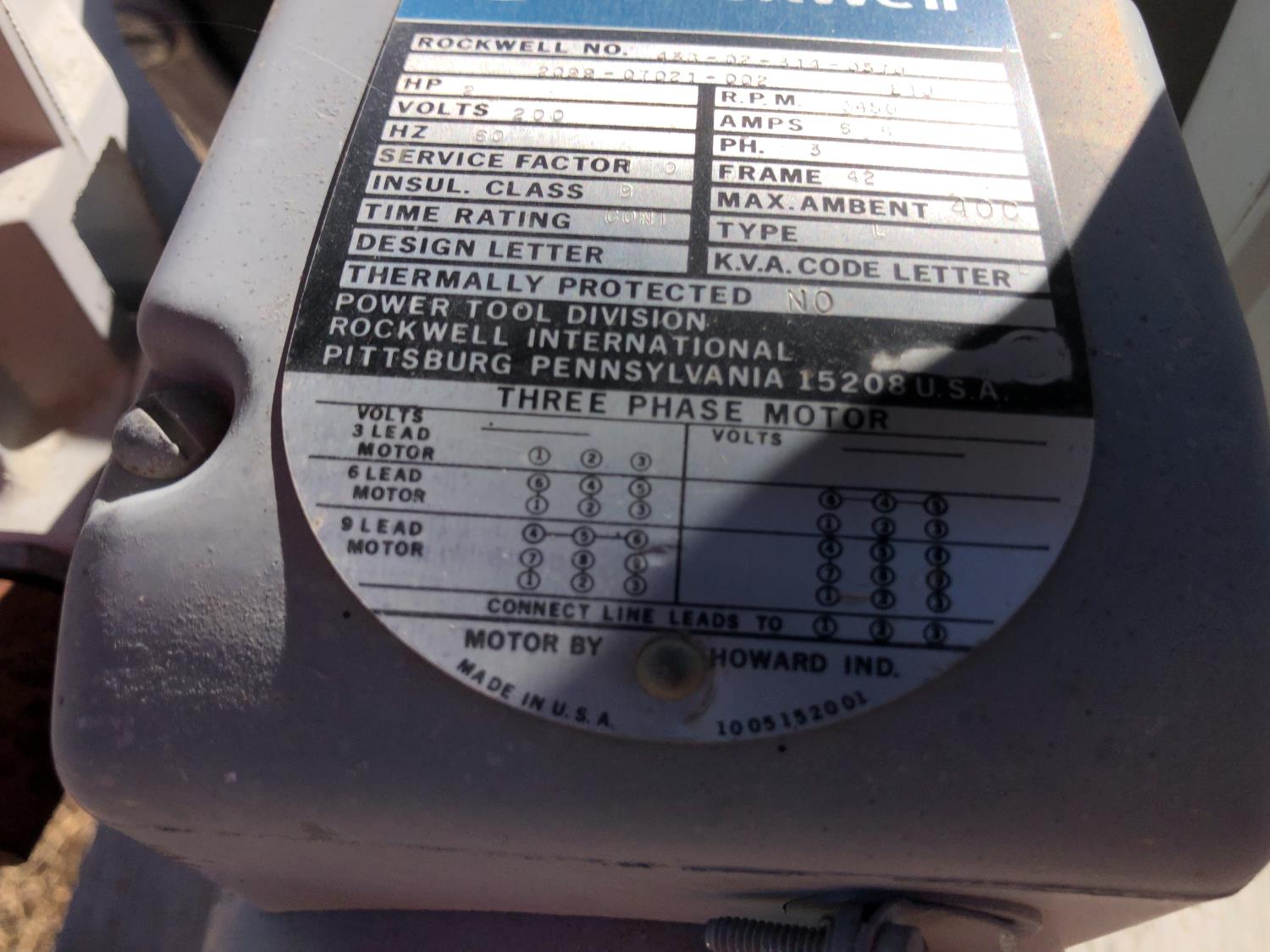 2 HP, 200v, 60 hz. 3450rmp, 3 phase