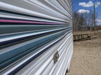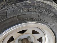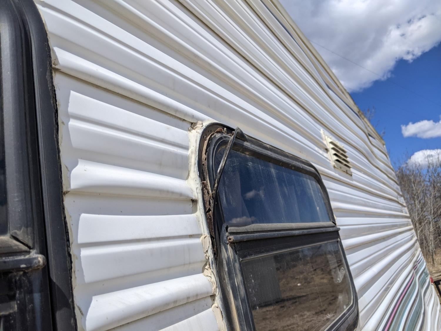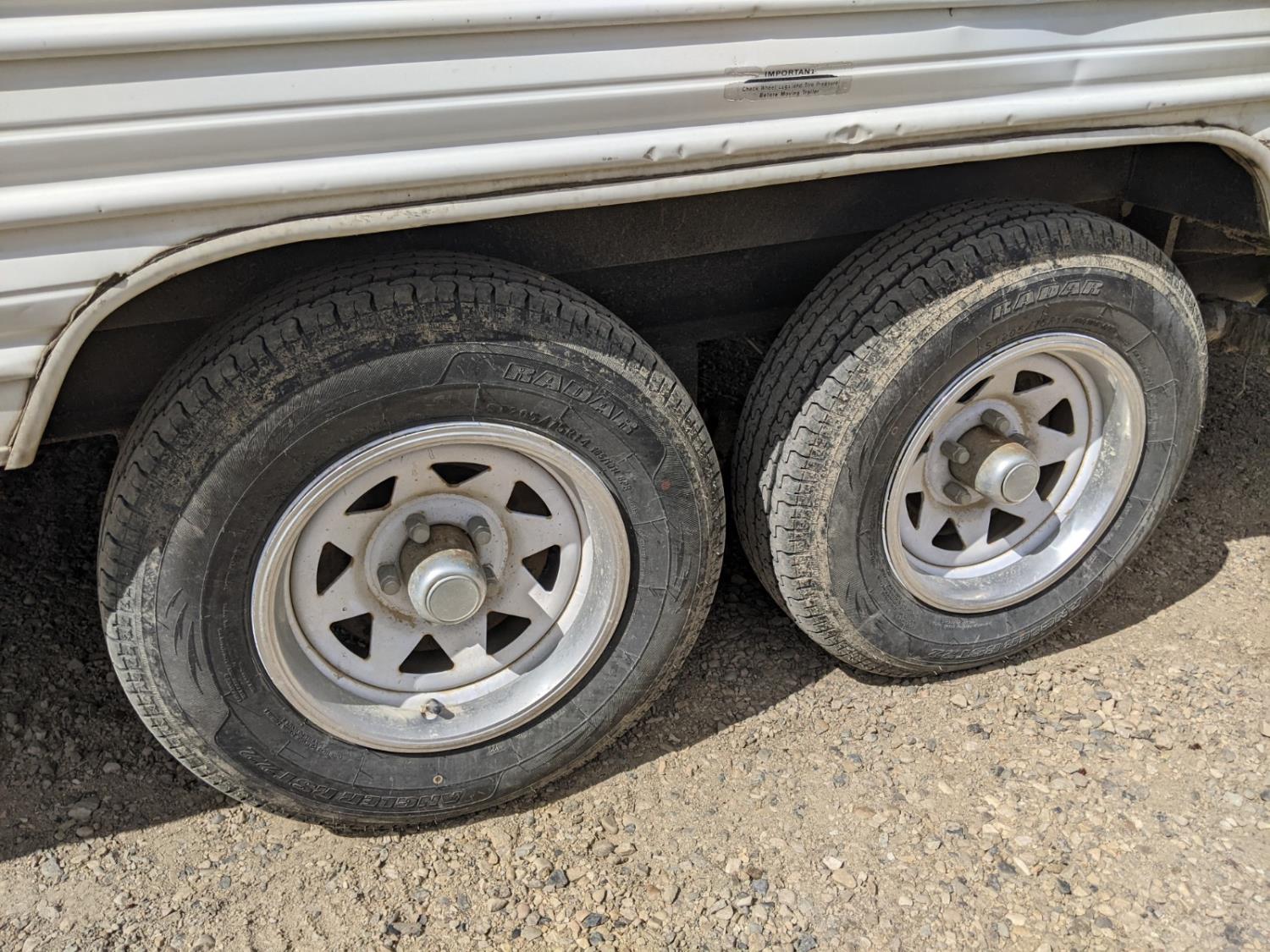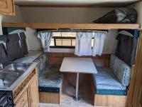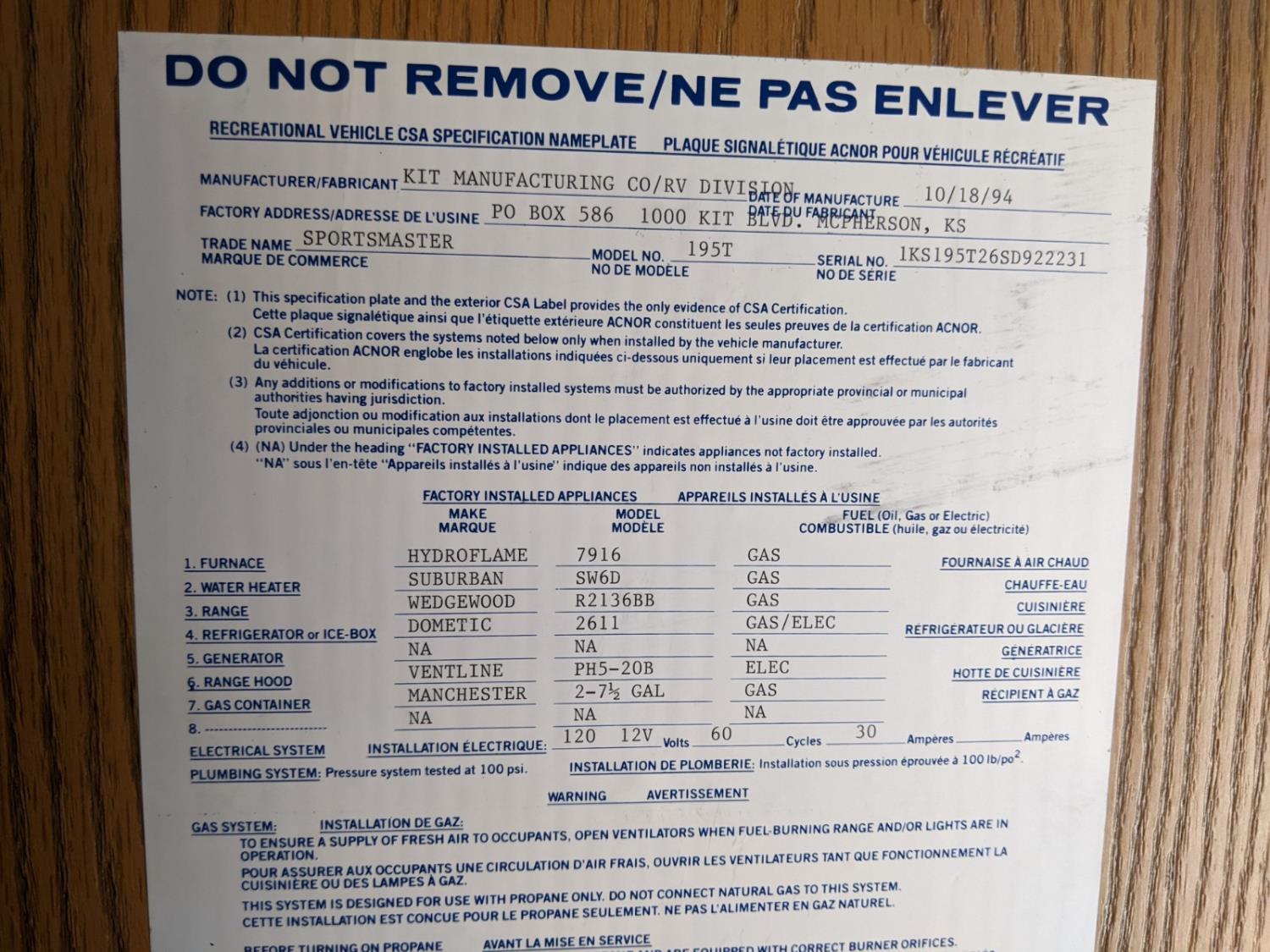 Sleeps 4, stove, fridge, microwave, full bath, master bedroom, manual awning, spring suspension, AC not working, 205/75R14 tires