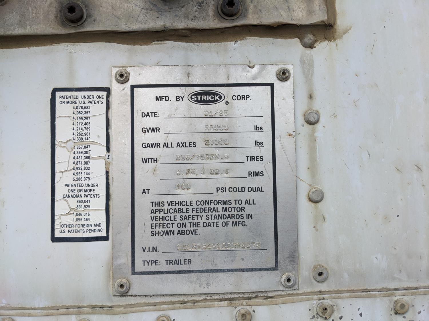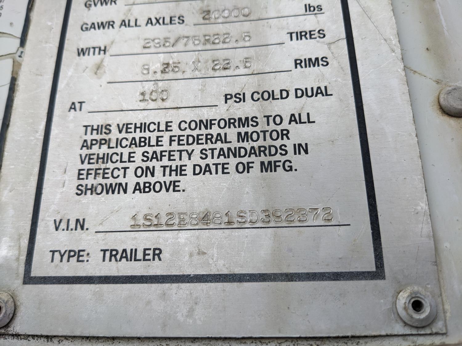8 ft 6 inch van width, 162 inch height, side door, rear swing doors, air brakes, spring suspension, 20,000 lb axles, 295/75R22.5 tires