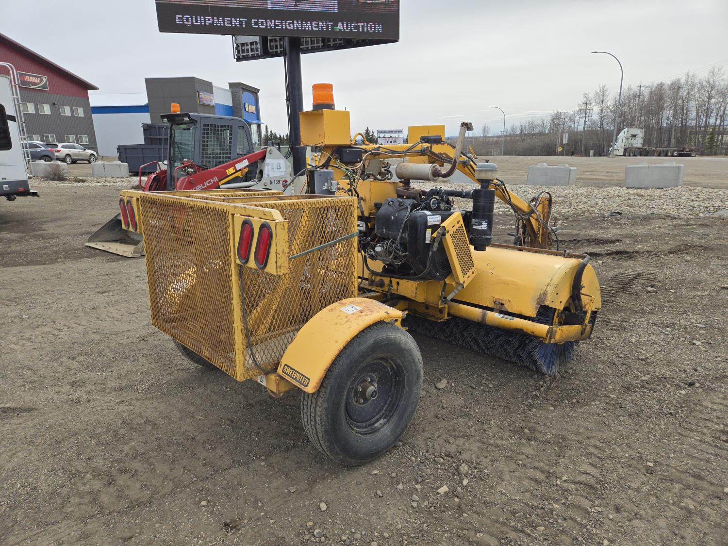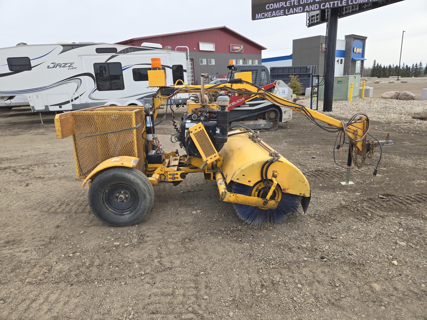 Wisconsin VH4D air cooled 4 cylinder gas engine, 30 inch diameter sweeper, 5 bolt axle, 7.00-15 tires