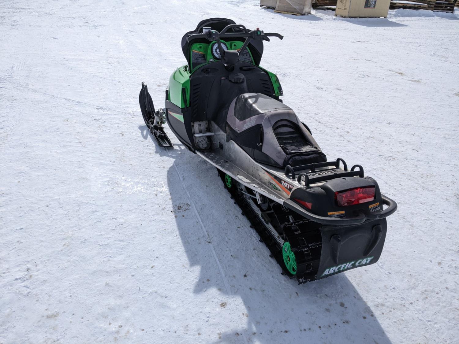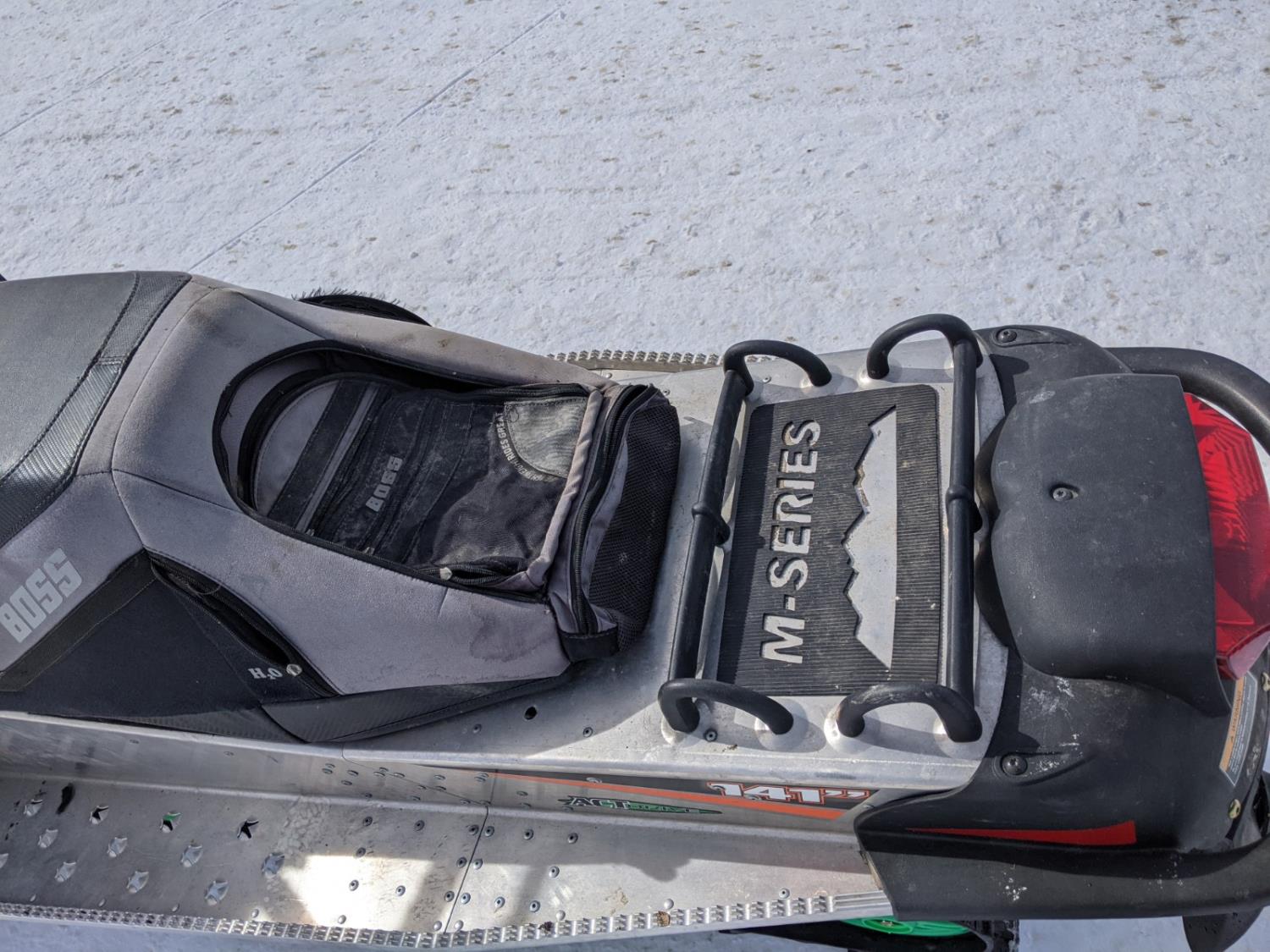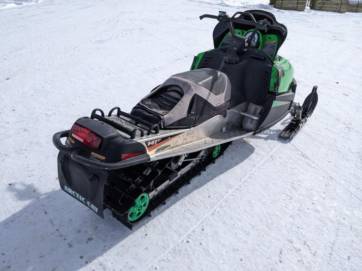 141 inch track, 698 cc, hand warmers, no reverse, comes with extended seat