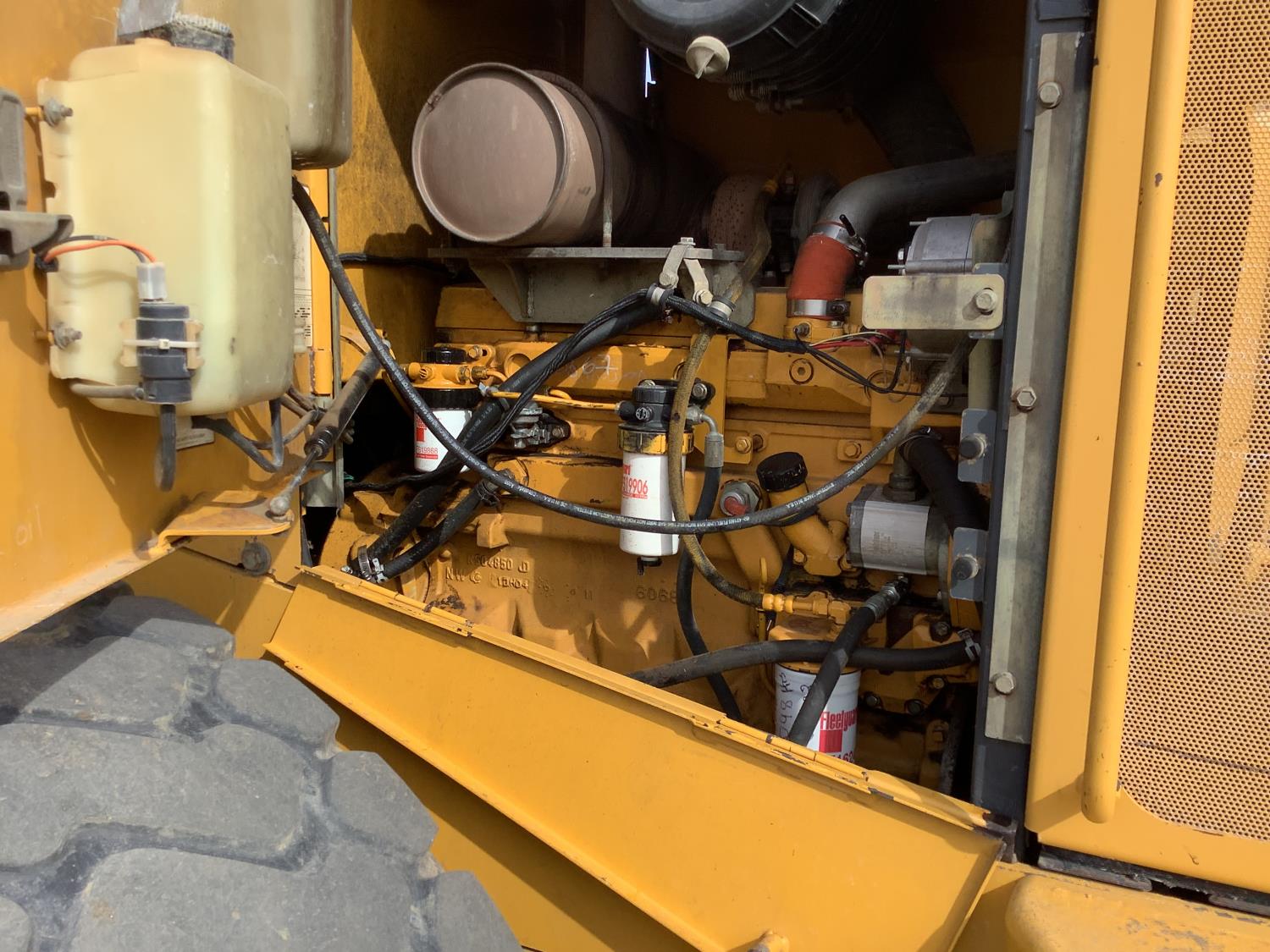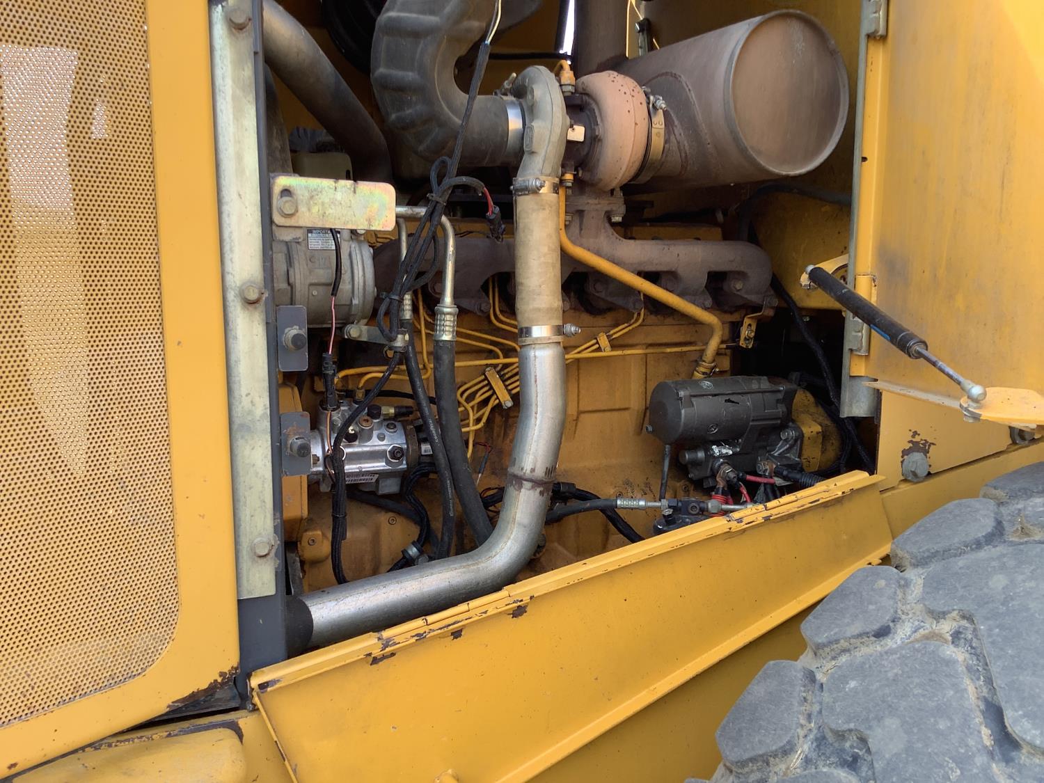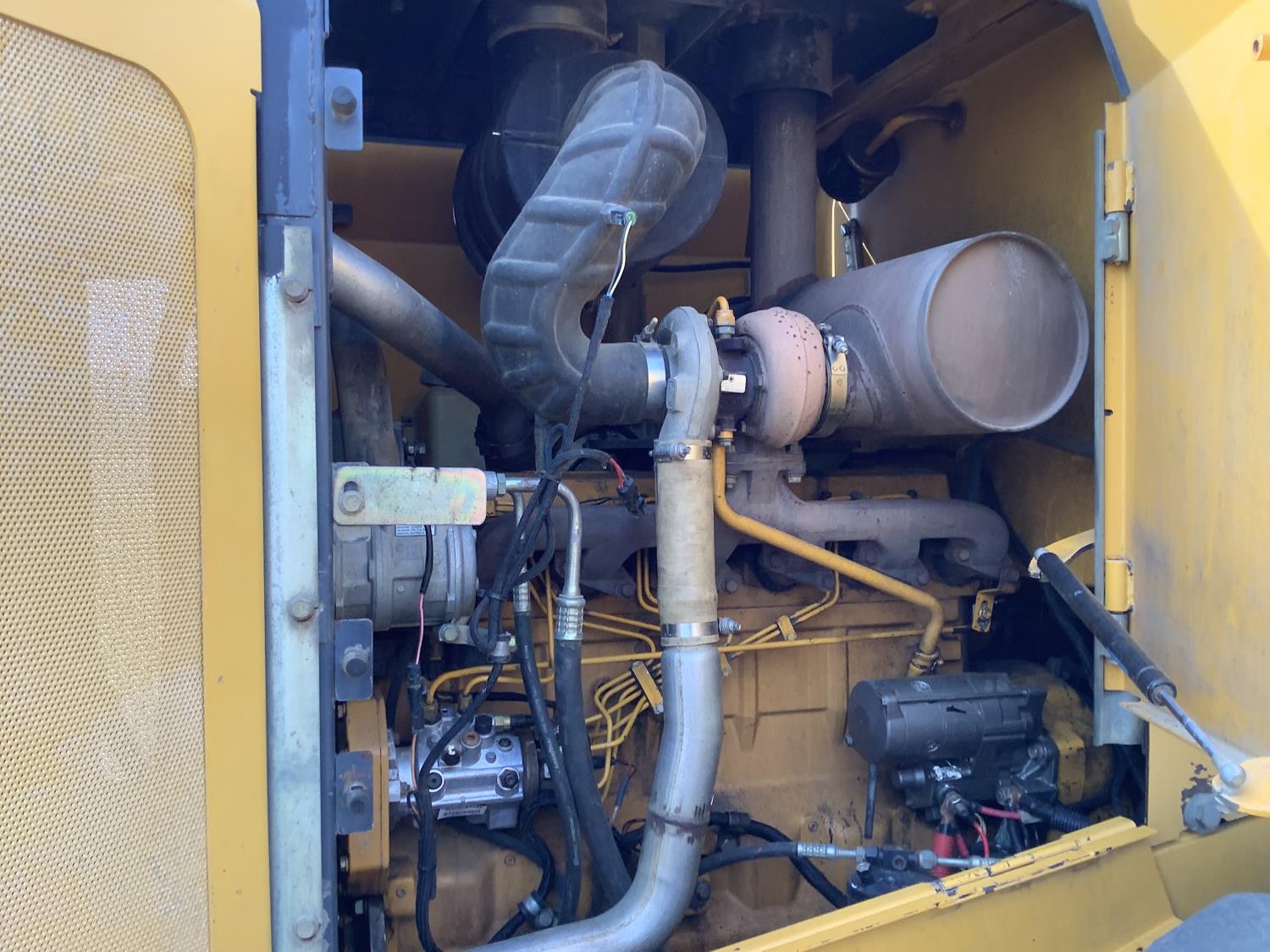 Note the cab door is getting a new window and will be back on the machine. This loader is a good running unit, diesel pump replaced, few years ago most pins were replaced as seen in pictures. They up graded to a newer unit. Watch the 3 videos and see how nice it operates. Pallet forks will sell the same time as the loader in a separate lot number.