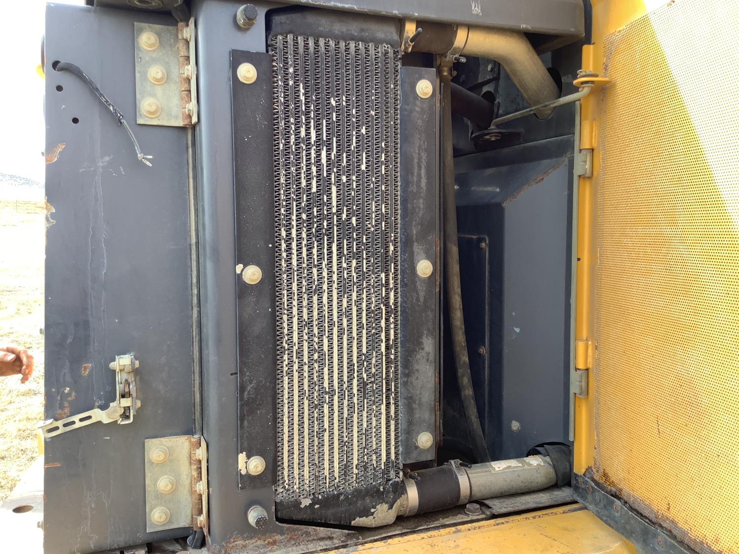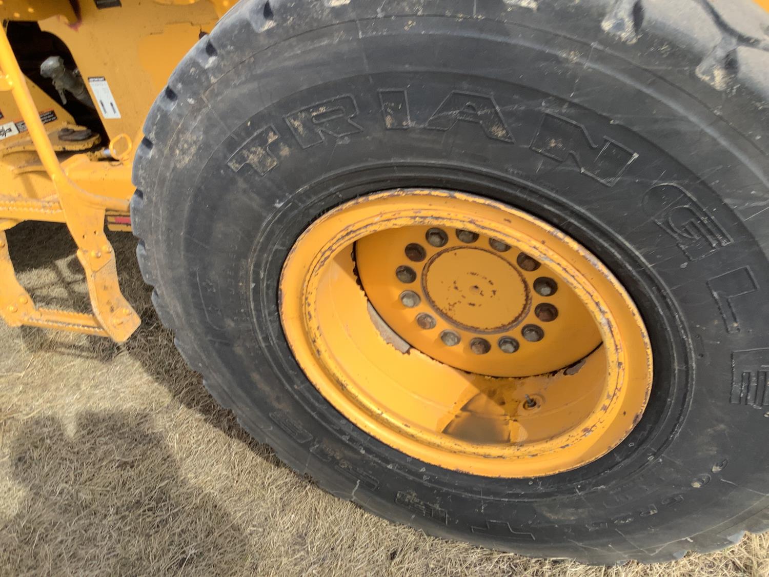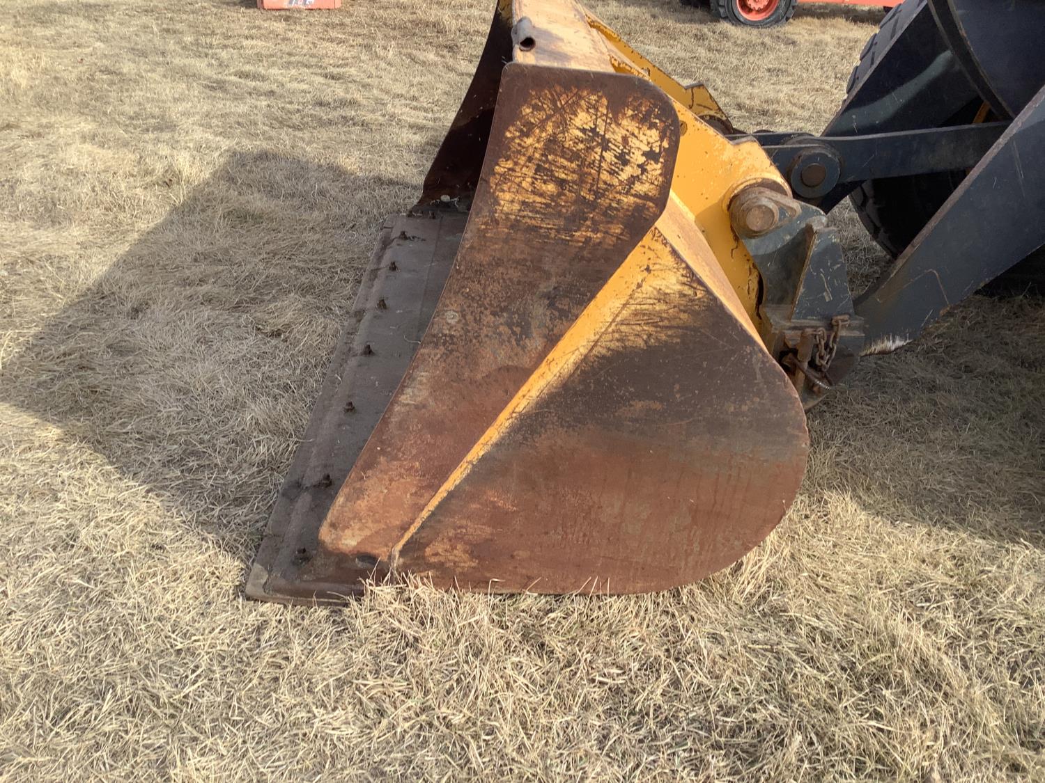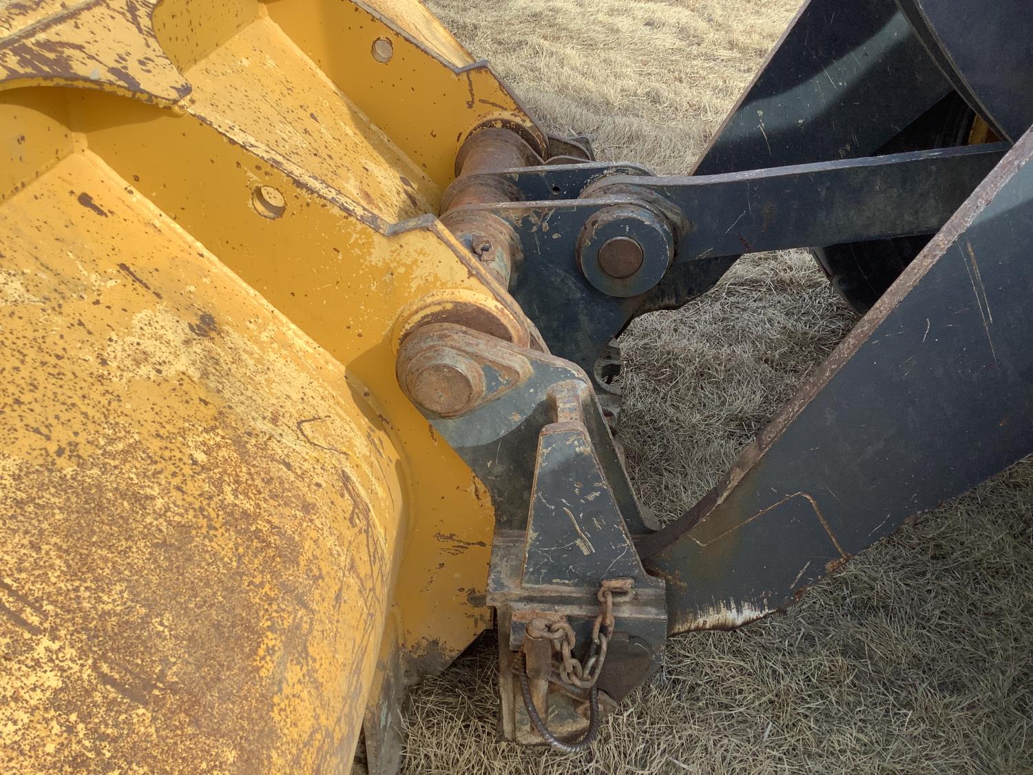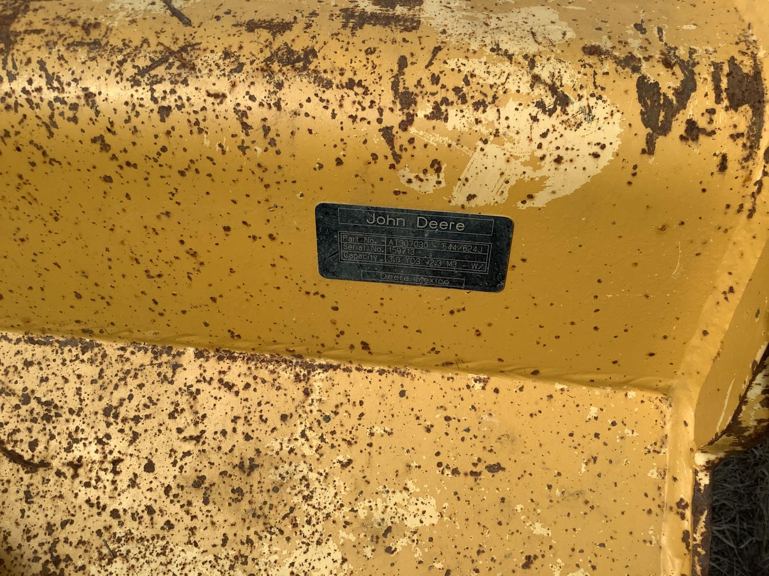 Enclosed cab, A/C, smooth bucket, manual coupler, 1 auxiliary hydraulics, John Deere 3 yard bucket, 20.5-25 tires