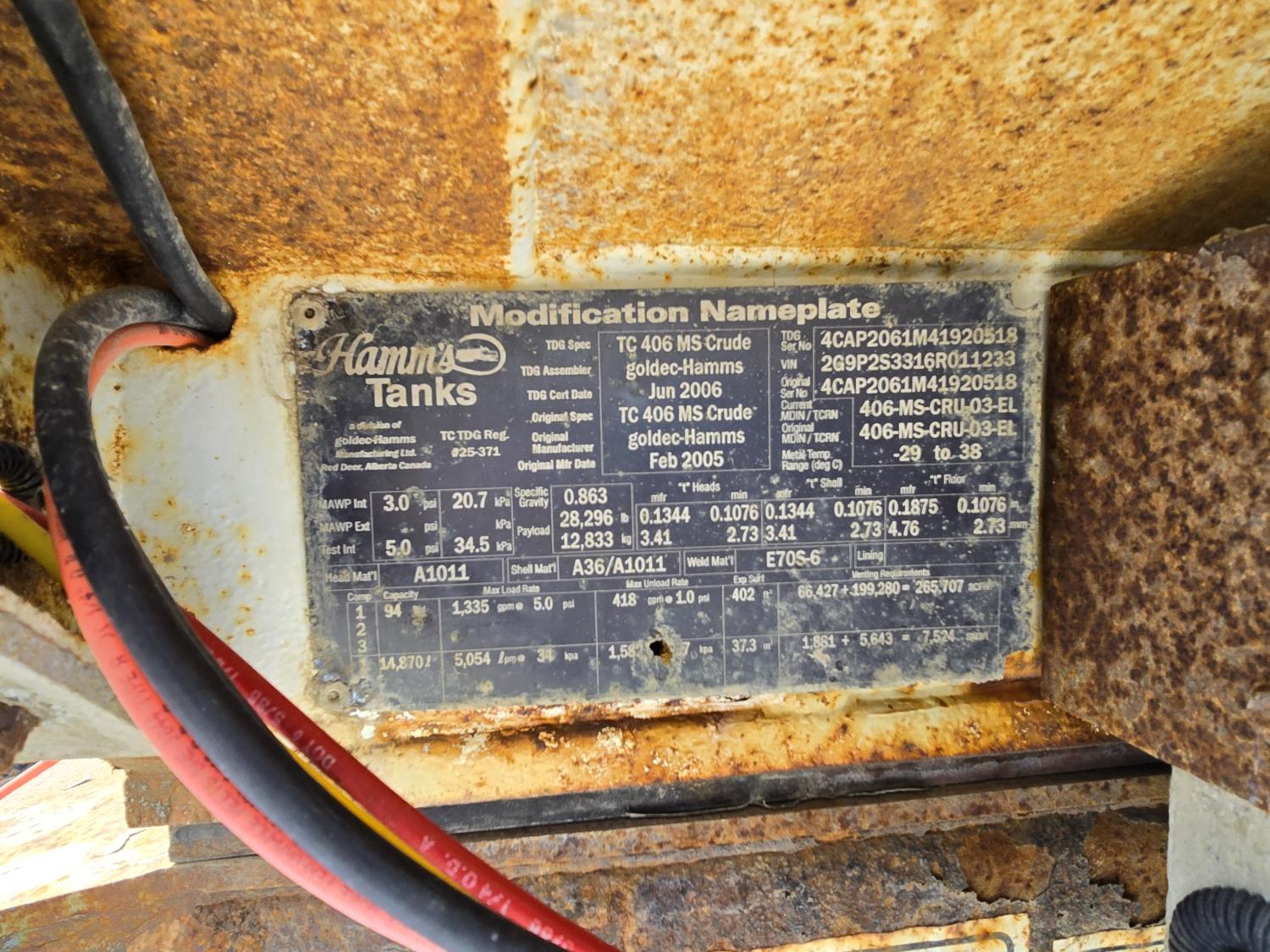 air ride suspension, 11R24.5 tires on aluminum rims, TL-406 ms crude oil code