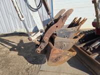 Open station, 3 cylinder Yanmar diesel engine, 30 inch cleanup bucket, manual coupler, hydraulic thumb, 1 auxiliary hydraulics, 57 inch stick, swing boom, backfill blade, 1) 12" dig bucket, (1) 18" dig bucket, adaptor for hydraulic auger hook up, 12 inch rubber tracks