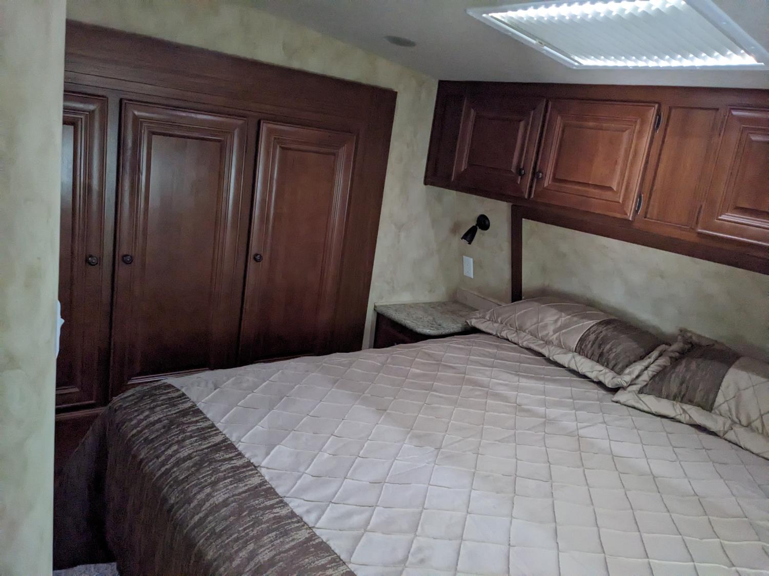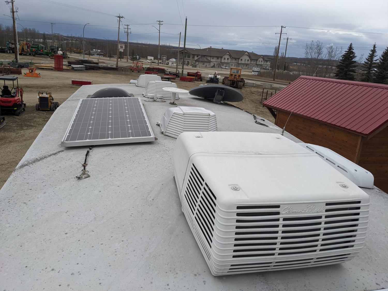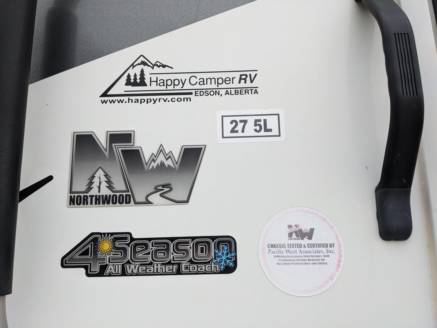 Sleeps 4, stove, fridge, microwave, full bath, master bedroom, A/C, outdoor shower, 2 slides, power awning, power levelling jacks, spring suspension, electric brakes, roof mounted satellite dish, solar panels, 235/80R16 tires