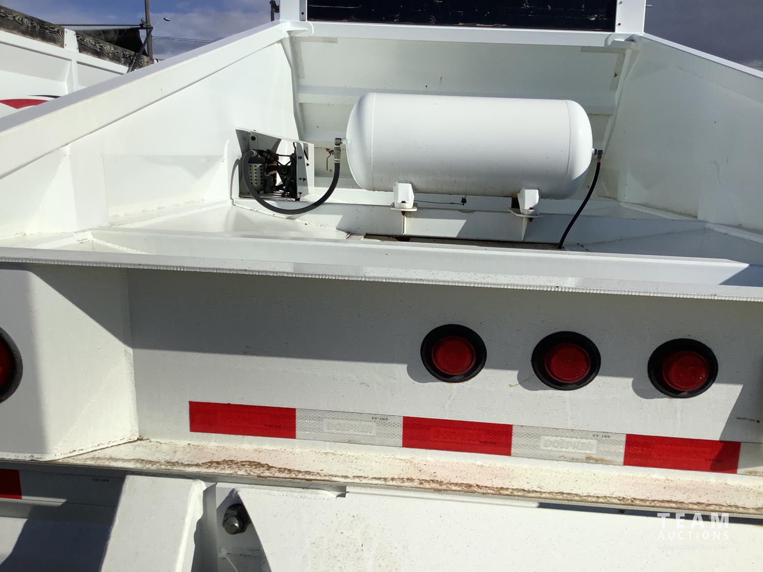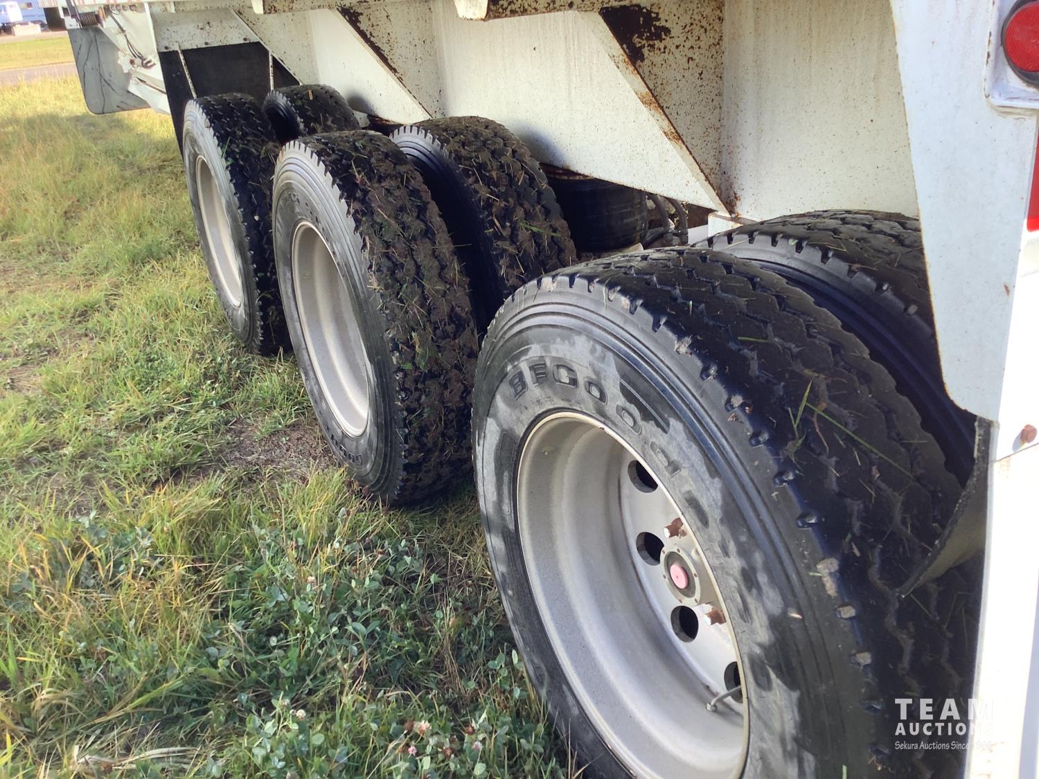 8 ft 6 inch box width, 52 inch side wall height, Electric roll tarp, push block, air ride suspension, cab remote for tarp, close under load, Tri-drive neck, all aluminum wheels, 11R24.5 tires
