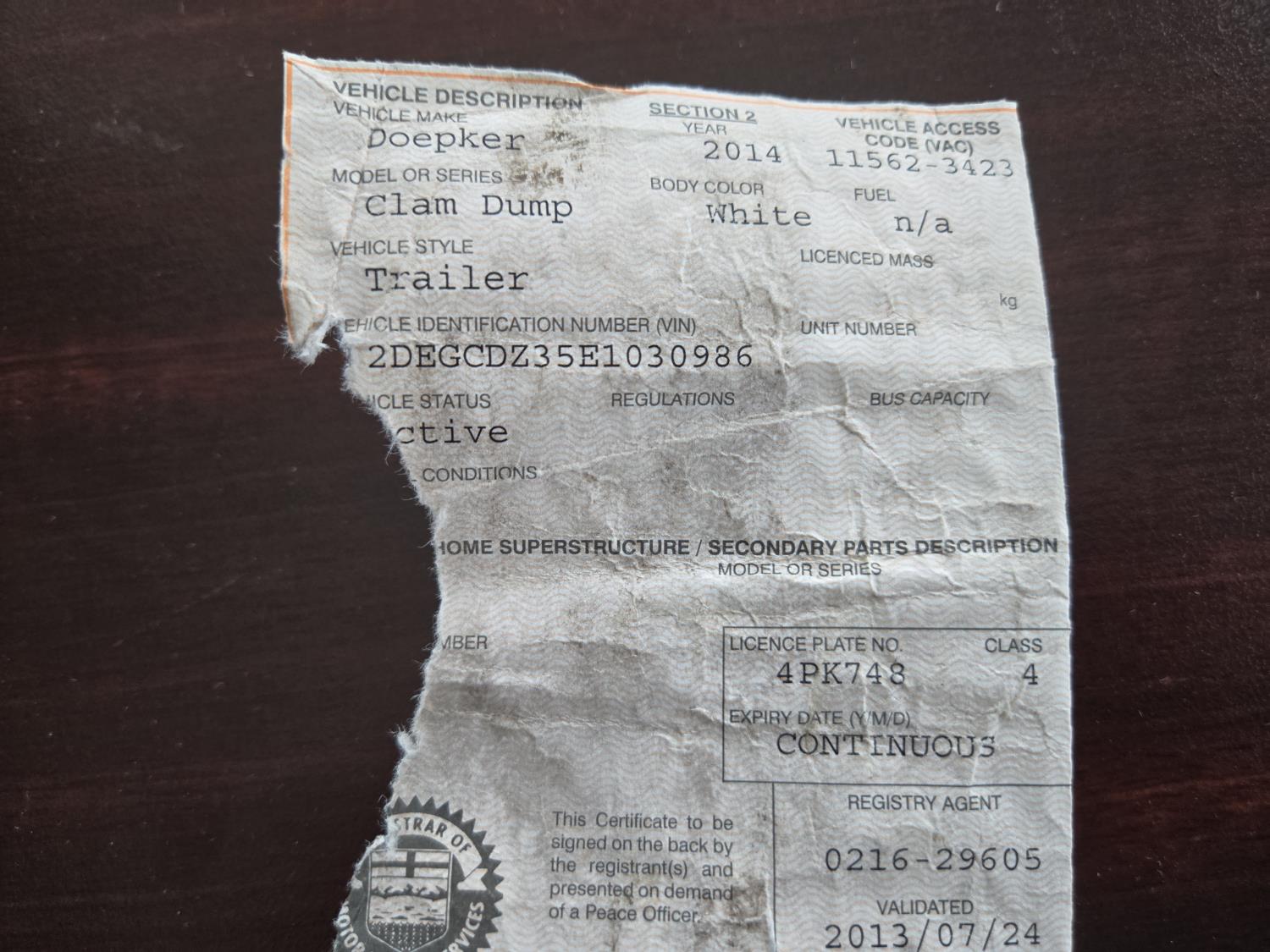 Copy of registration on hand. - Location:
