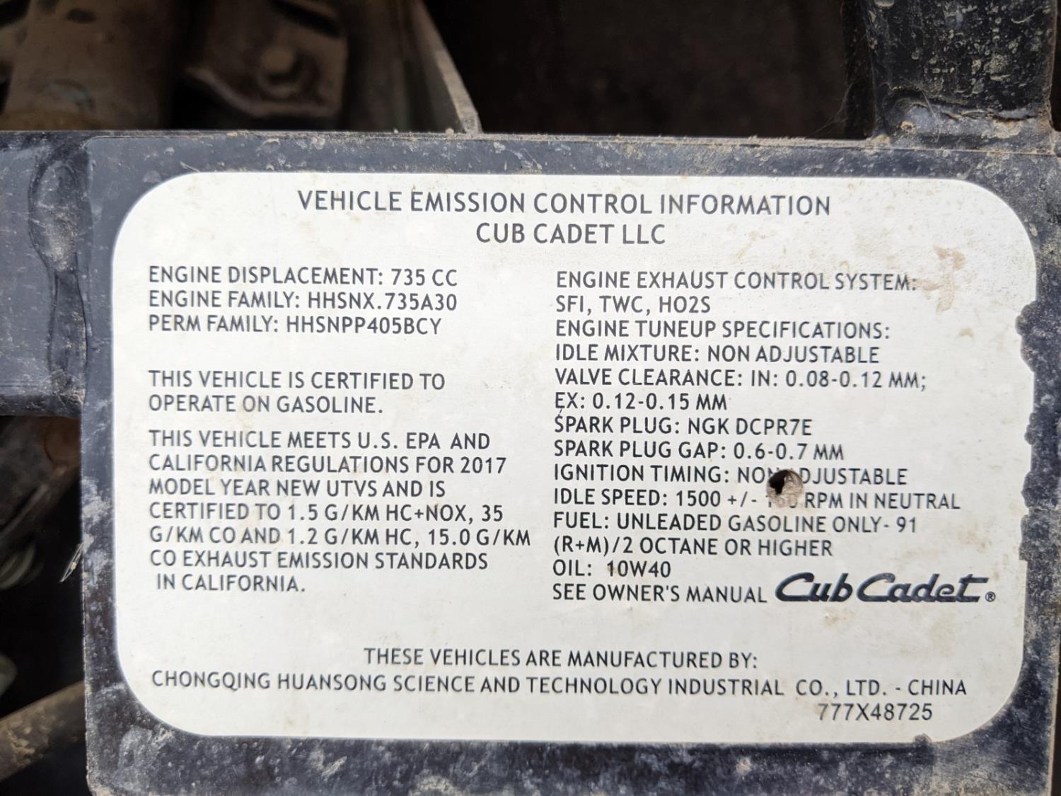 500 2017 Cub Cadet 150 Challenger 4X4 Side By Side
