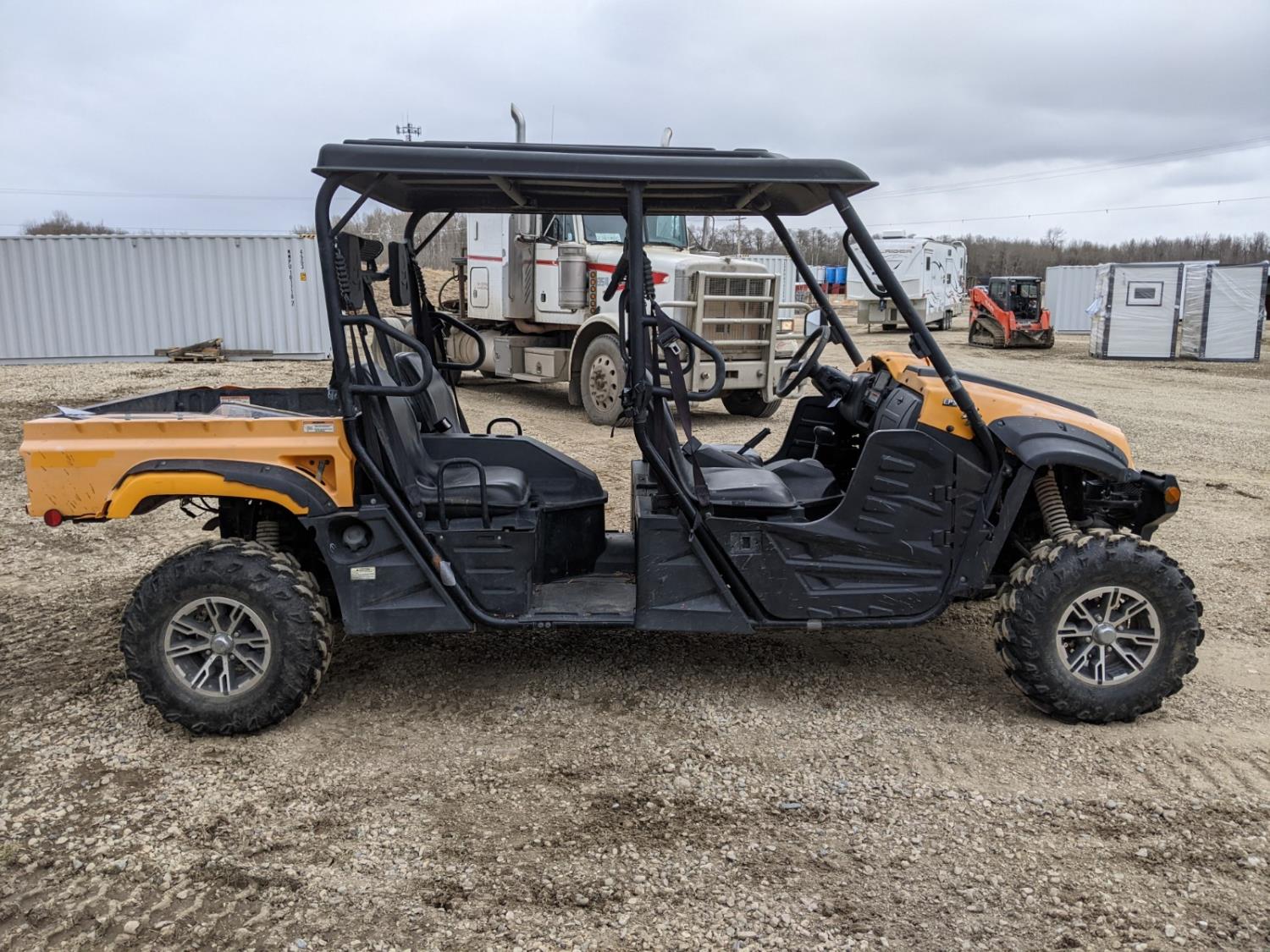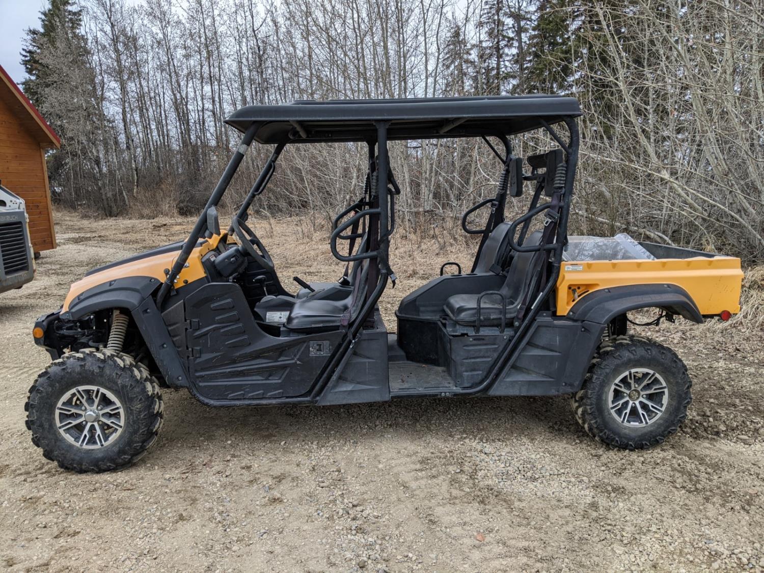 750 cc engine, automatic transmission, Hi/Lo range, reverse, open canopy, 4 passengers, windshield, front winch, manual dump box, crew cab , 26X9.00-12 front tires, 26X10.00-12 rear tires