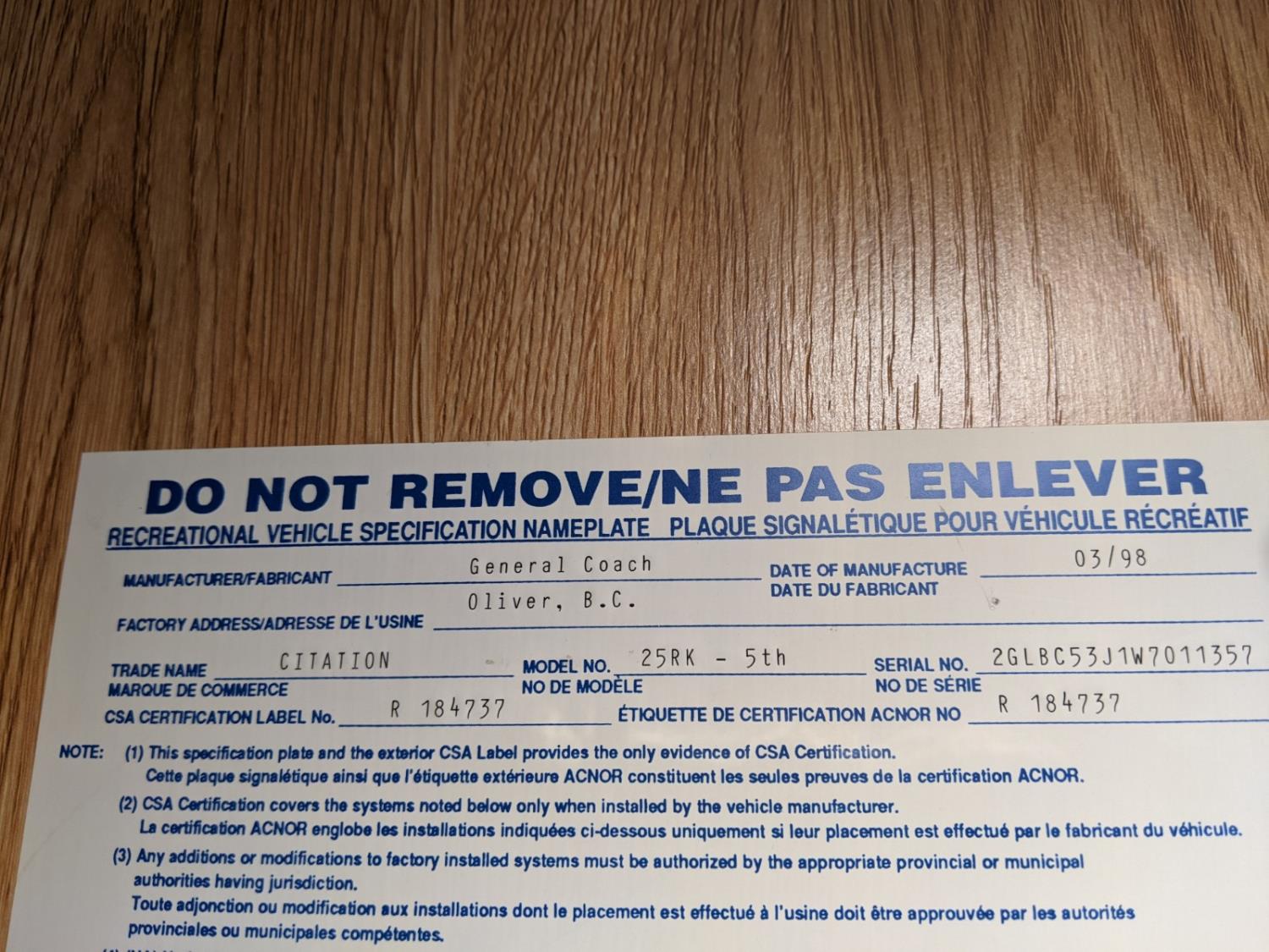 Selling with Bill of Sale only! Consult your local registry office for registration requirements as provinces differ. - Location: