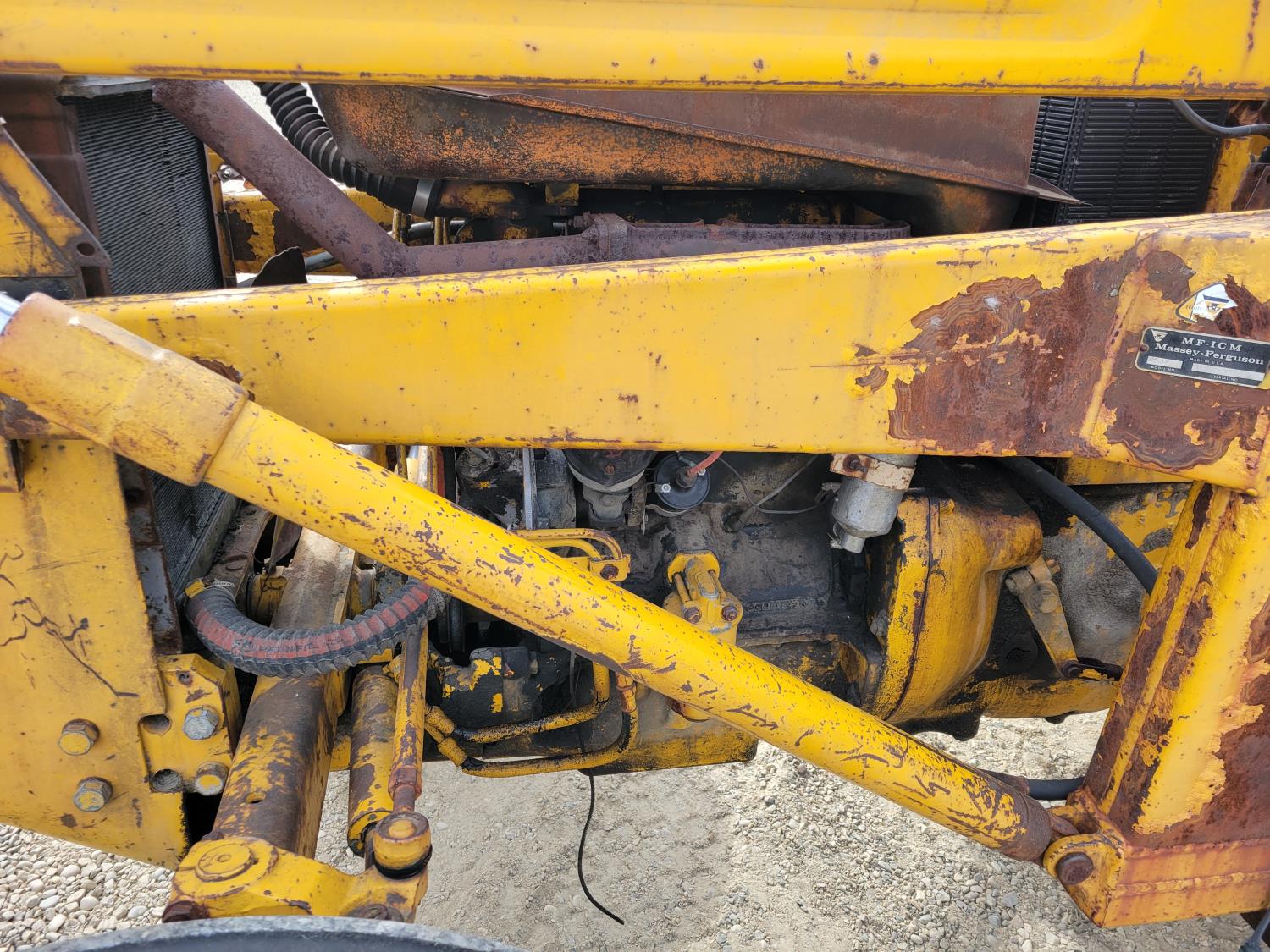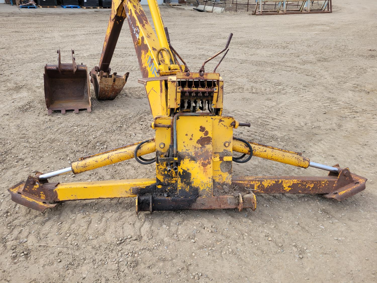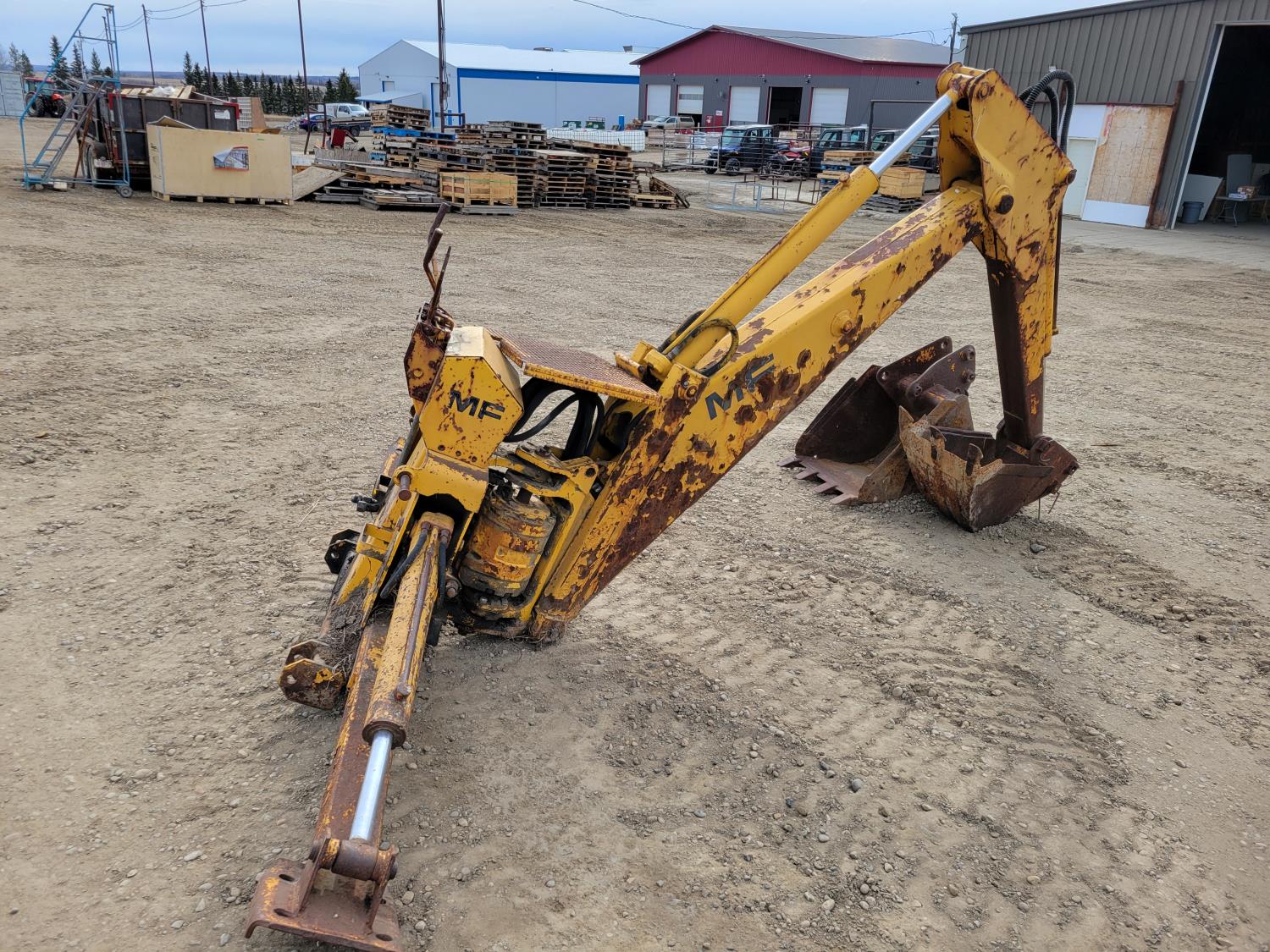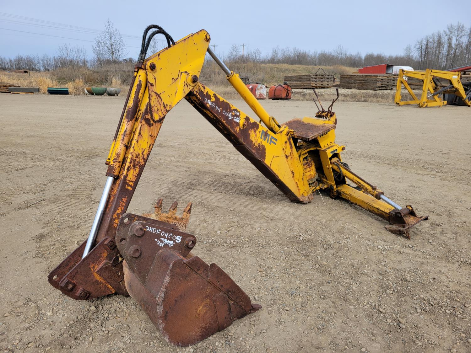 Massey Ferguson loader, 67 inch bucket, Massey Ferguson 4 cylinder gas engine, 6 speed manual transmission, open station platform, 540 PTO, 7.50-16 front tires, 14.9-24 rear tires, includes Massey Ferguson backhoe attachment with 16" bucket and 24" bucket