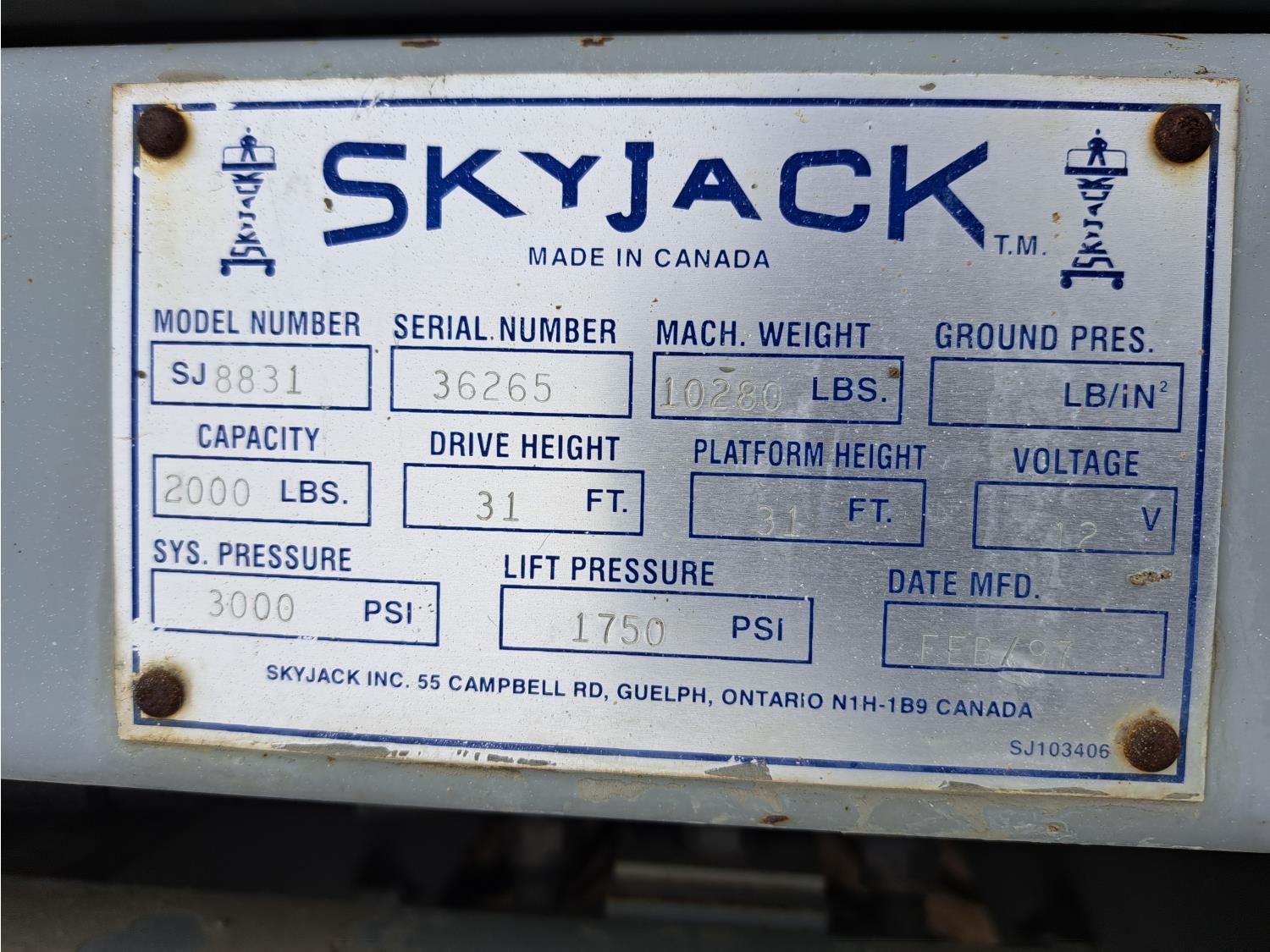 241 1997 Skyjack SJ8831 31 Ft 4X4 Scissor Lift