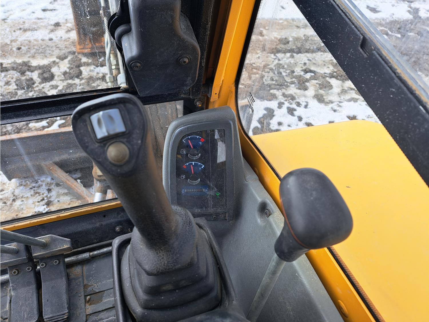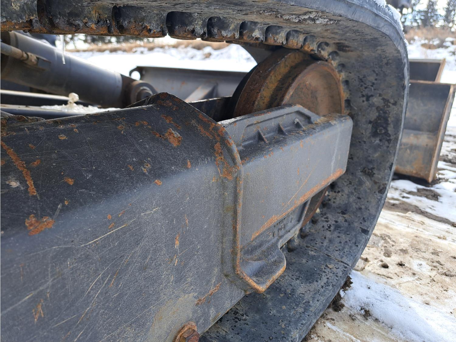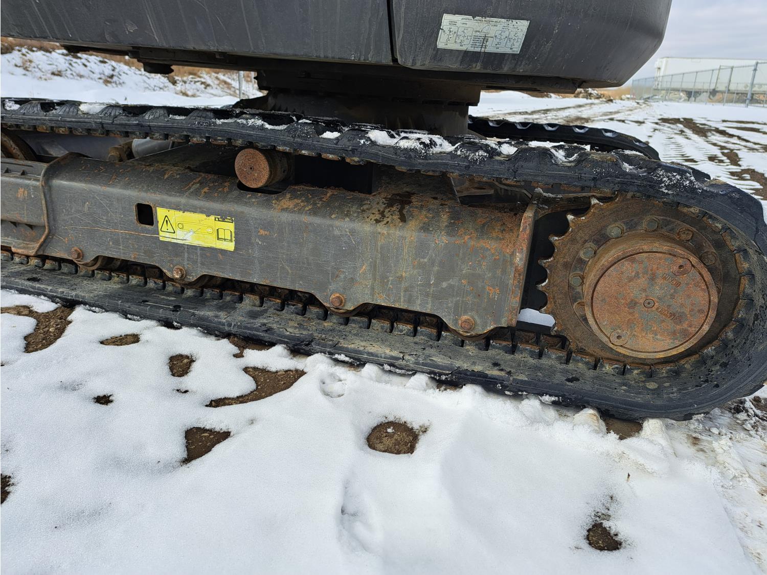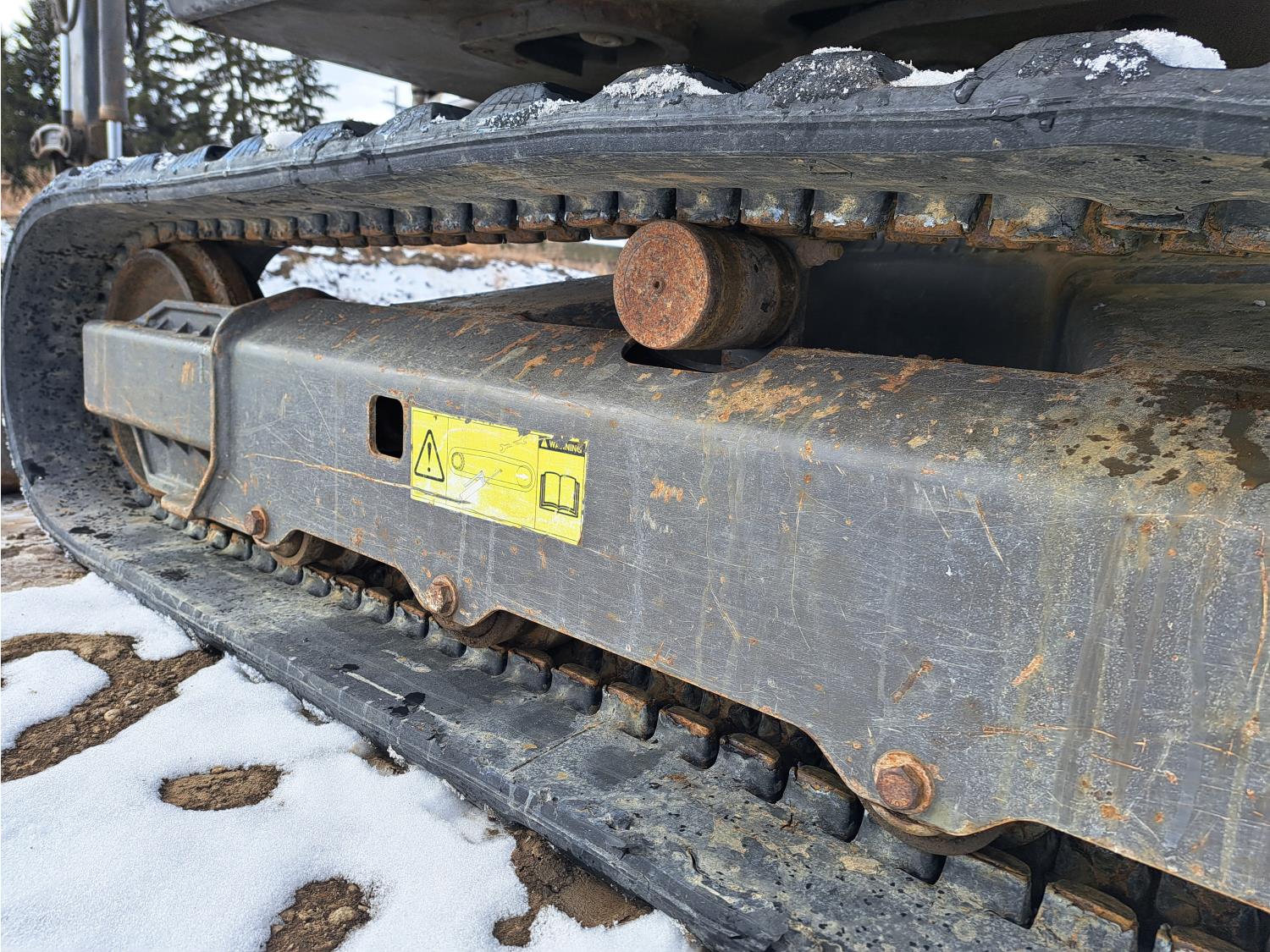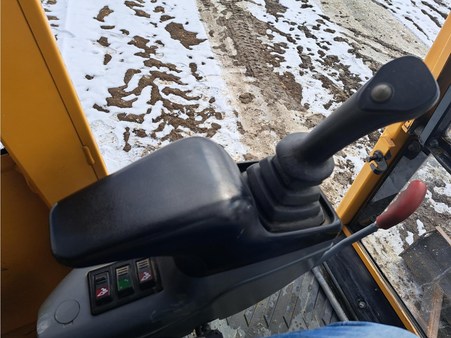 Enclosed cab, block heater, 36 inch cleanup bucket, manual coupler, hydraulic thumb, 1 auxiliary hydraulics, 49 inch stick, backfill blade, 24 inch dig bucket, 12 inch rubber tracks