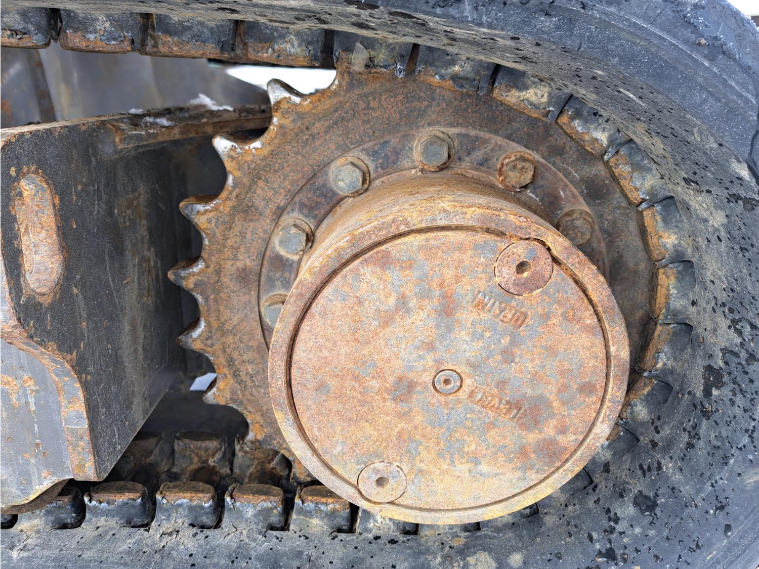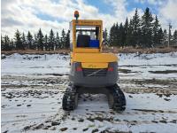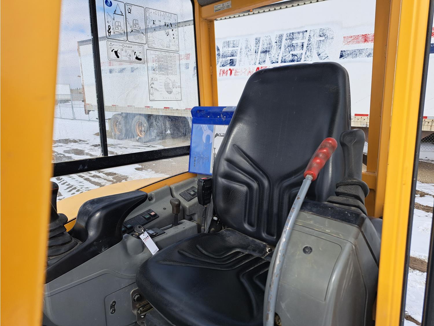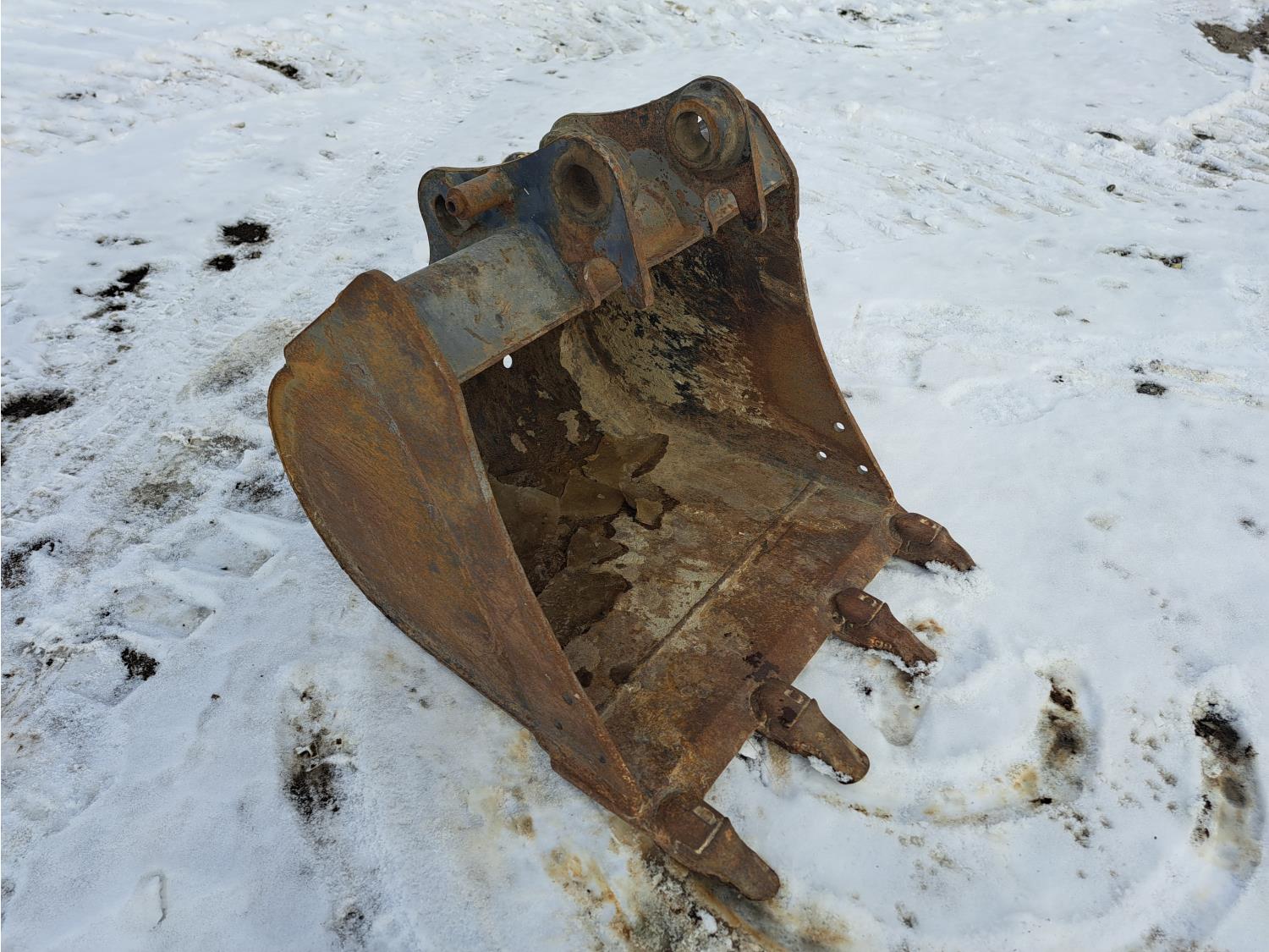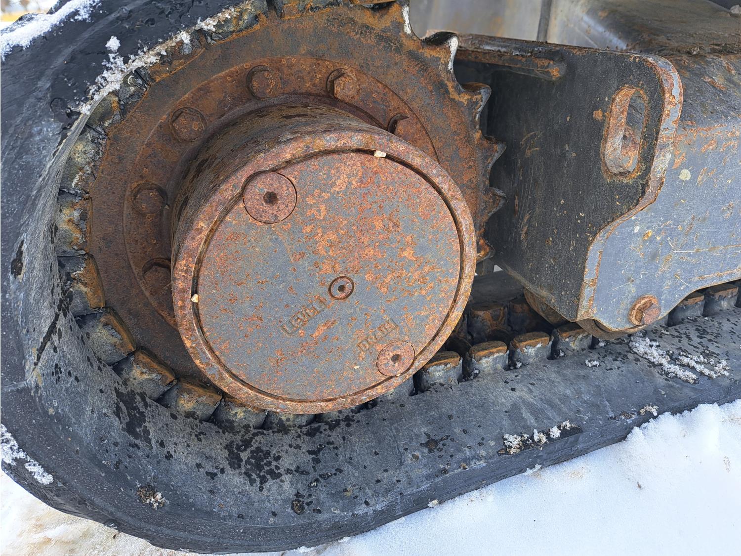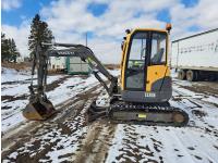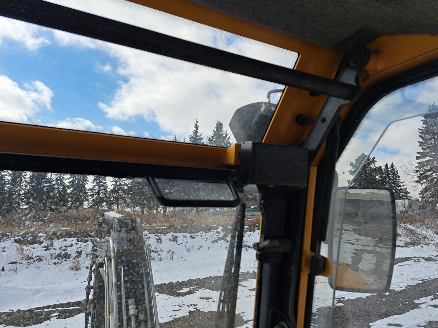 Enclosed cab, block heater, 36 inch cleanup bucket, manual coupler, hydraulic thumb, 1 auxiliary hydraulics, 49 inch stick, backfill blade, 24 inch dig bucket, 12 inch rubber tracks