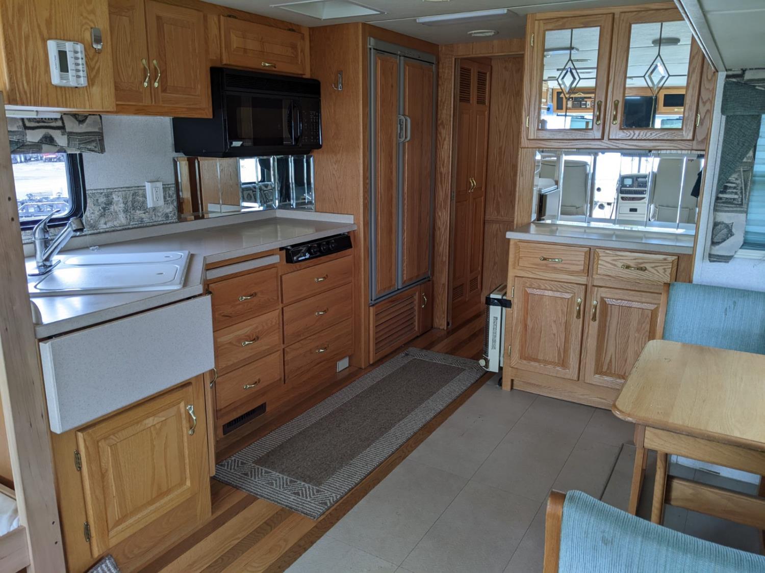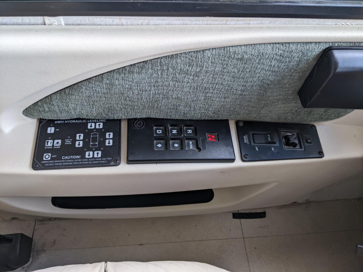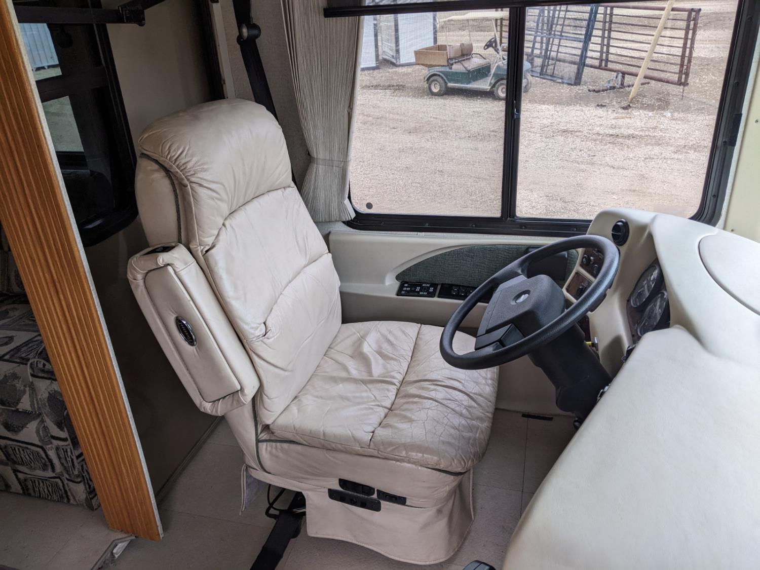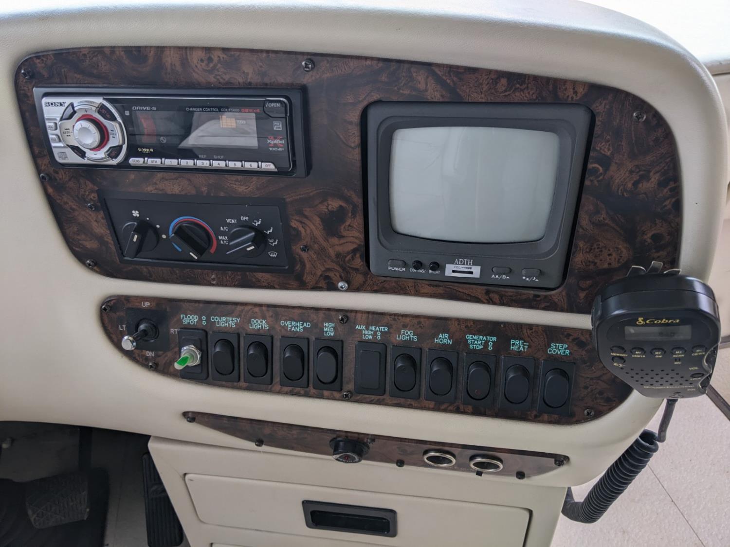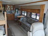 CAT 330 engine, 12,000 lb front, 19,000 lb rear axles, hydraulic stabilization legs, 2 slides, Suburban gas furnace, Suburban gas HWH, Atwood gas range, Domtec fridge, Generac generator, AC, Microwave, washer/dryer, custom built bunk beds, queen bed, 3 piece bathroom, front tires 275/70R22.5, rear dually
