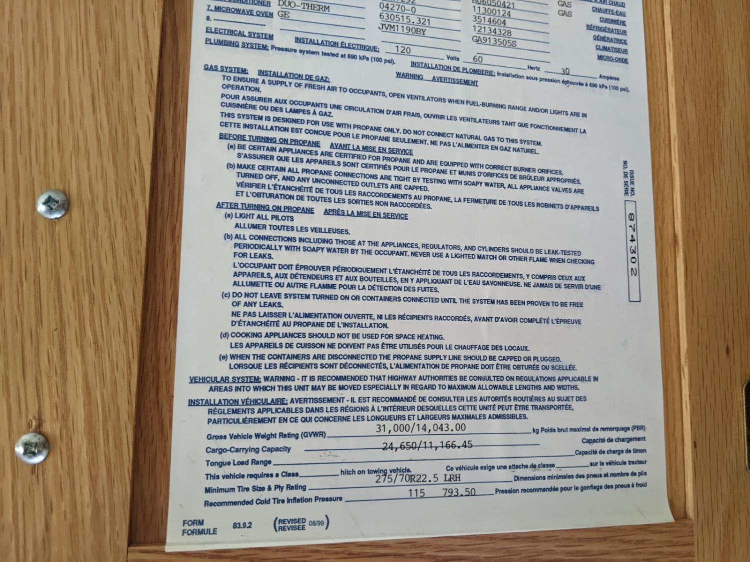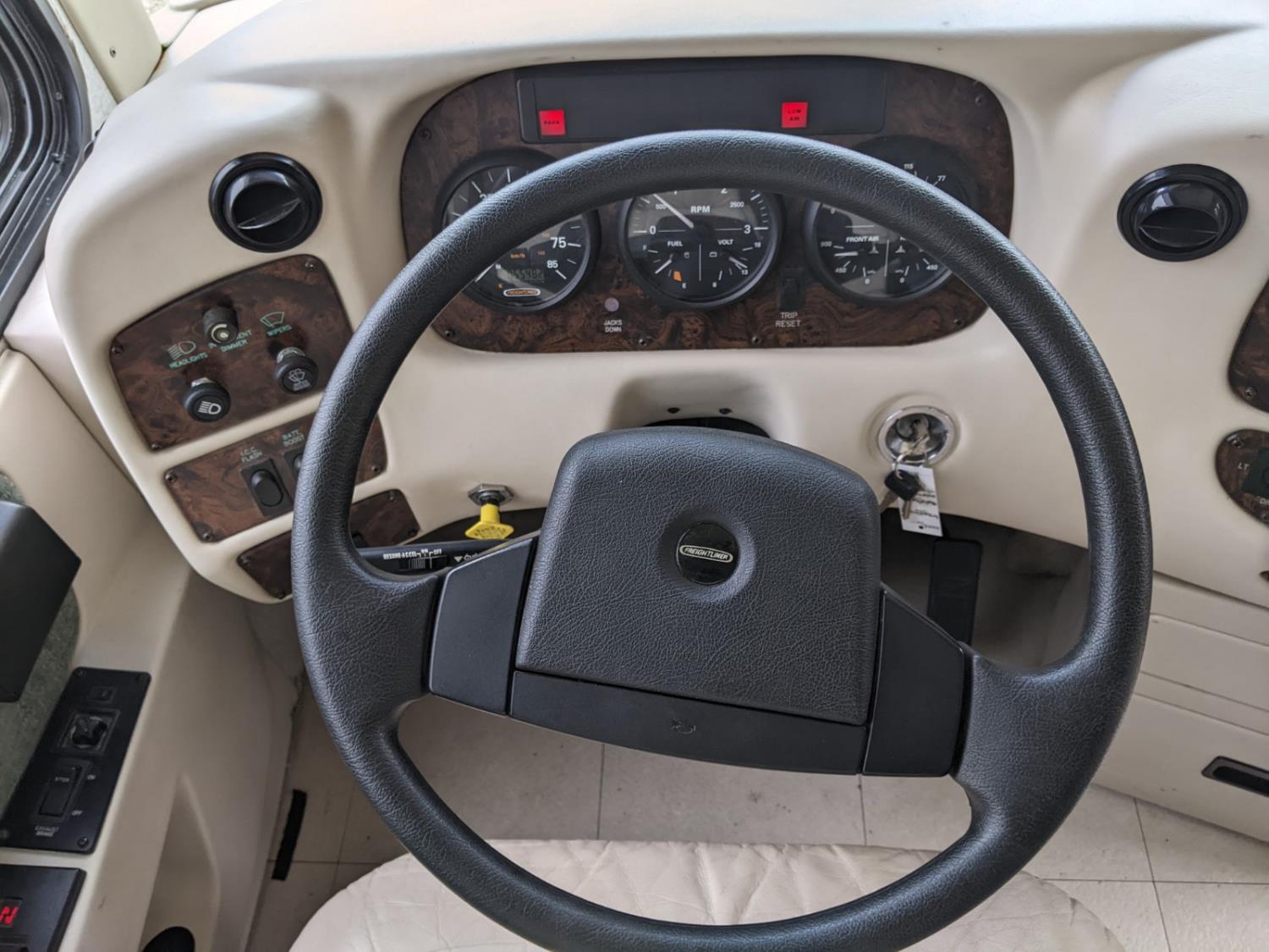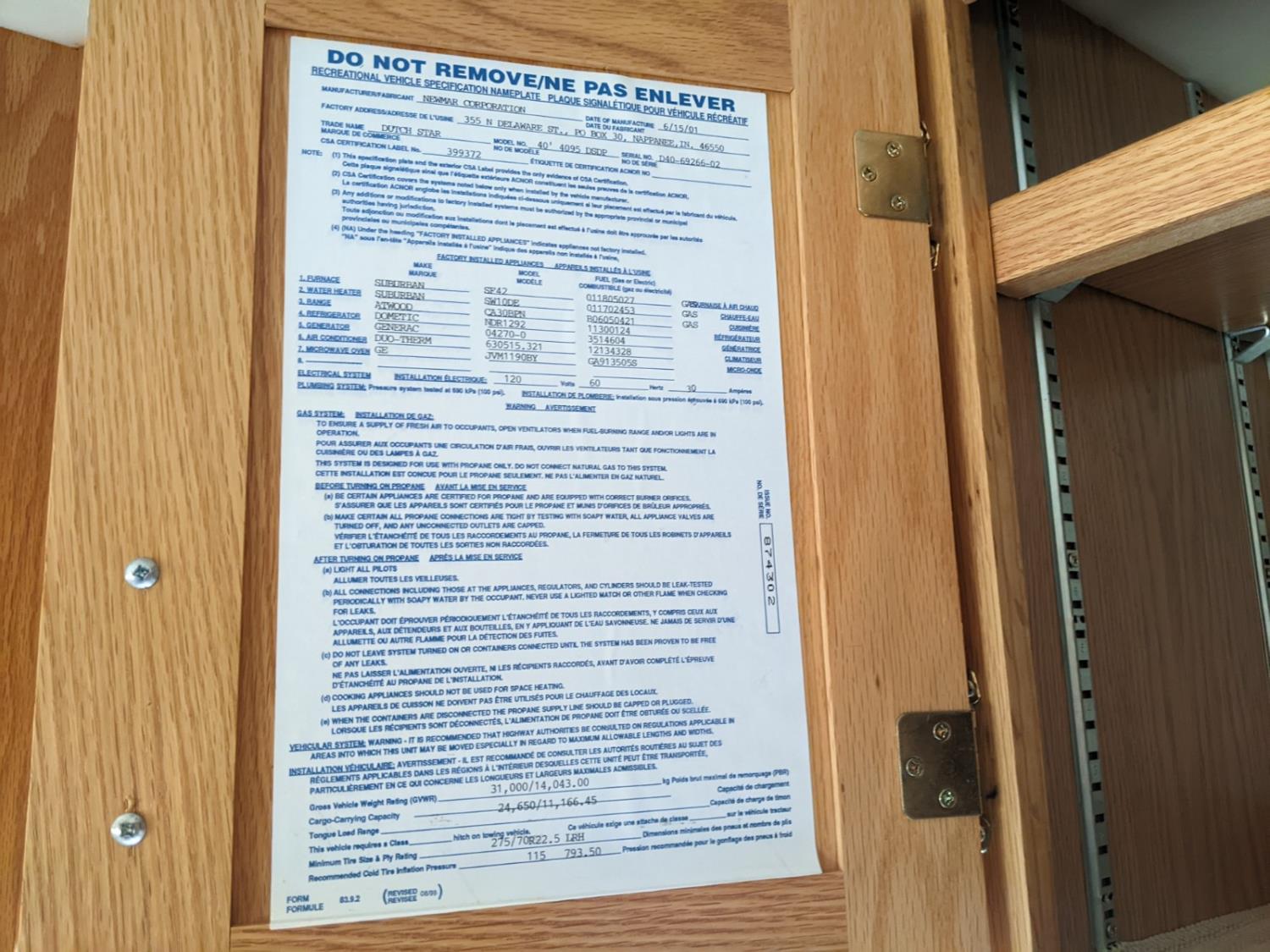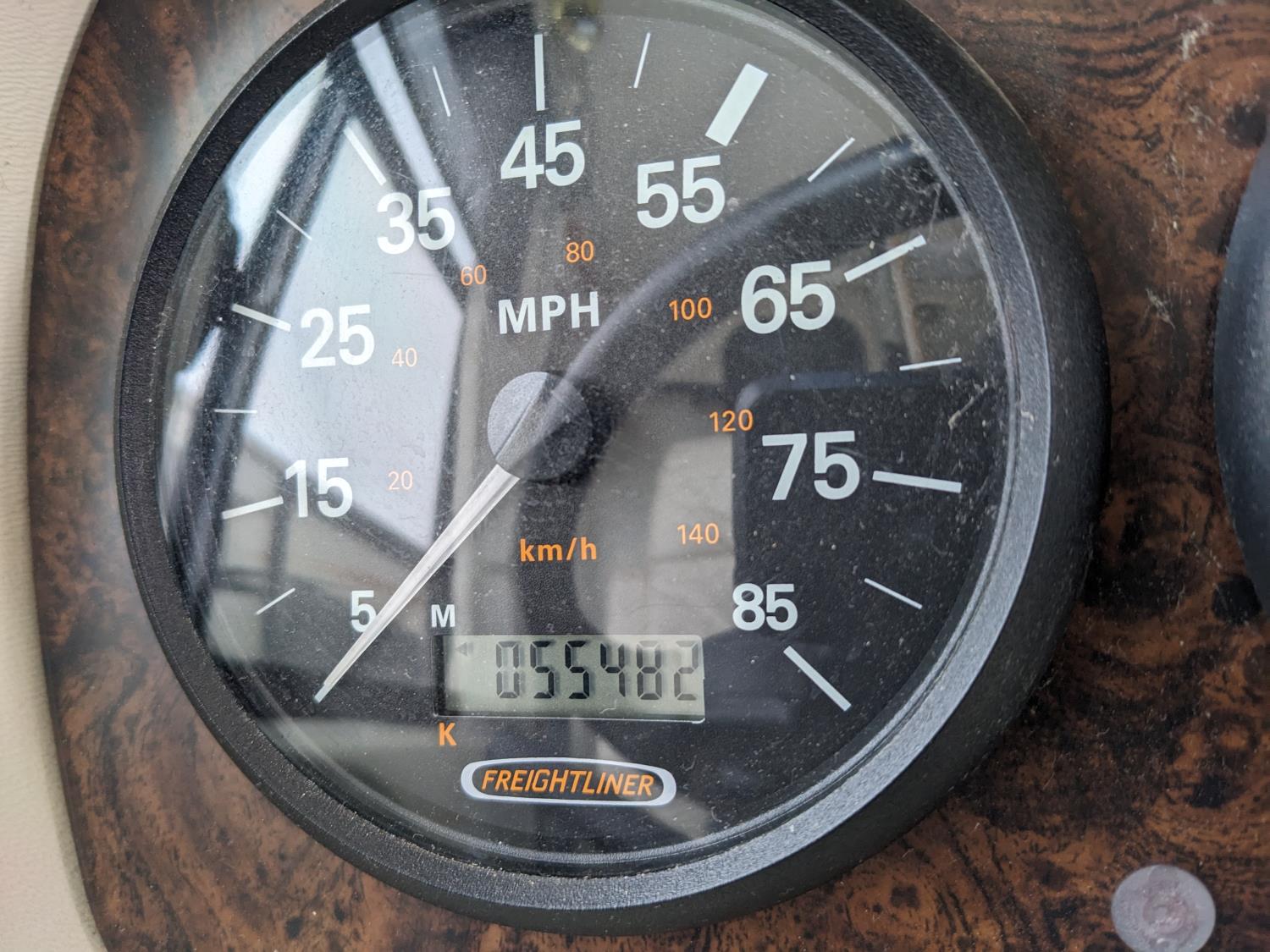 CAT 330 engine, 12,000 lb front, 19,000 lb rear axles, hydraulic stabilization legs, 2 slides, Suburban gas furnace, Suburban gas HWH, Atwood gas range, Domtec fridge, Generac generator, AC, Microwave, washer/dryer, custom built bunk beds, queen bed, 3 piece bathroom, front tires 275/70R22.5, rear dually