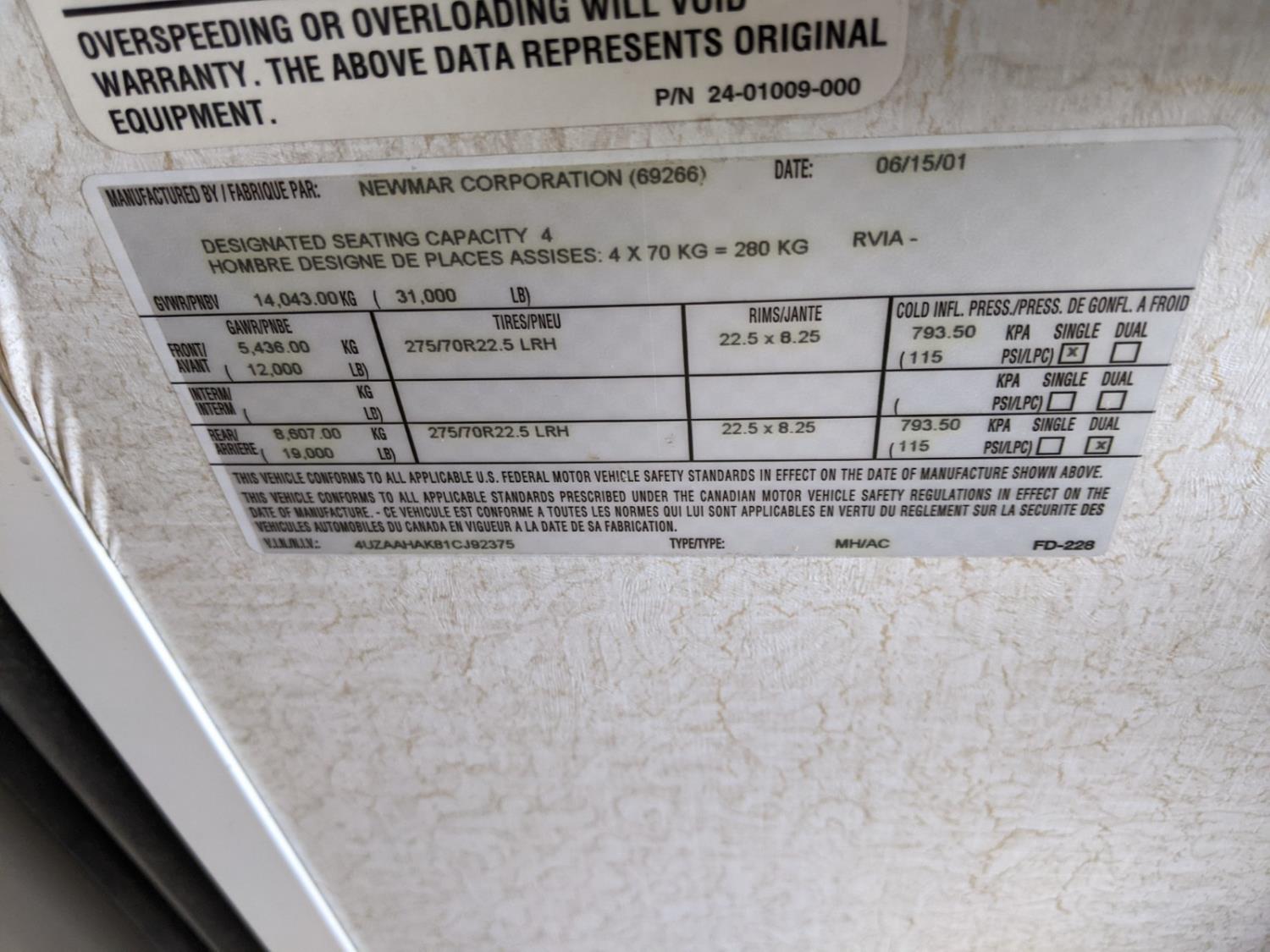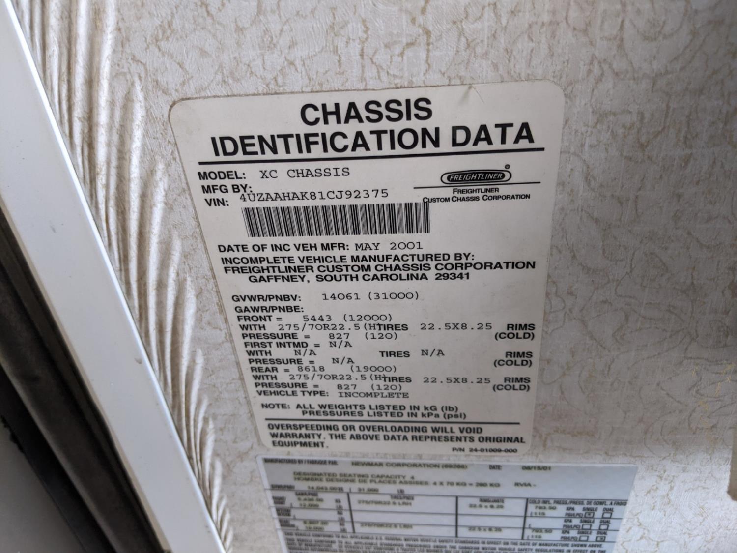 - Ser #: 4UZAAHAK81CJ92375
