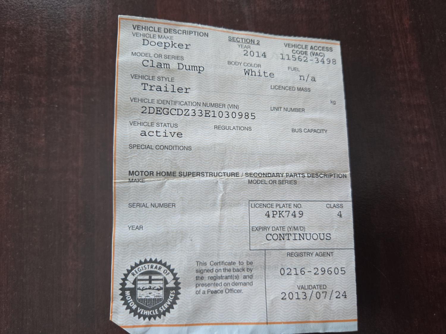 Copy of registration on hand. - Location: