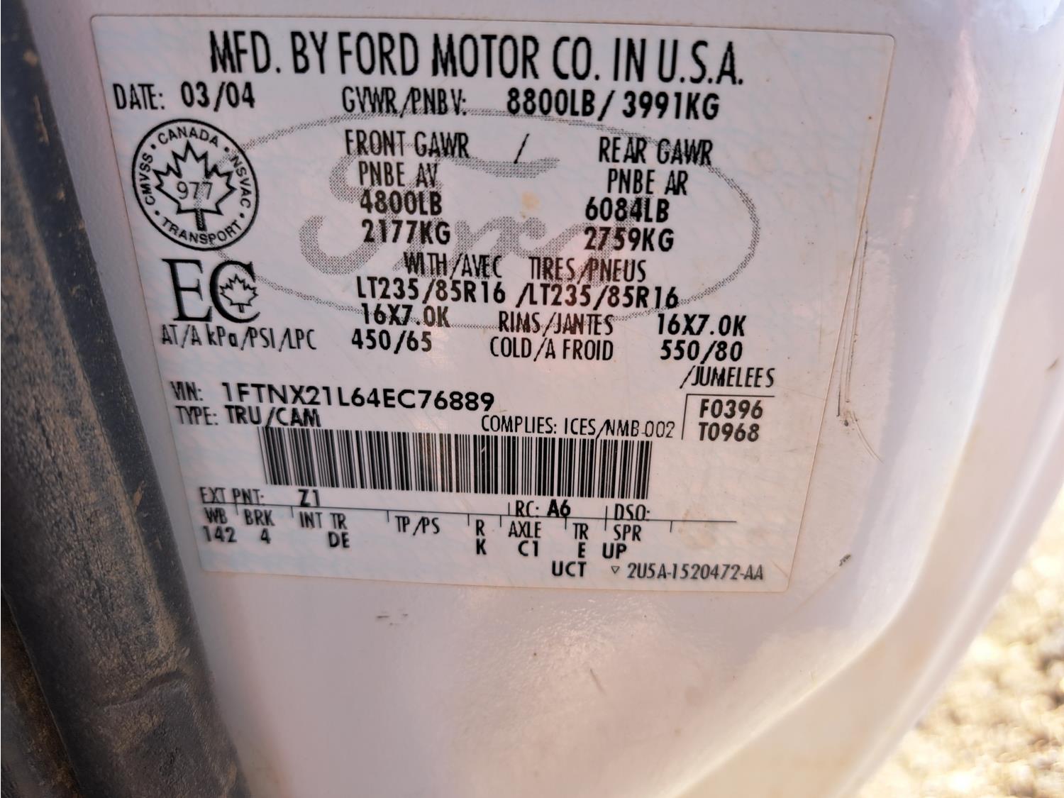 - 1FTNX21L64EC76889