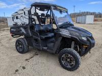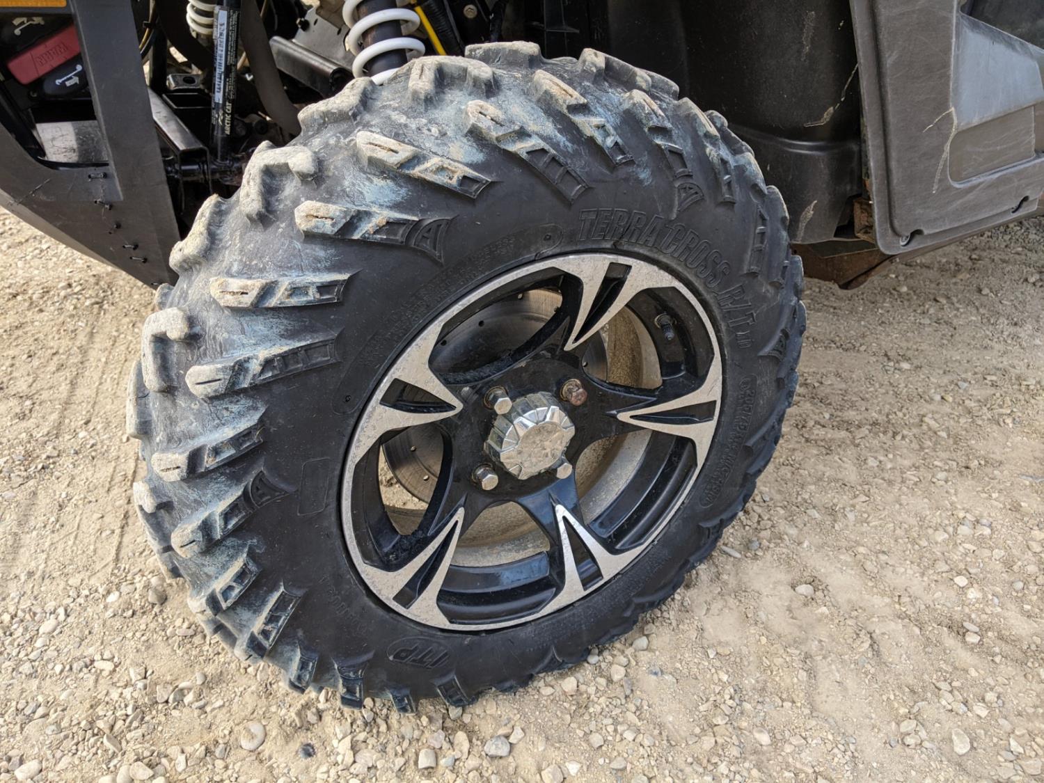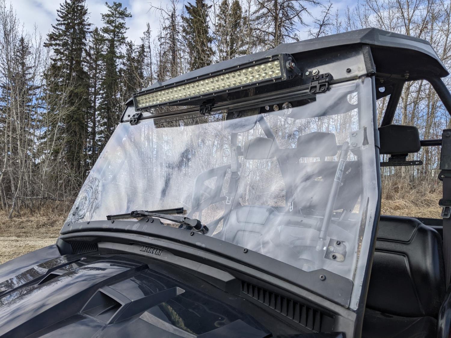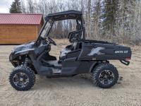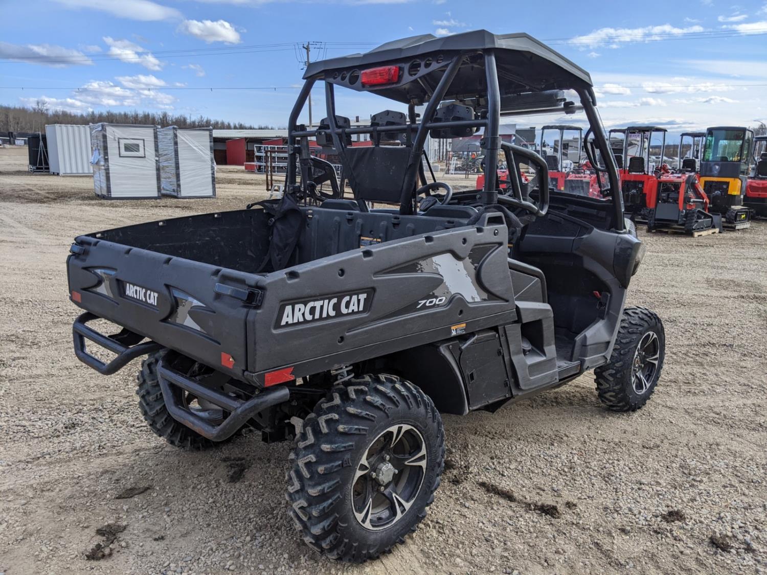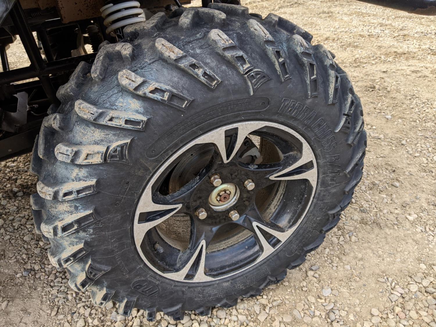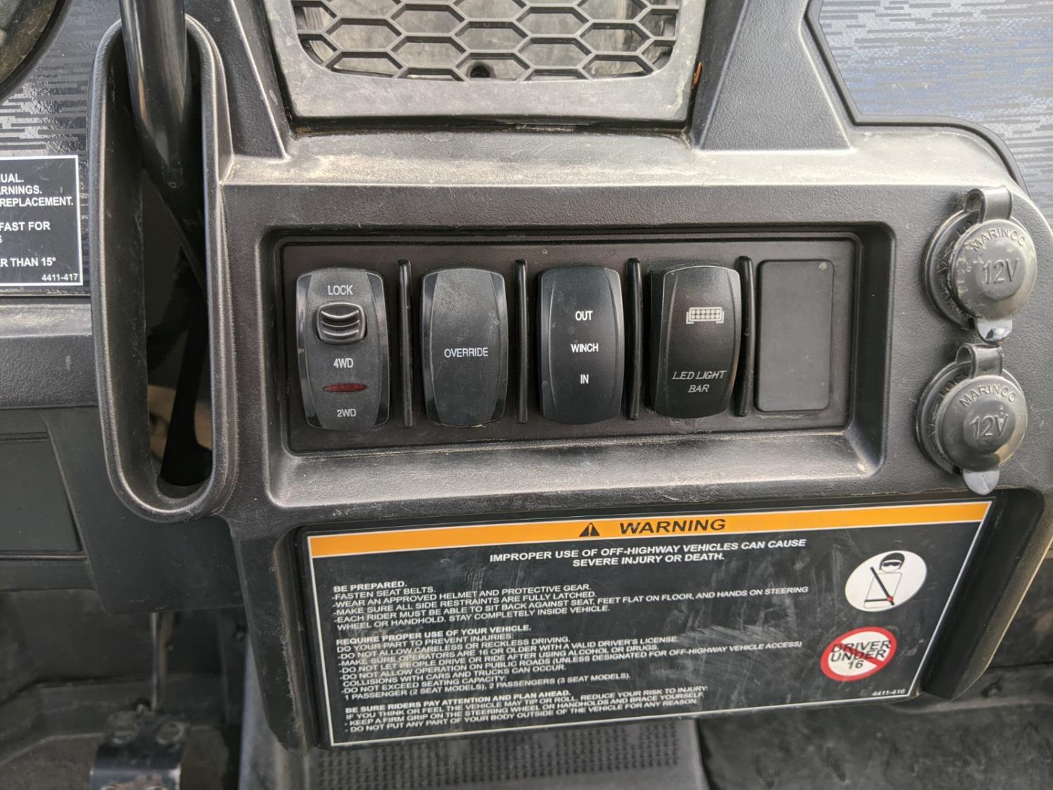 700 cc fuel injected engine, automatic transmission, Hi/Lo range, reverse, open canopy, windshield, power steering, front winch, front locking differential, manual dump box, receiver hitch, independent suspension, LED light bar, 205/75R14 front tires, 255/65R14 rear tires