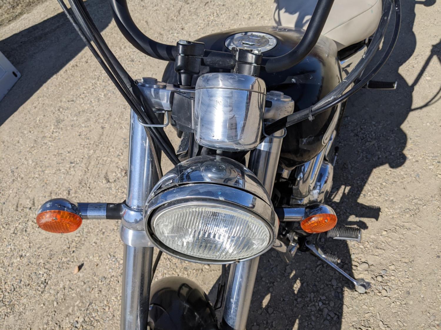 Has dent in fuel tank, and exhaust is missing