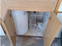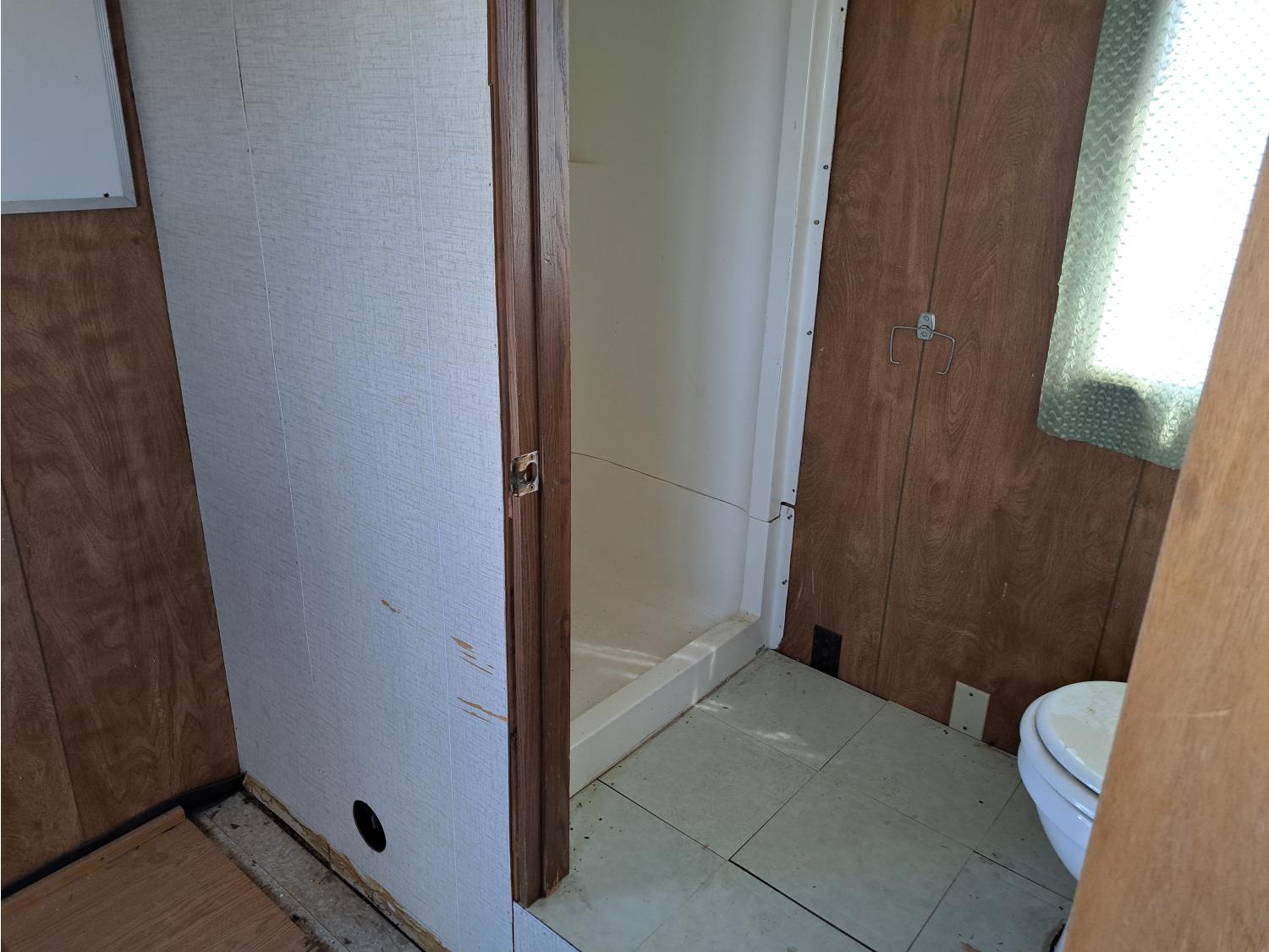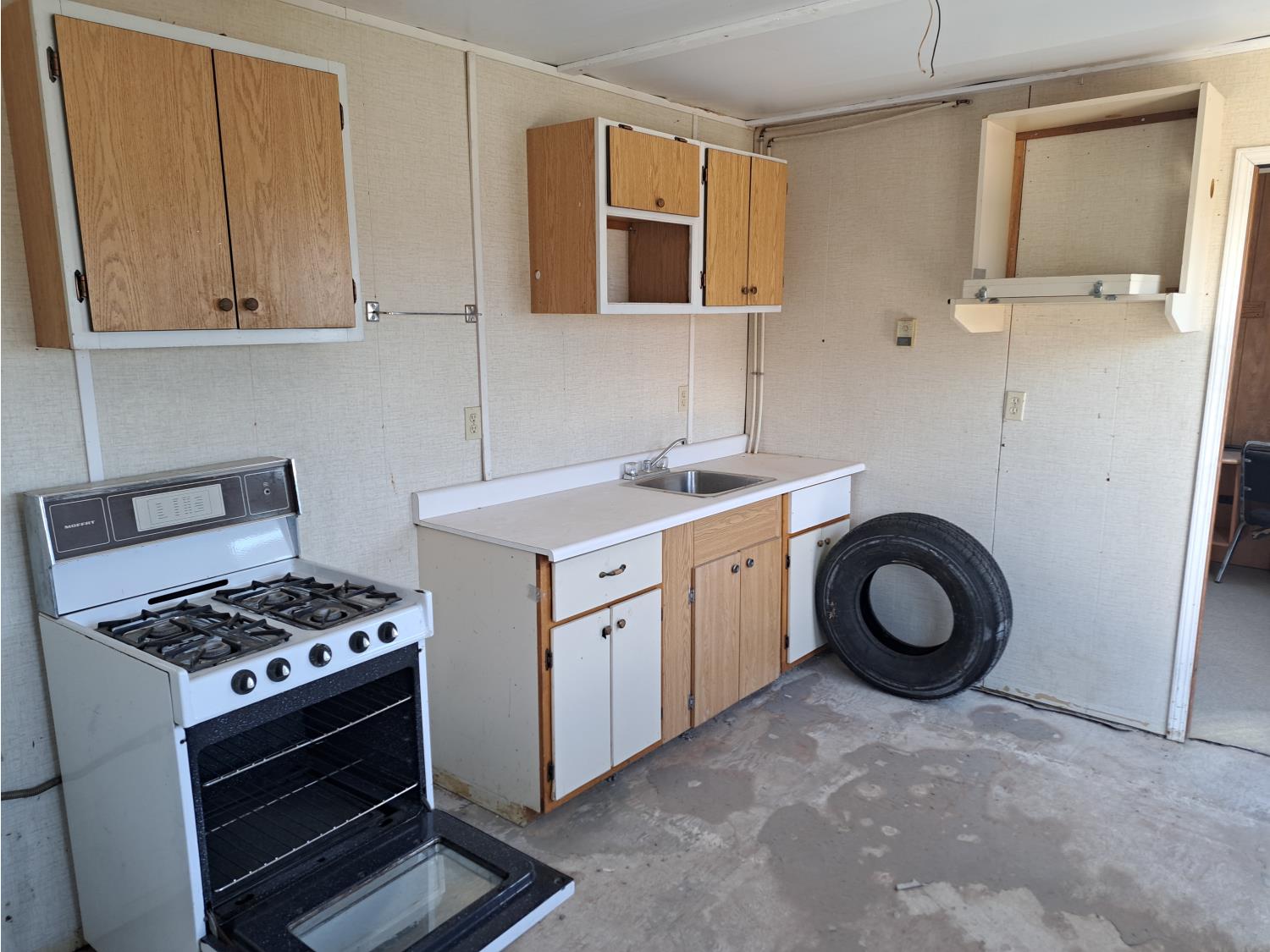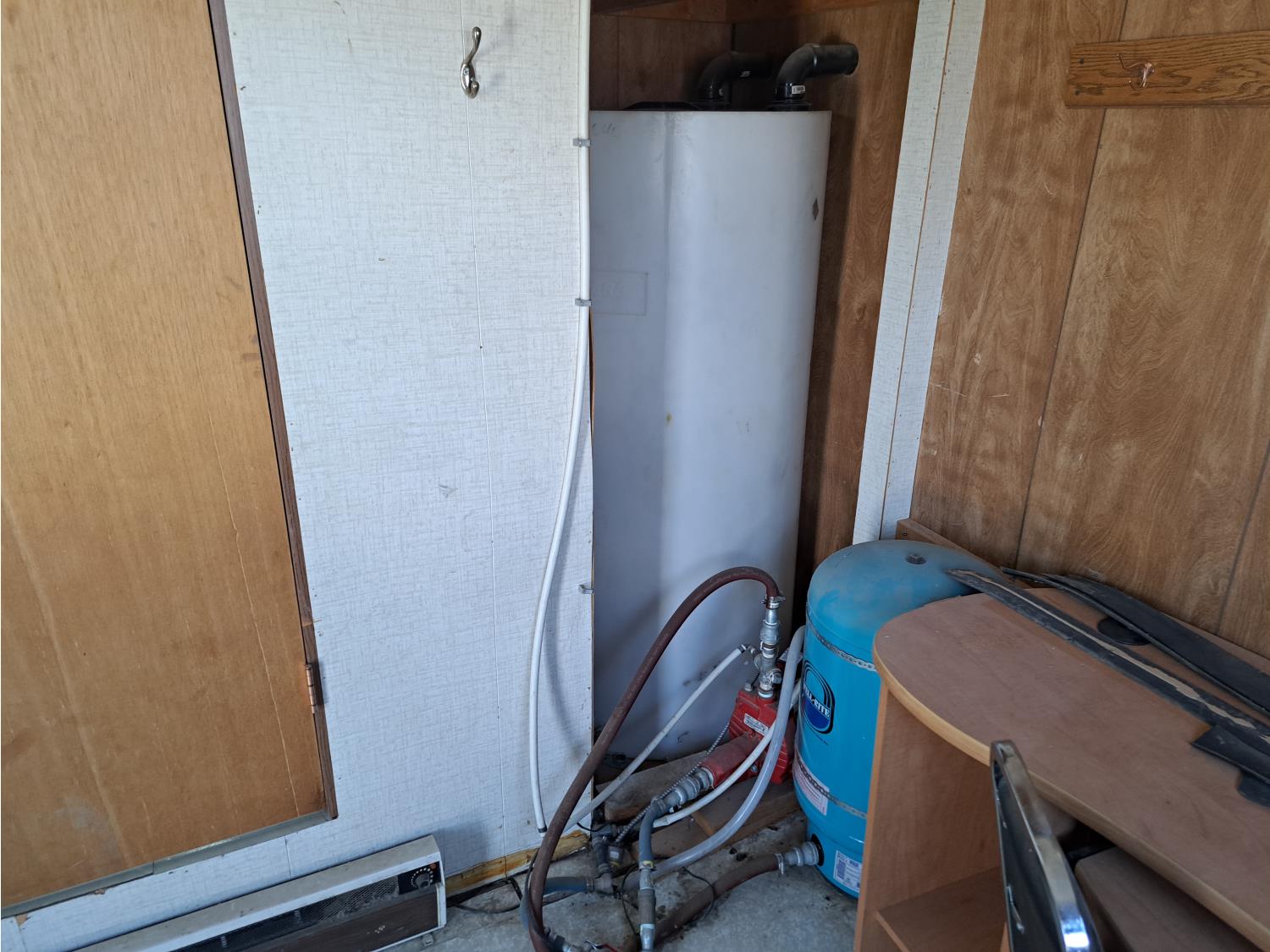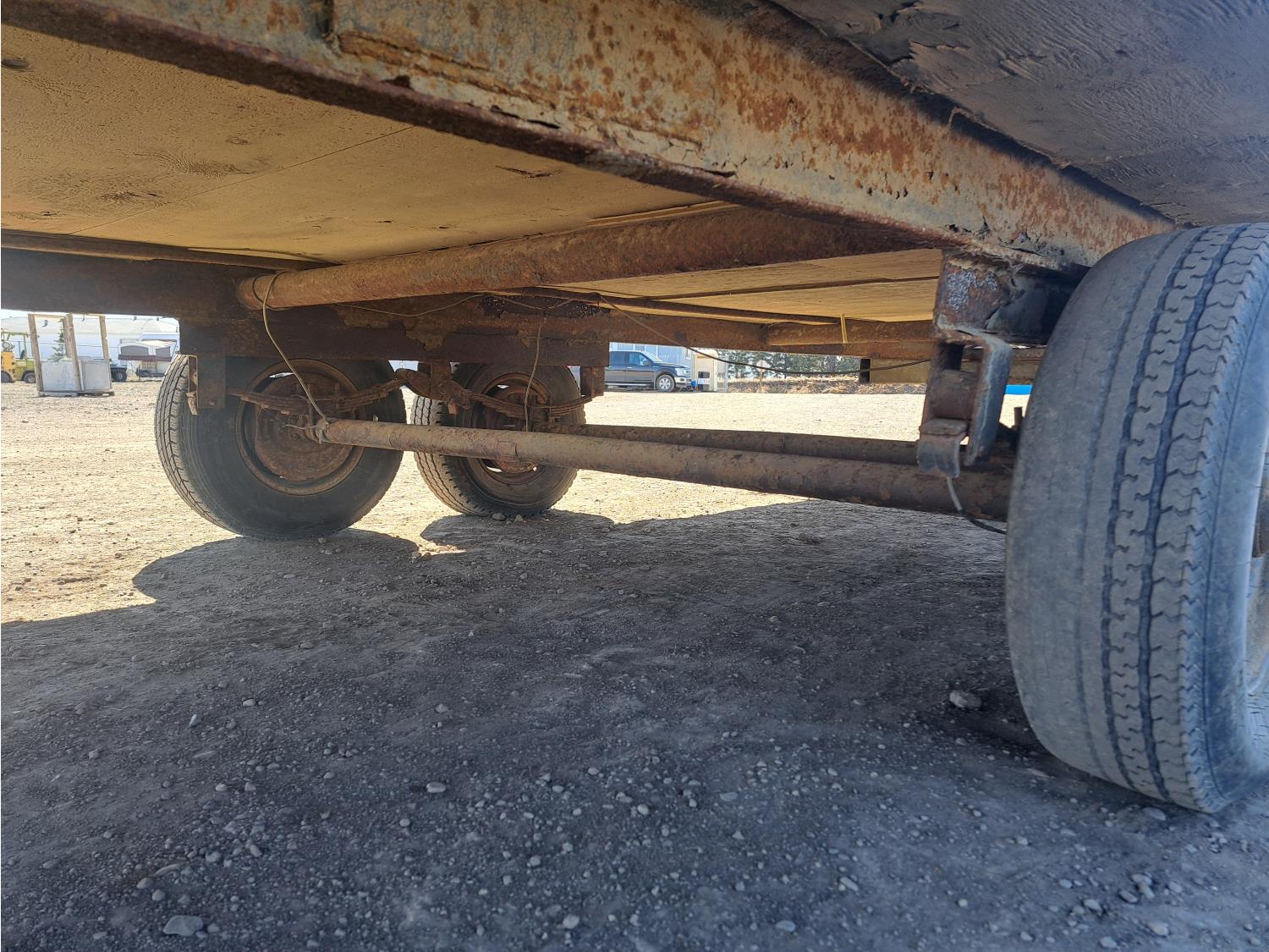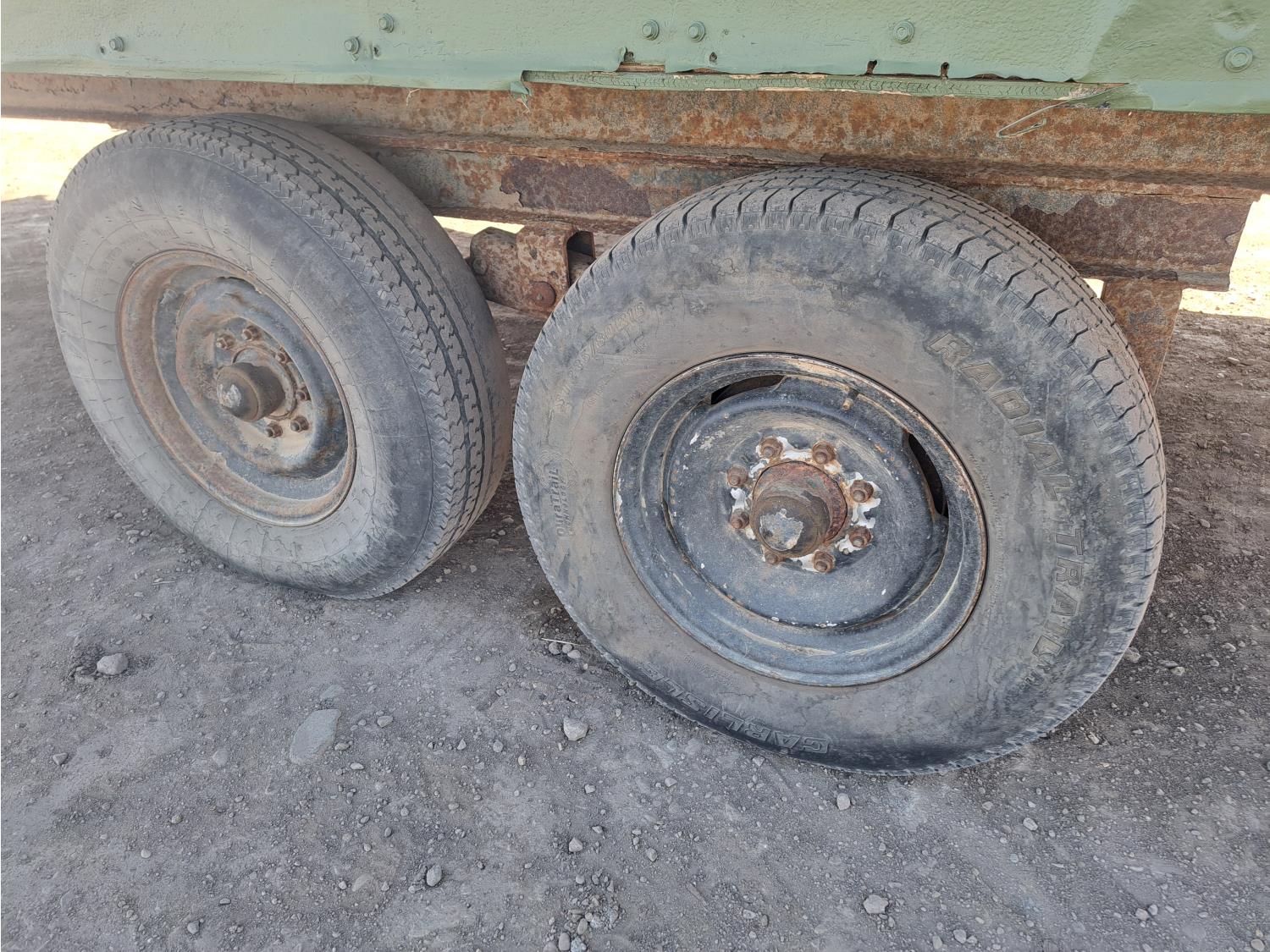 9 Ft 10 inches wide x 24 Ft long, 235/80 R16 tires, spare tire, pintle hitch, spring suspension, water tank, pressure pump, bathroom with toilet and shower, desk, furnace, sink, oven