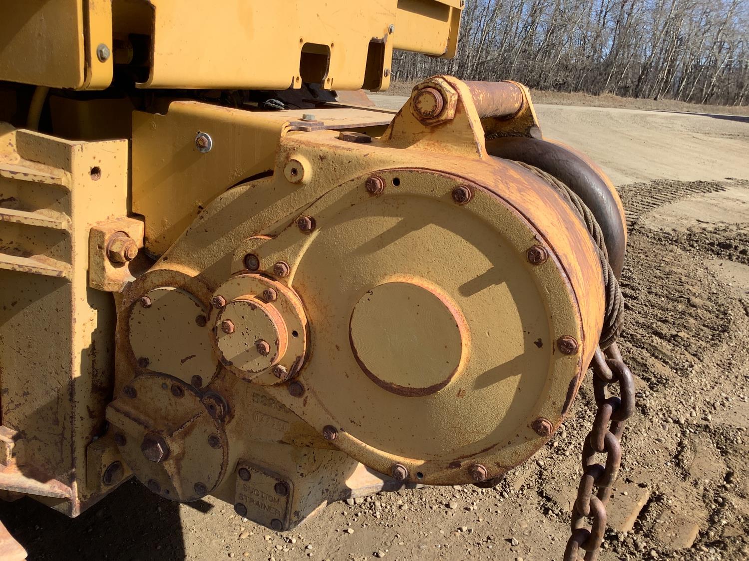 Enclosed cab, A/C, Cat C9 diesel engine, positive air shutoff, powershift transmission, brush sweeps, 6 way angle dozer, rear screen, engine side shields, Lube link rails, Carco 70 winch, single grousers