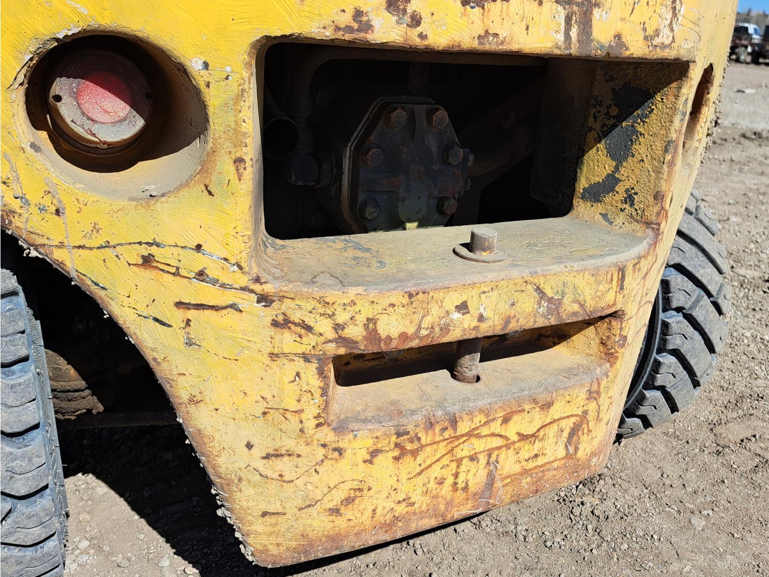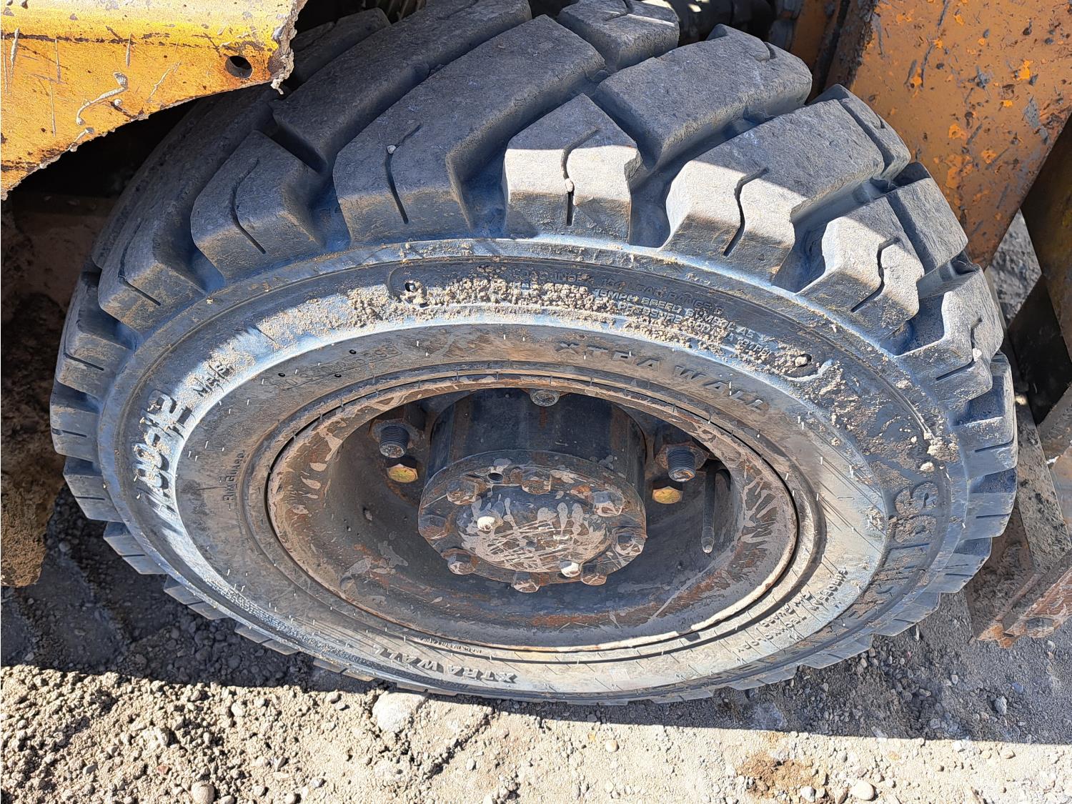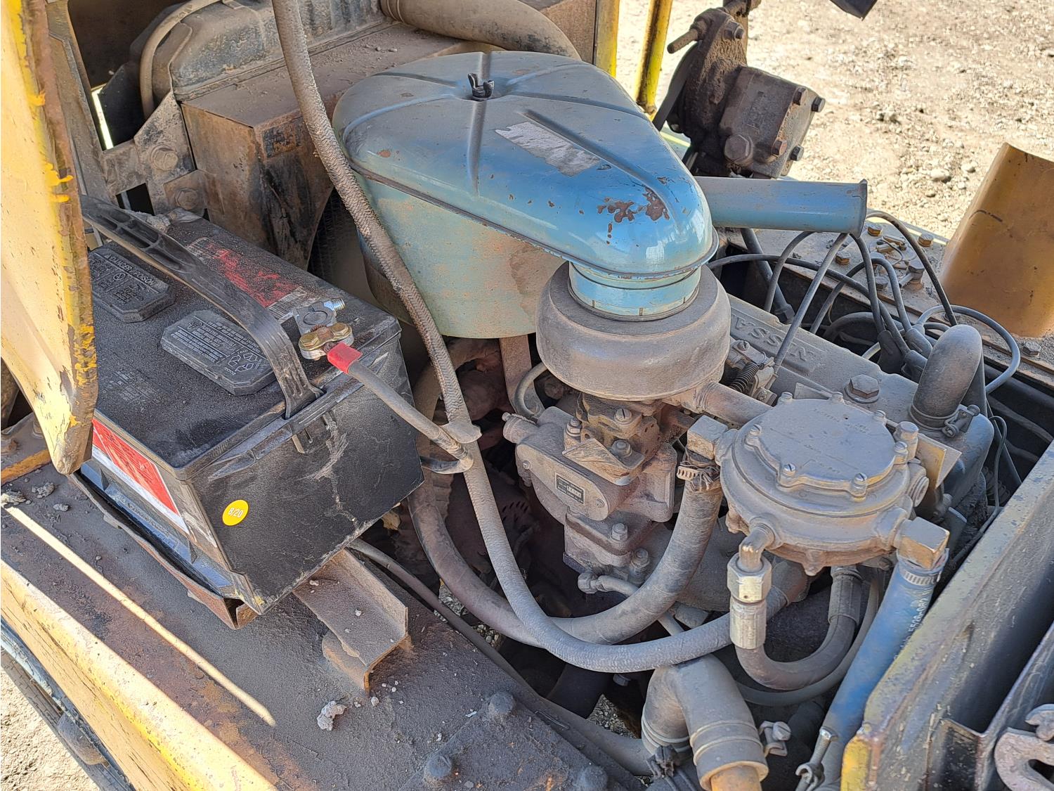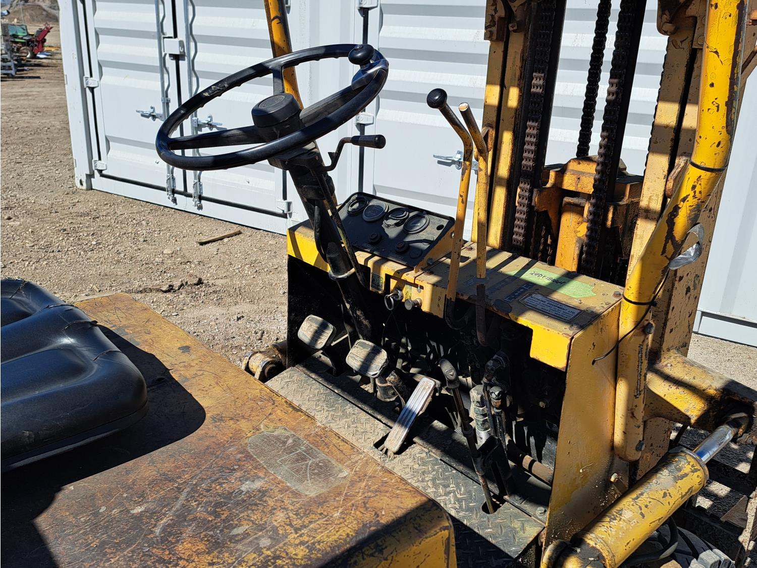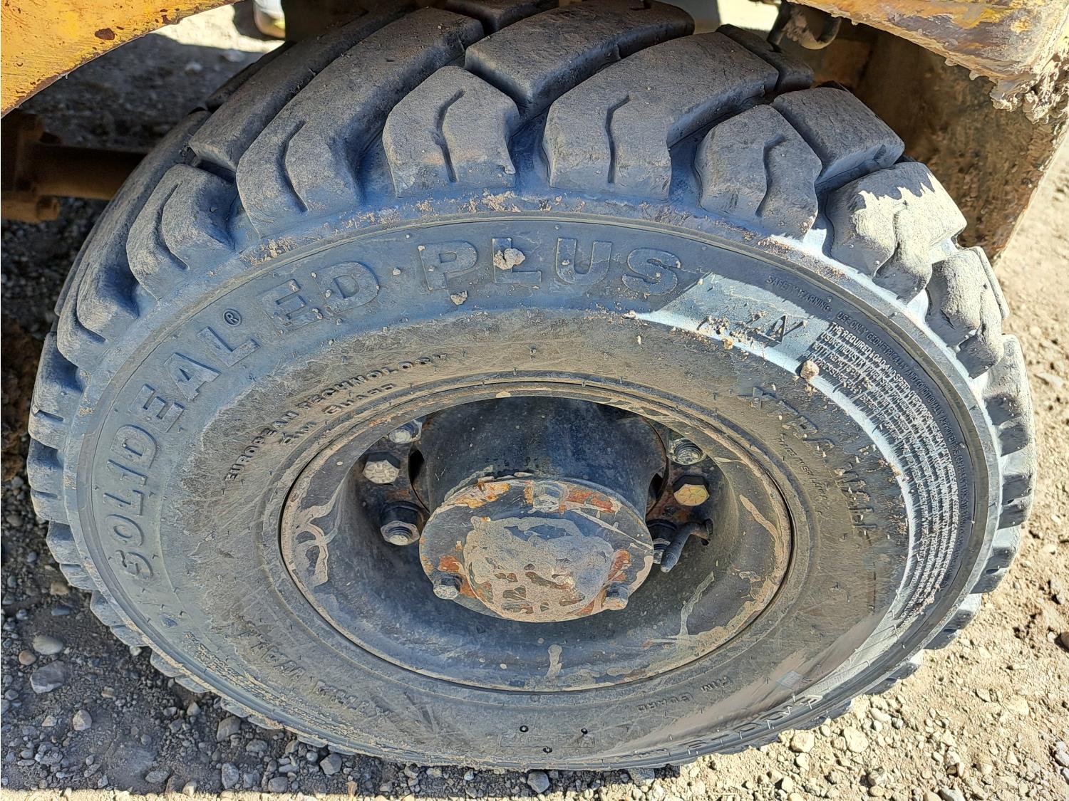 Propane powered Nissan motor, two stage tilting mast, 42 inch pallet forks, 7.00 - 12 front tires, 6.00 - 9 rear tires, front tire chains, 132 inch ± mast fully extended.