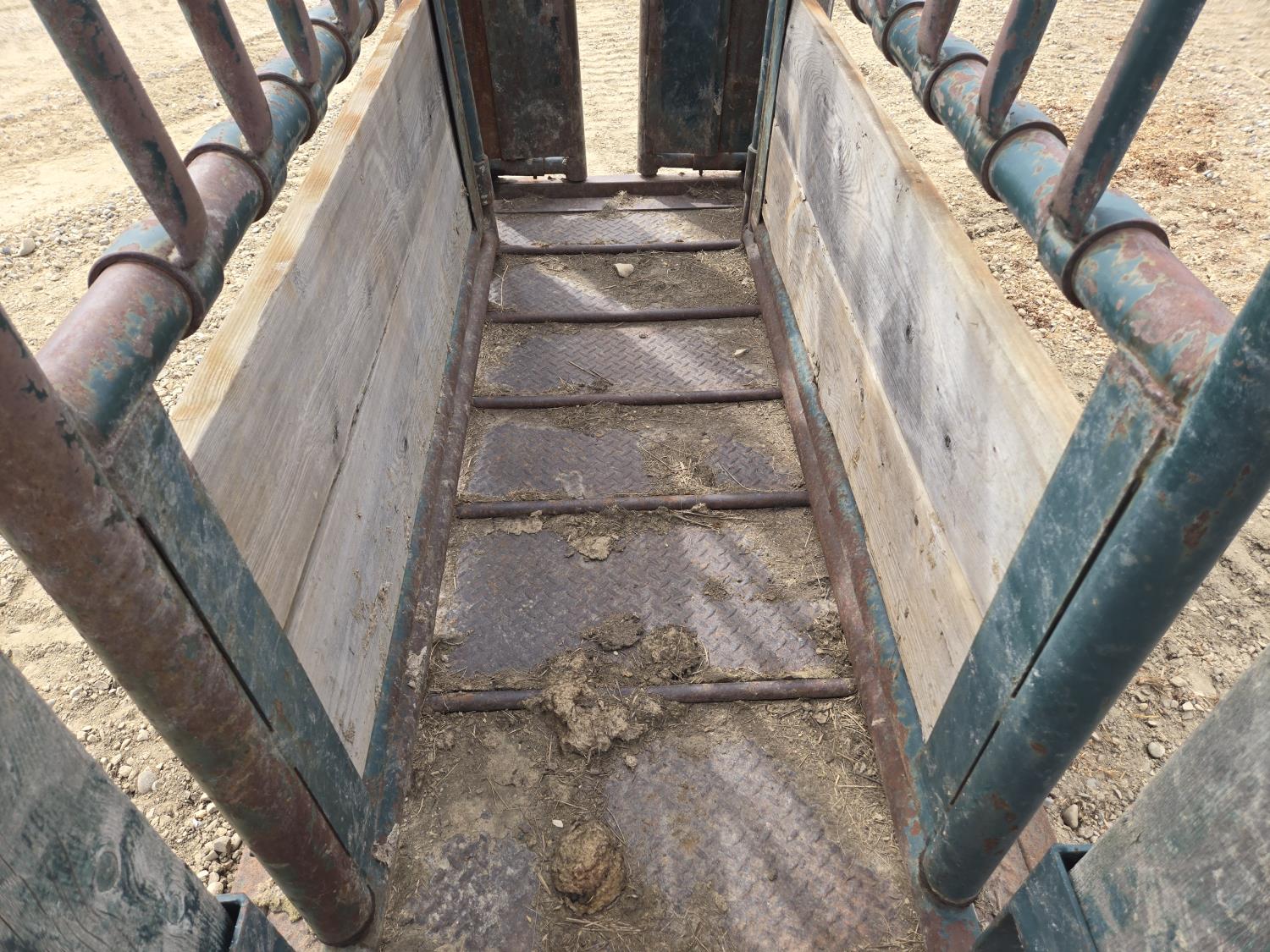 auto catch head gate, both sides open, metal floor, rear vertical slide gate