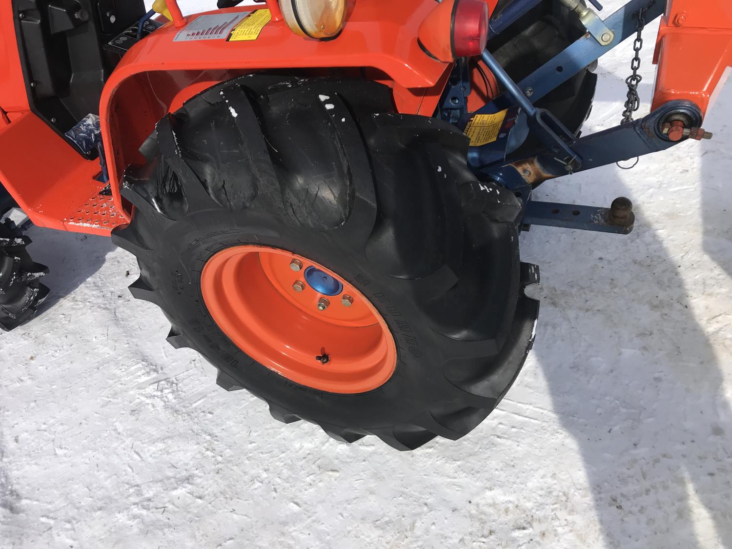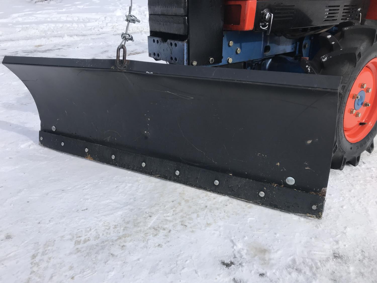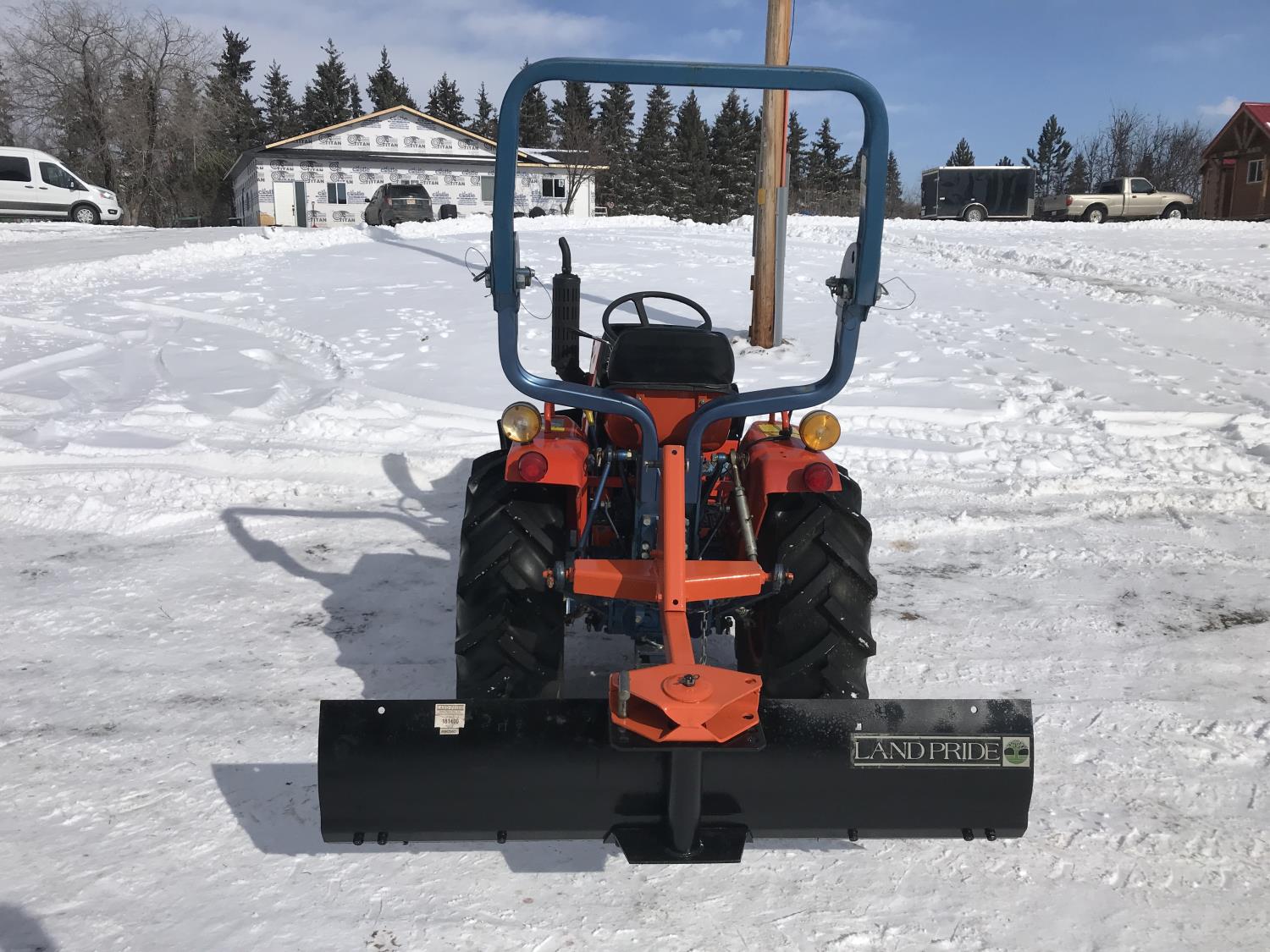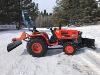 Deadong .9 L 3 cylinder 19.5 HP, diesel engine, 17 PTO HP, 8 speed manual transmission, shuttle shift, rear differential lock, signal lights and flashers, glow plugs, 540 PTO, 3 point hitch, 6-12 front tires, 12.4-16 rear tires, 54" Garden Way front mounted blade with skid shoes and electric lift and manual angle, 60" Landpride 3 point hitch rear blade with manual angle
