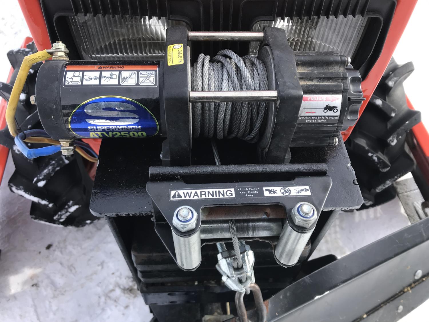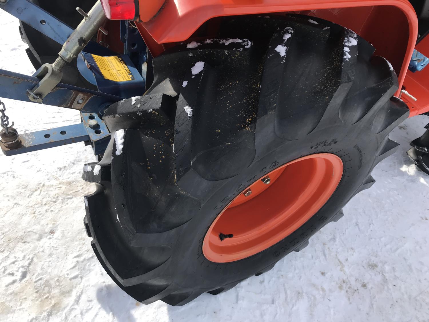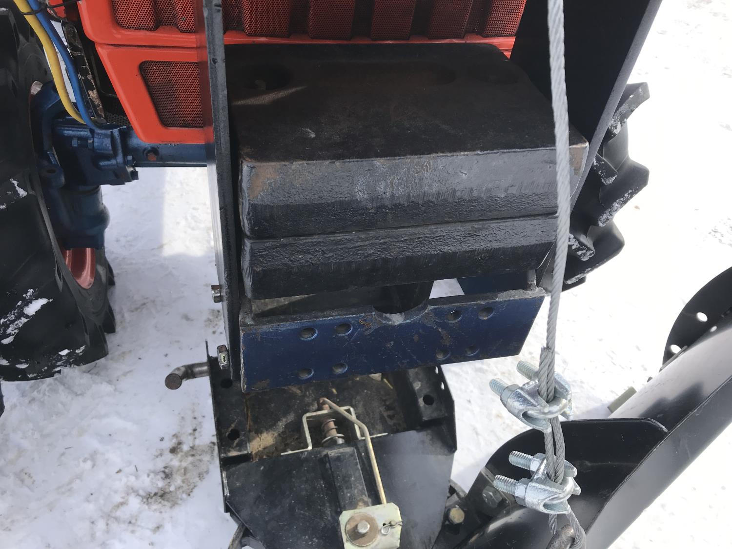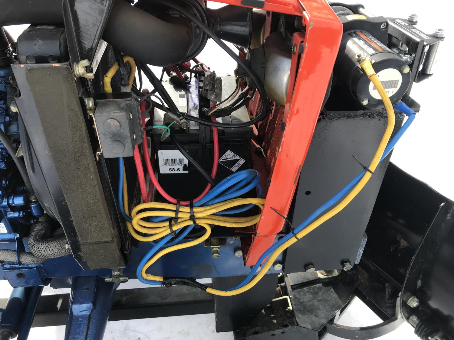 Deadong .9 L 3 cylinder 19.5 HP, diesel engine, 17 PTO HP, 8 speed manual transmission, shuttle shift, rear differential lock, signal lights and flashers, glow plugs, 540 PTO, 3 point hitch, 6-12 front tires, 12.4-16 rear tires, 54" Garden Way front mounted blade with skid shoes and electric lift and manual angle, 60" Landpride 3 point hitch rear blade with manual angle